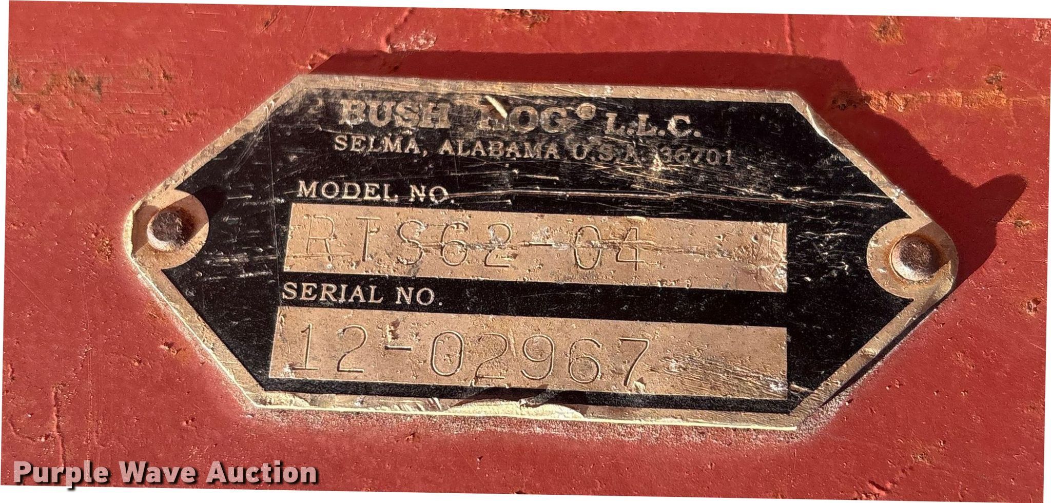Purple Wave is selling a used Rotary Tillage in Oklahoma. This item is a Bush Hog RTS62-04 rototiller with the following: Overall width: 69", Serial: 12-02967