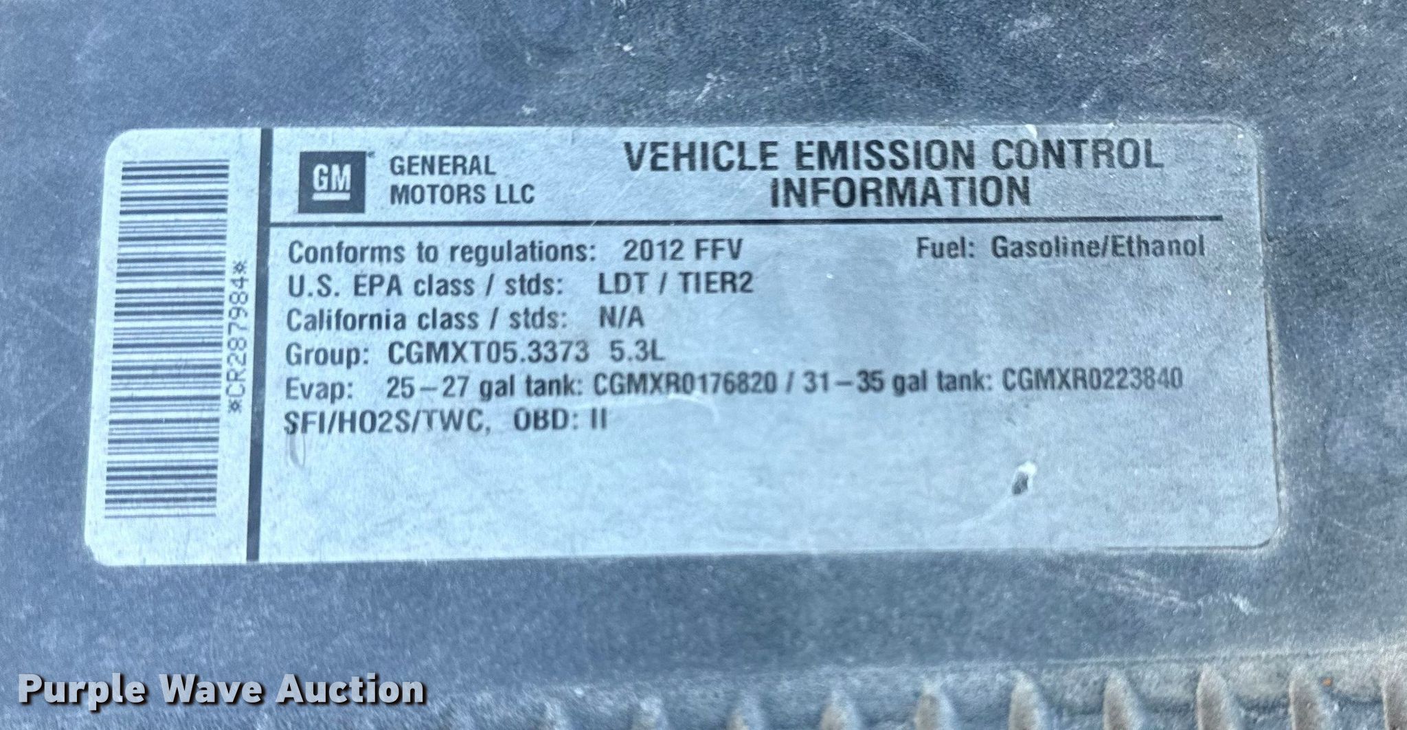 Purple Wave is selling a used Passenger Vehicle in Oklahoma. This item is a 2012 Chevrolet Tahoe Police SUV with the following: Miles: 113,993 on odometer, VIN: 1GNLC2E09CR287984