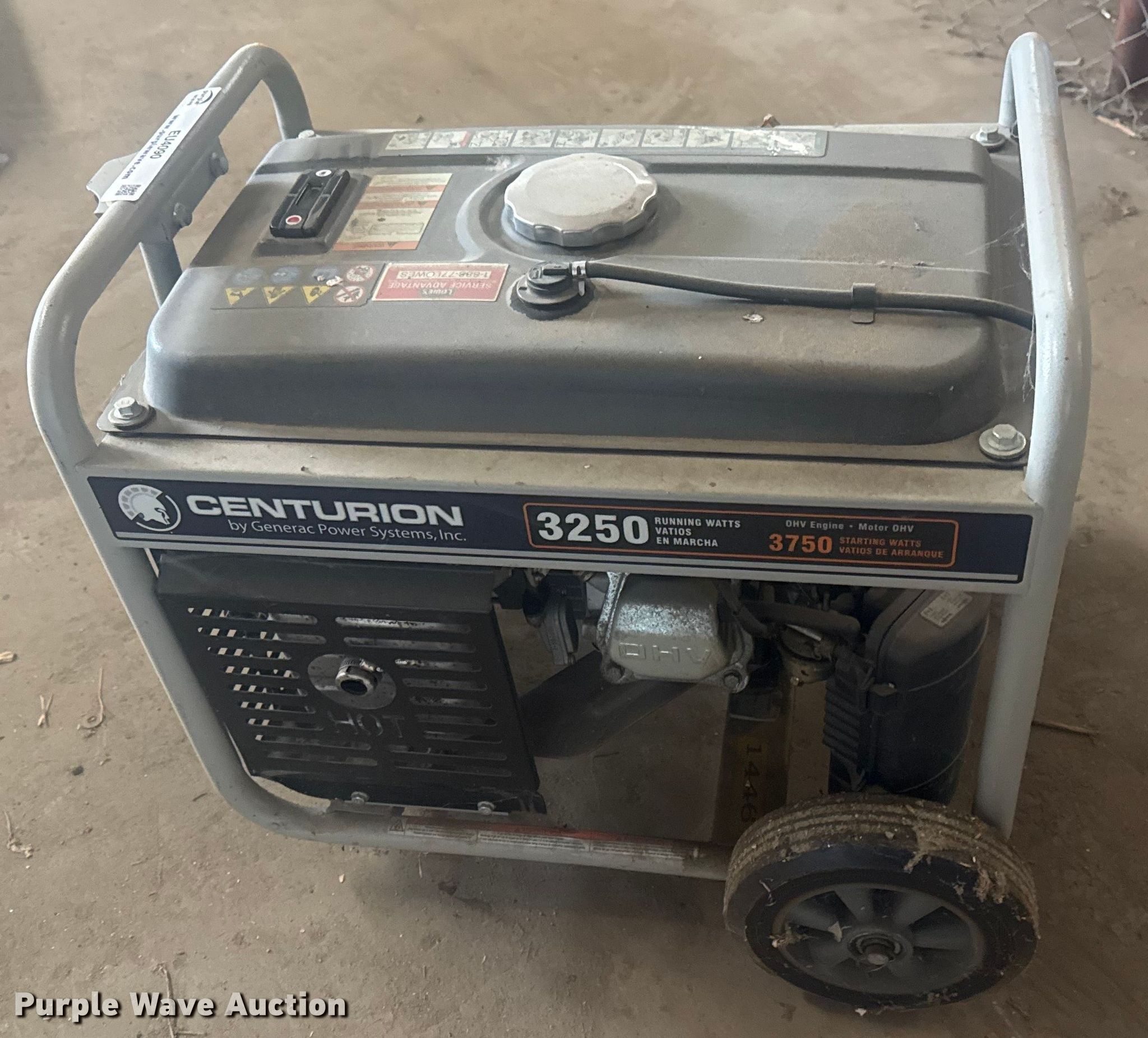 Generac Power Systems Centurion generator. Engine. Cylinders: 1, Fuel type: Gas. Features Generator Watts: 3,250, Phase: Single. Notes Dead battery, Unknown operating condition. City of Broken Arrow. Broken Arrow, OK 74012