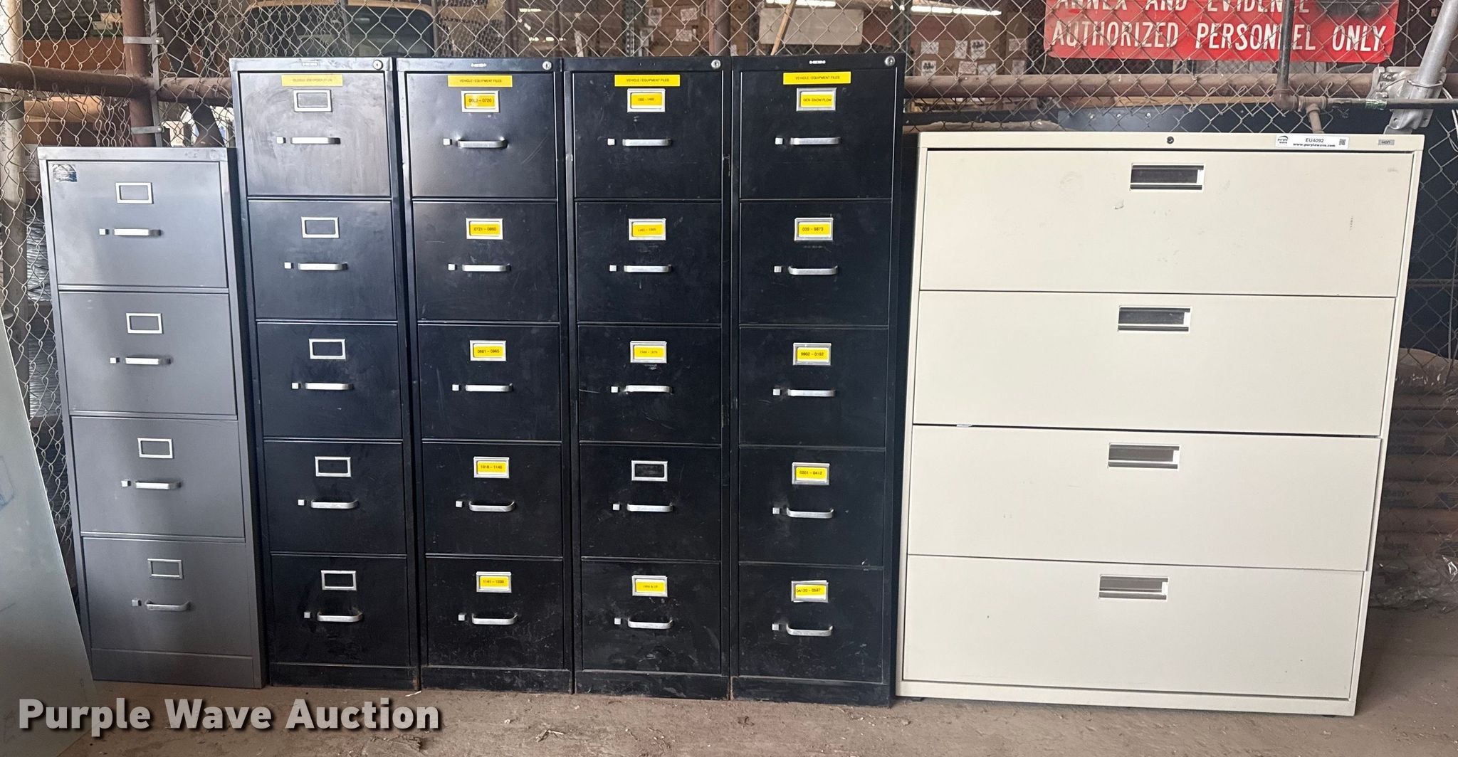 Purple Wave is selling a used Office Supplies and Equip. in Oklahoma. This item is a (6) filing cabinets with the following: (6) filing cabinets. City of Broken Arrow. Broken Arrow, OK 74012
