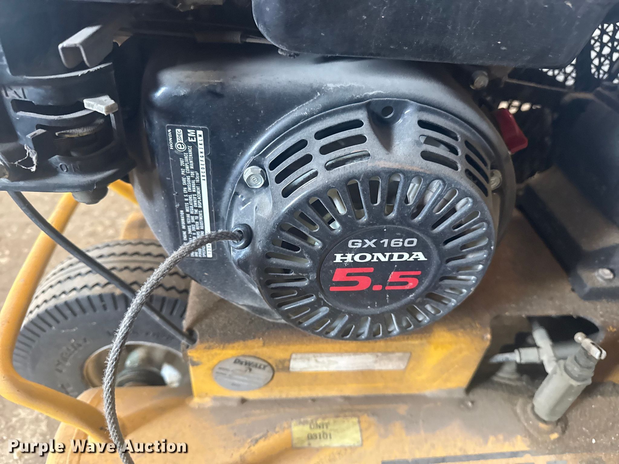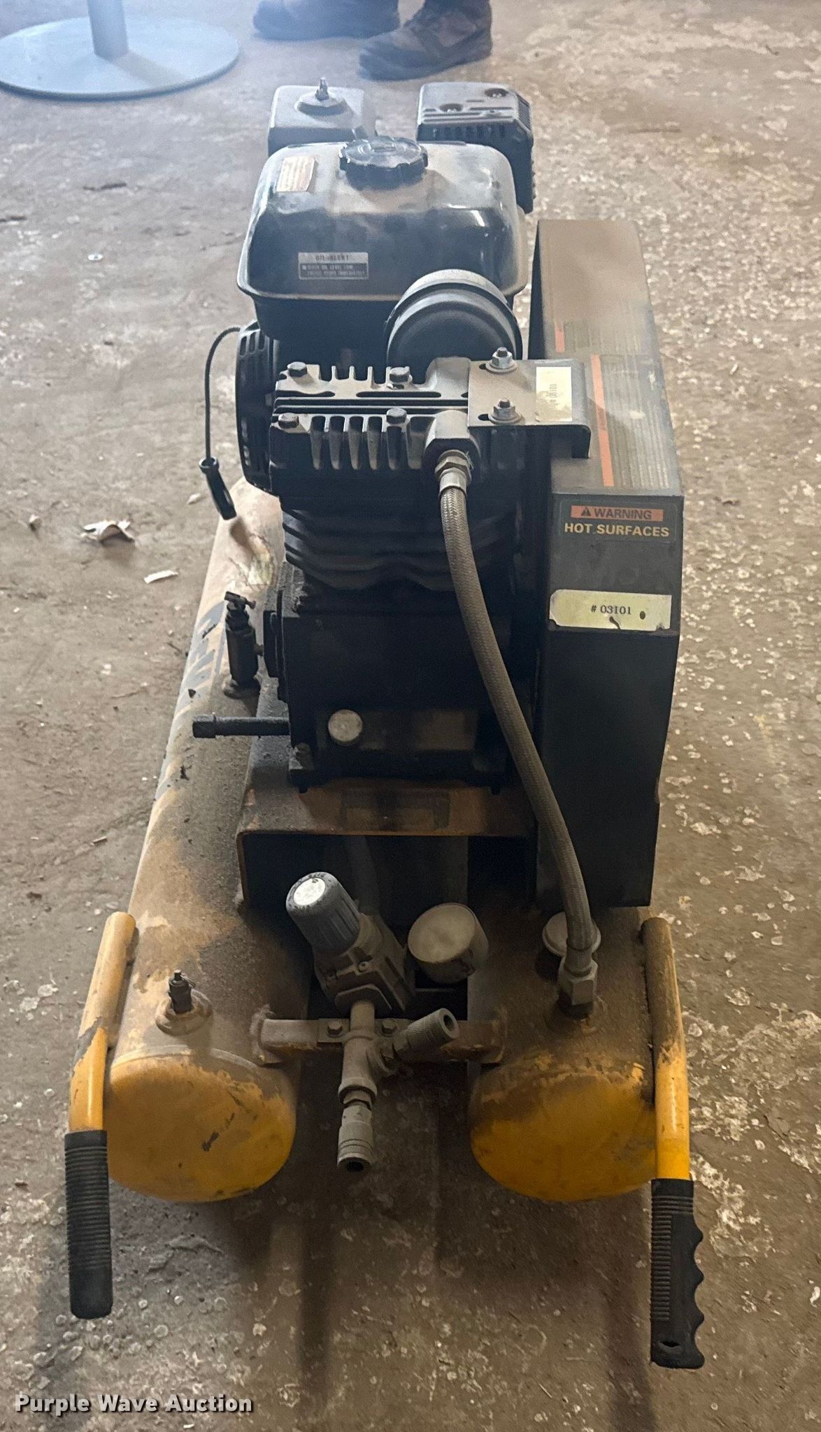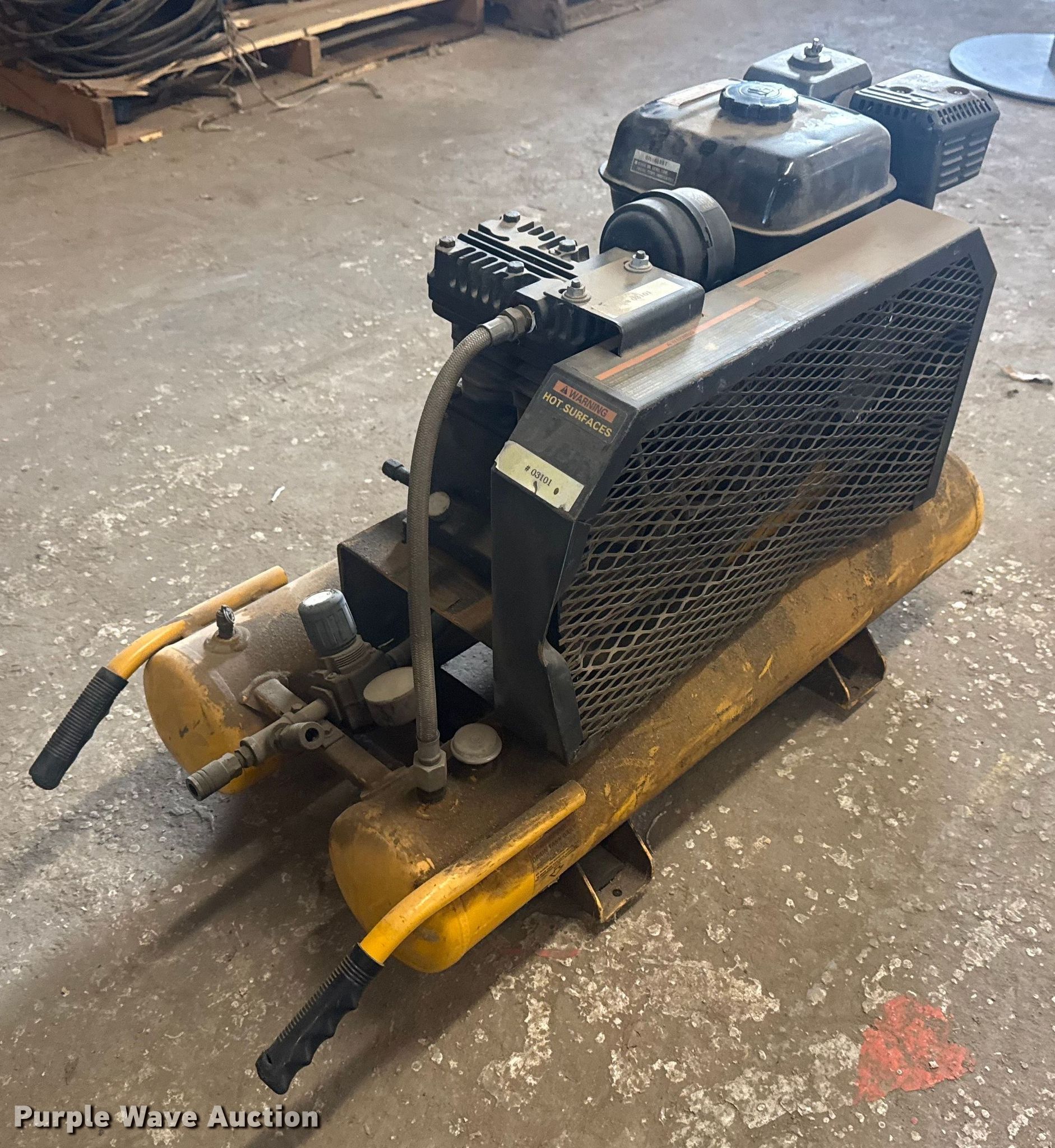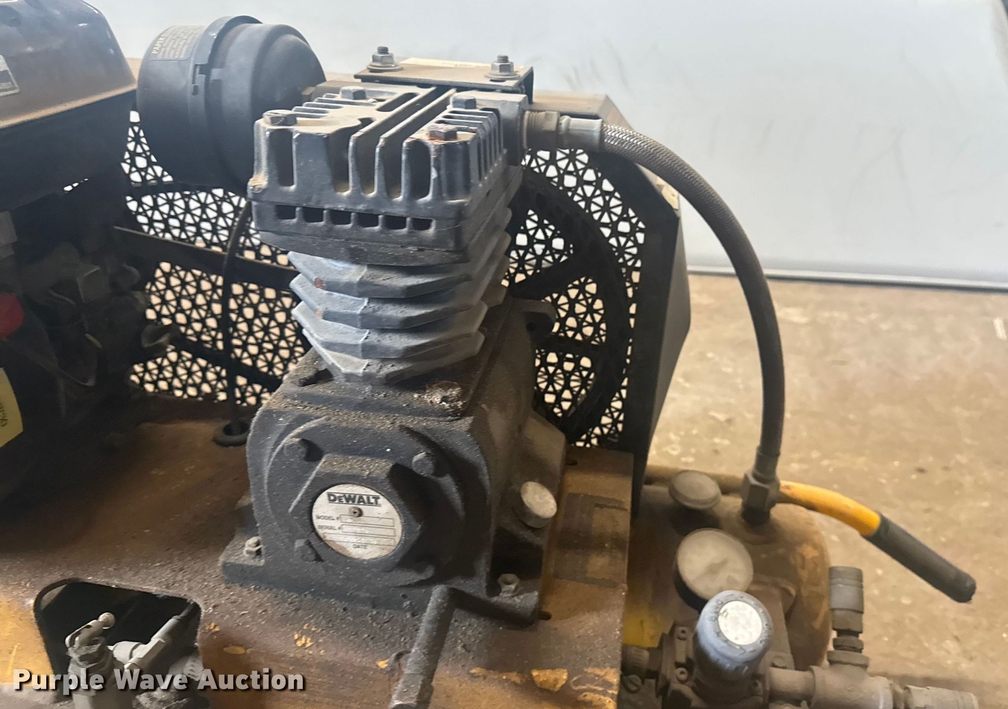 Purple Wave is selling a used Air Compressor in Oklahoma. This item is a Dewalt air compressor with the following: Honda GX160, Displacement: 163 cc, Cylinders: 1, Fuel type: Gas, HP: 5