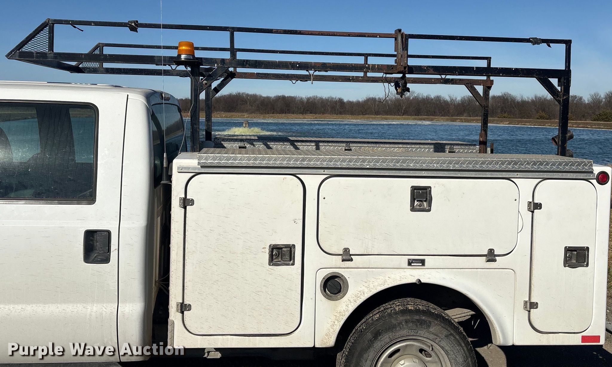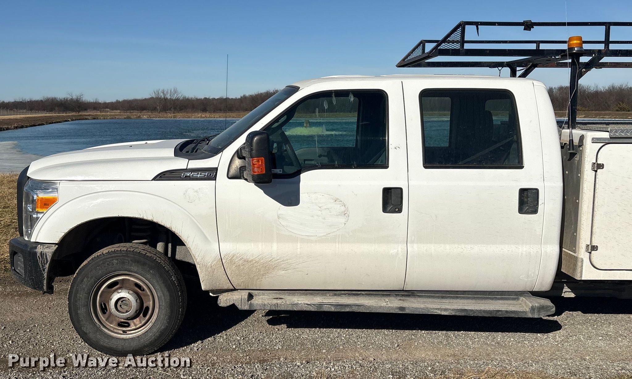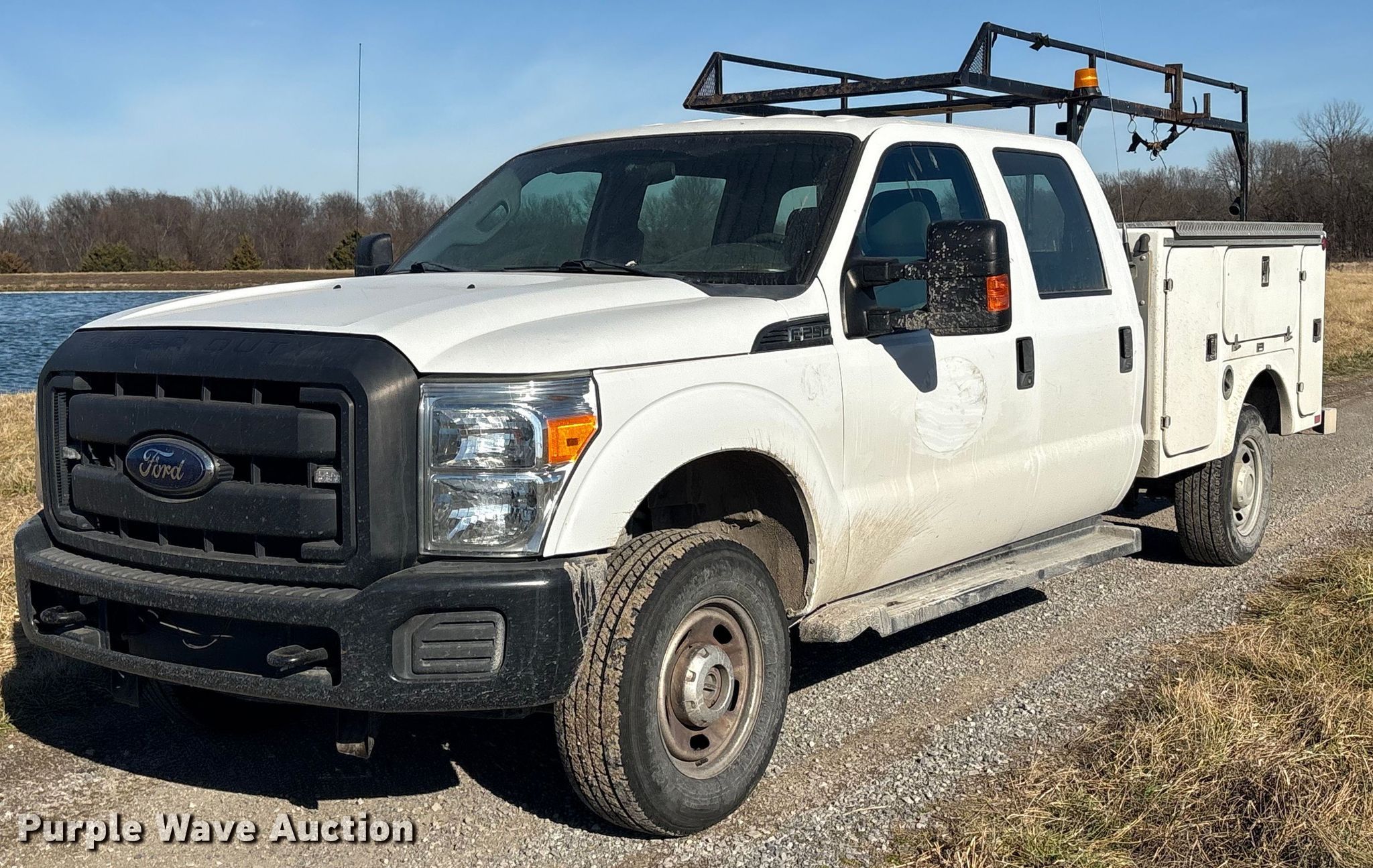 This 2013 Ford F250 Crew Cab utility bed pickup truck will sell to the highest bidder regardless of price.