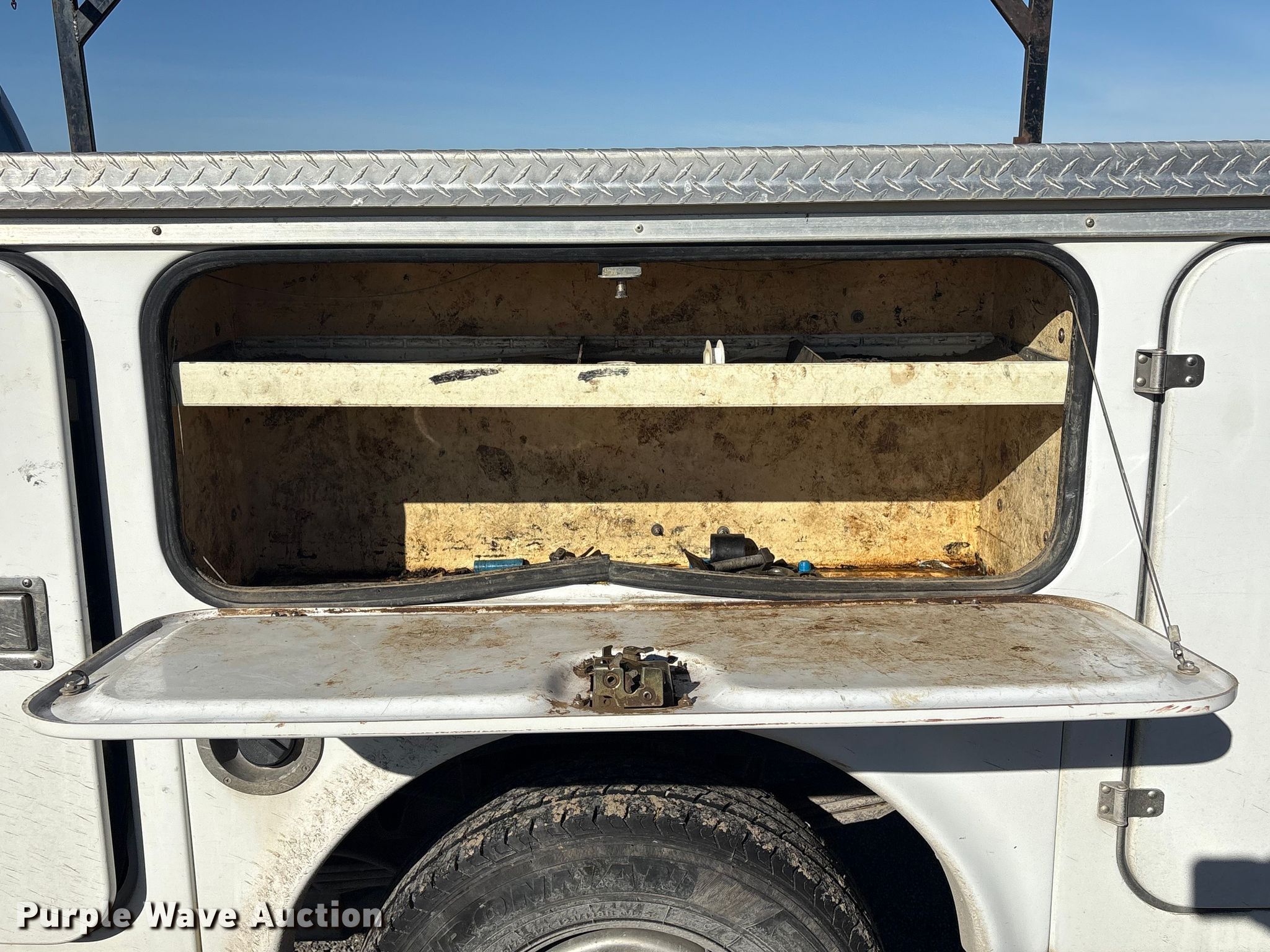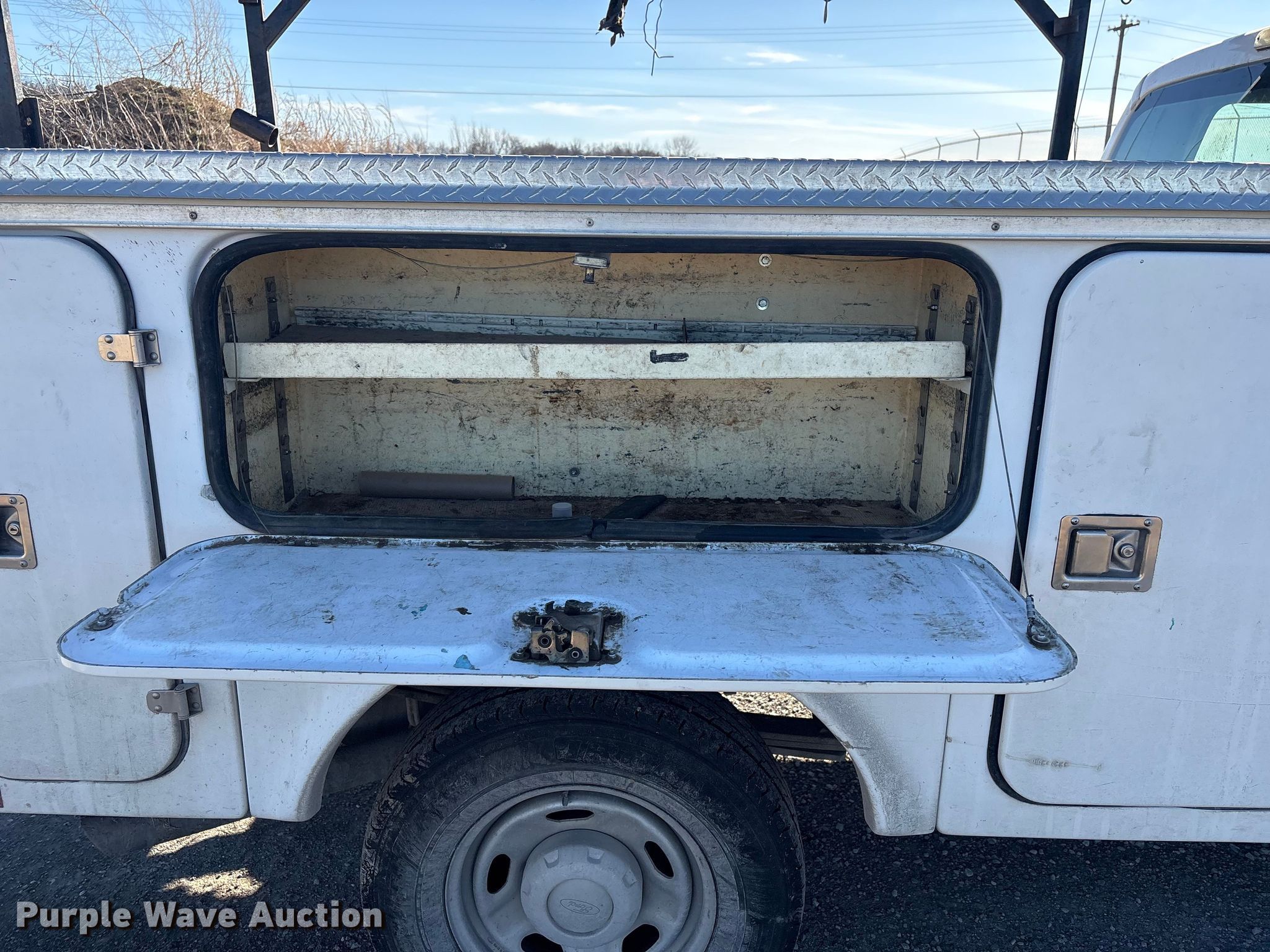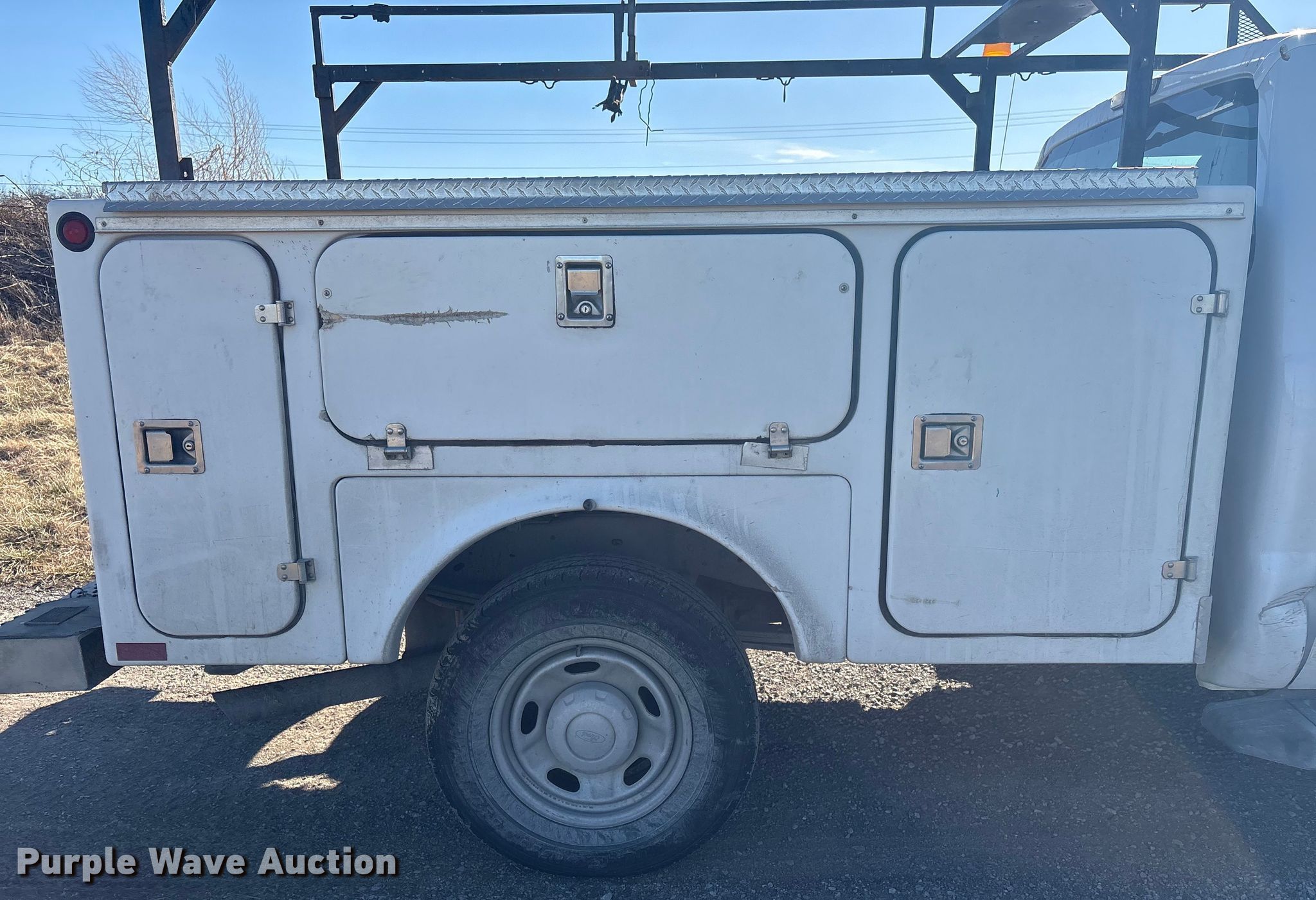 This 2013 Ford F250 Crew Cab utility bed pickup truck will sell to the highest bidder regardless of price.