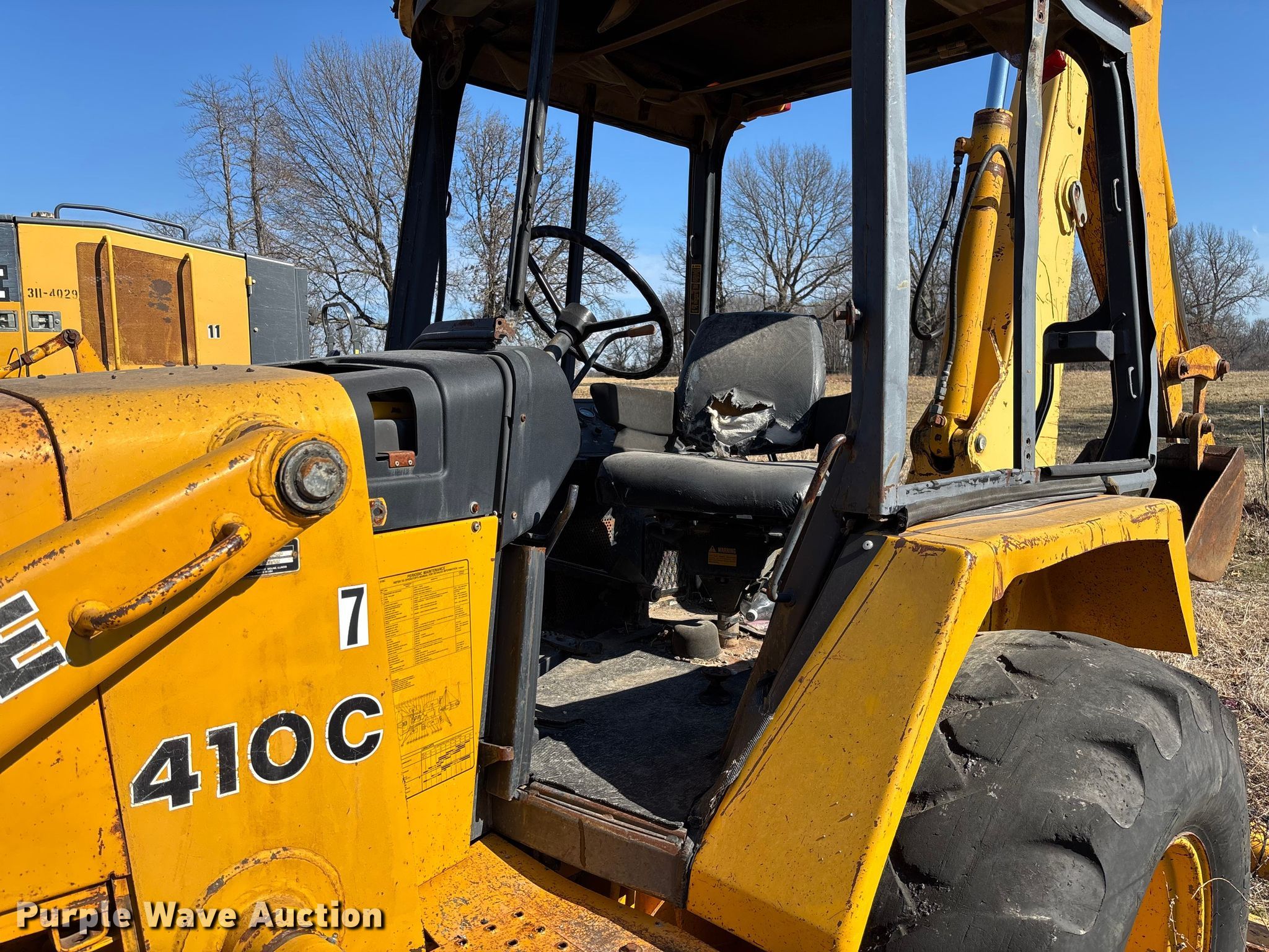 Purple Wave is selling a used Tractor Loader Backhoe in Missouri. This item is a John Deere 410C backhoe with the following: Hours: 9,887 on meter, Serial: T0410CA774256