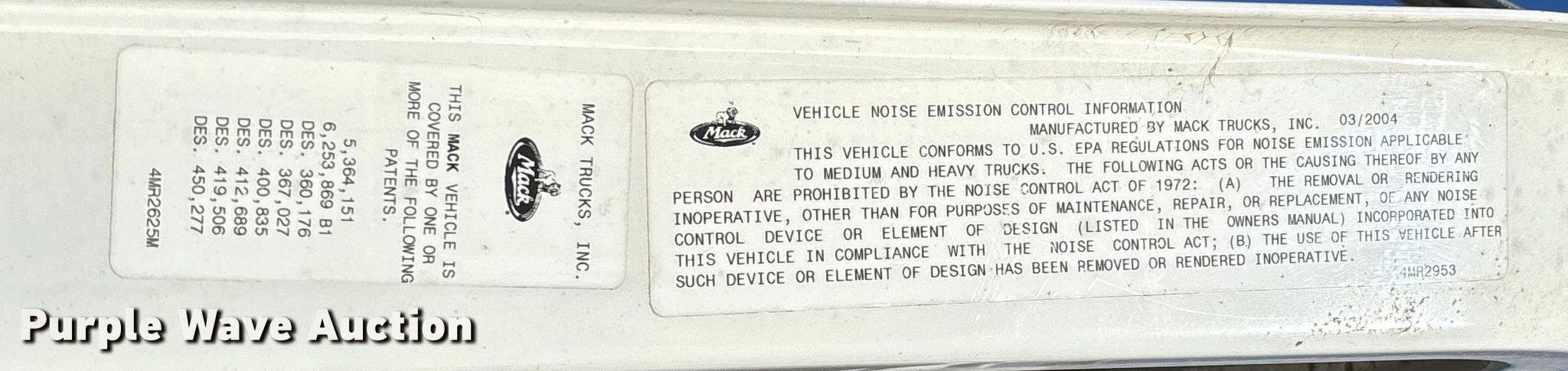 Take a look at this used 2004 Mack CV713 dump truck being sold on March 17th, 2026 in the Tuesday March 17 Government Auction made by Mack. Take a look at all of the item information below or take a look at similar auctions for Construction Trucks.