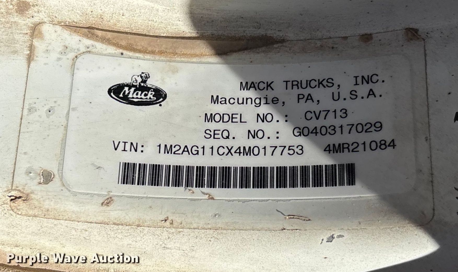 Purple Wave is selling a used Construction Dump Truck in Missouri. This item is a 2004 Mack CV713 dump truck with the following: Miles: Unknown, VIN: 1M2AG11CX4M017753