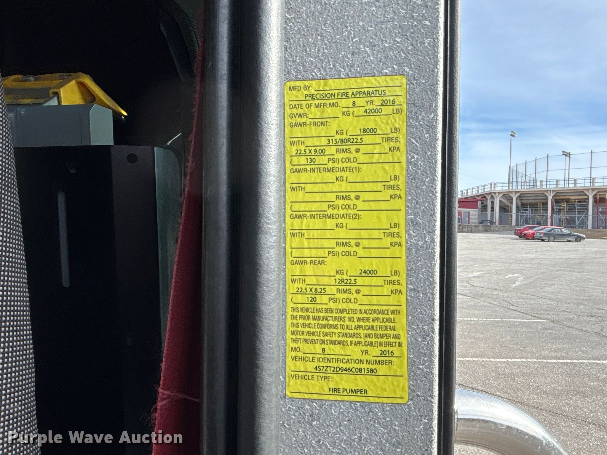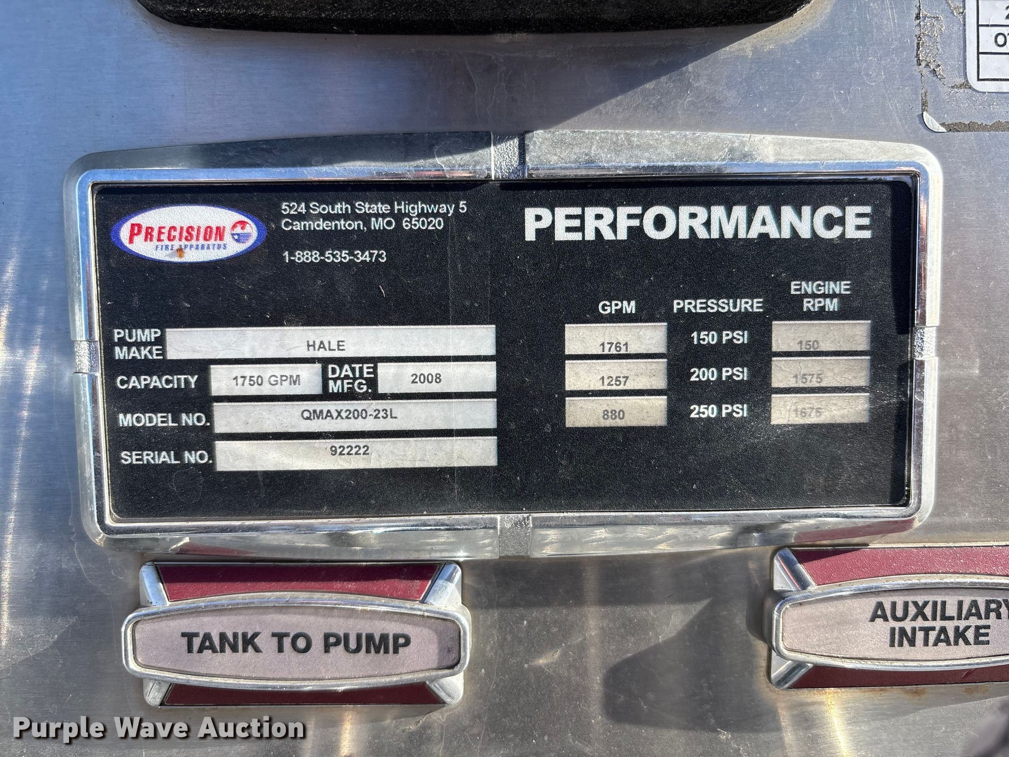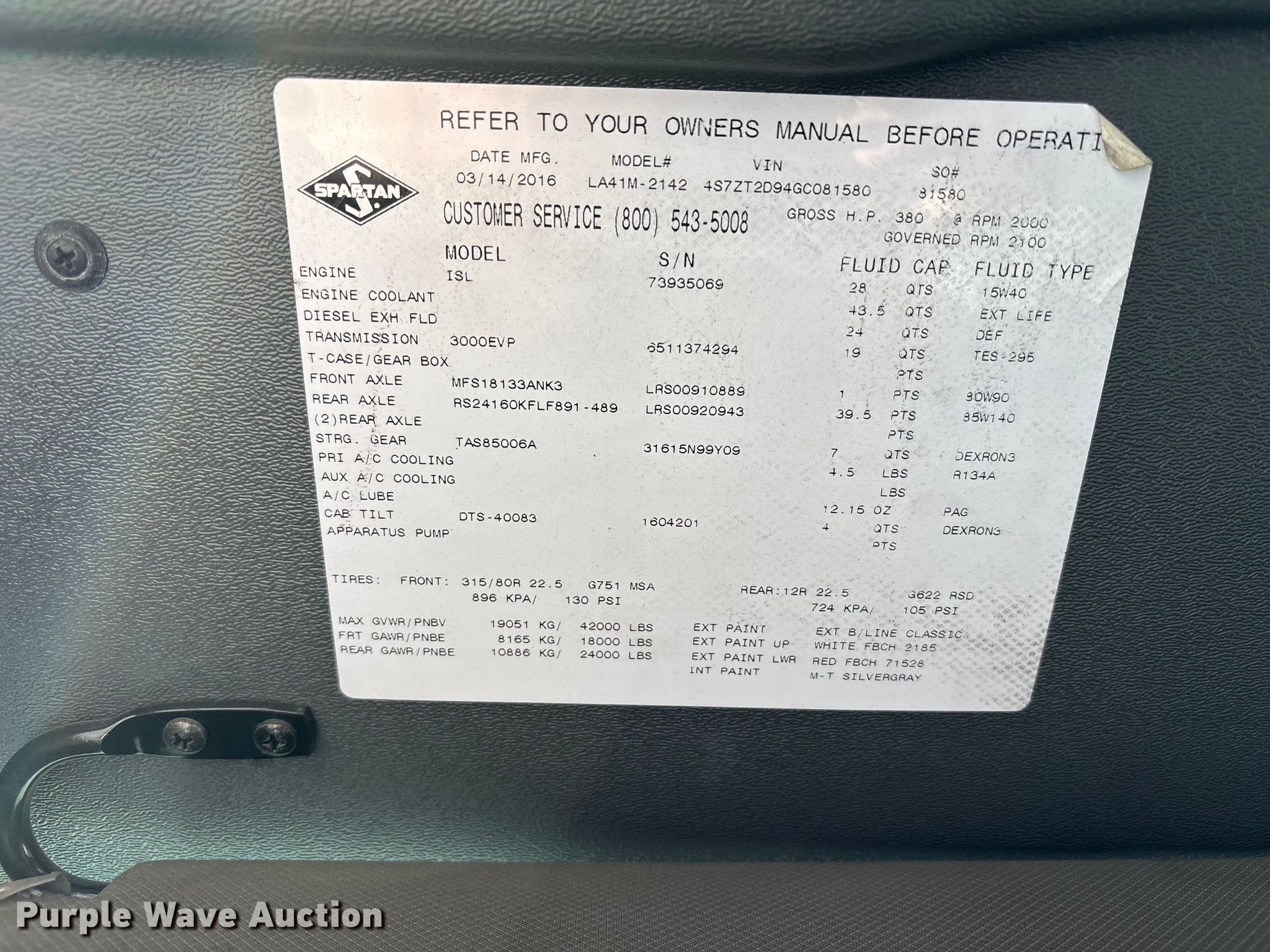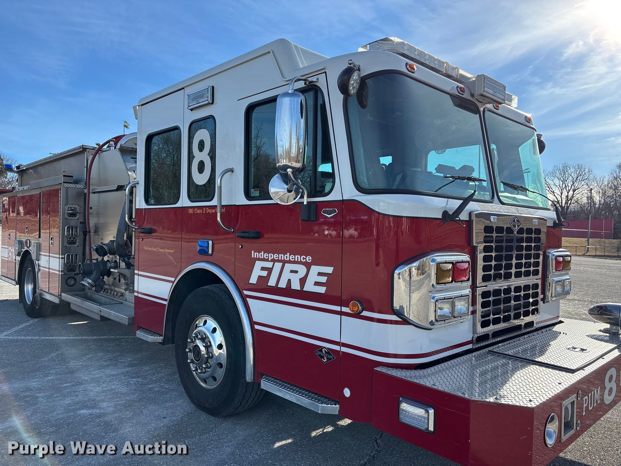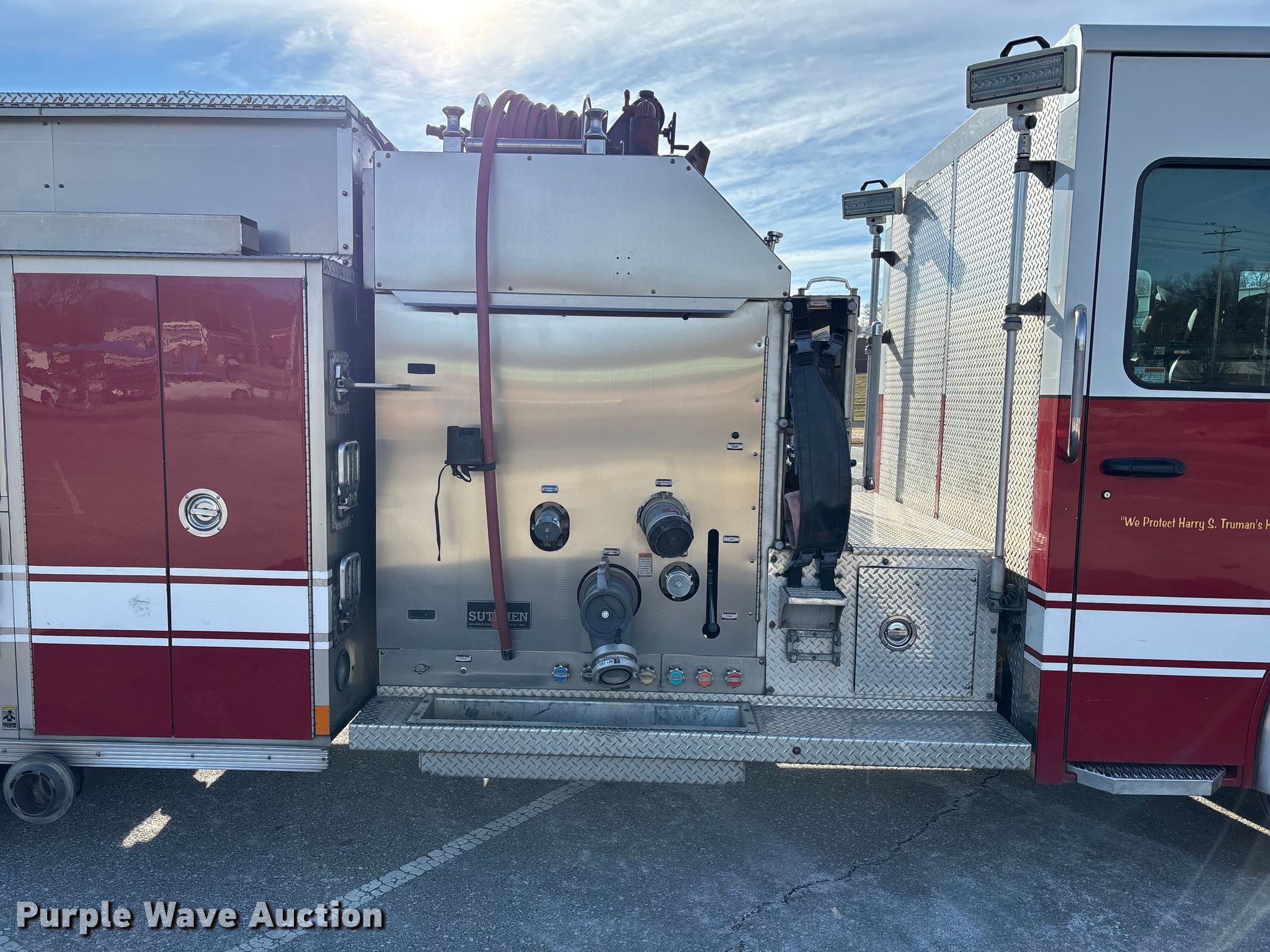 Purple Wave is selling a used Fire Truck or Emergency Vehicle in Missouri. This item is a 2016 Spartan LA41M-2142 pumper fire truck with the following: Miles: 107,768 on odometer, Hours: 7,674 on meter, VIN: 4S7ZT2D94GC081580