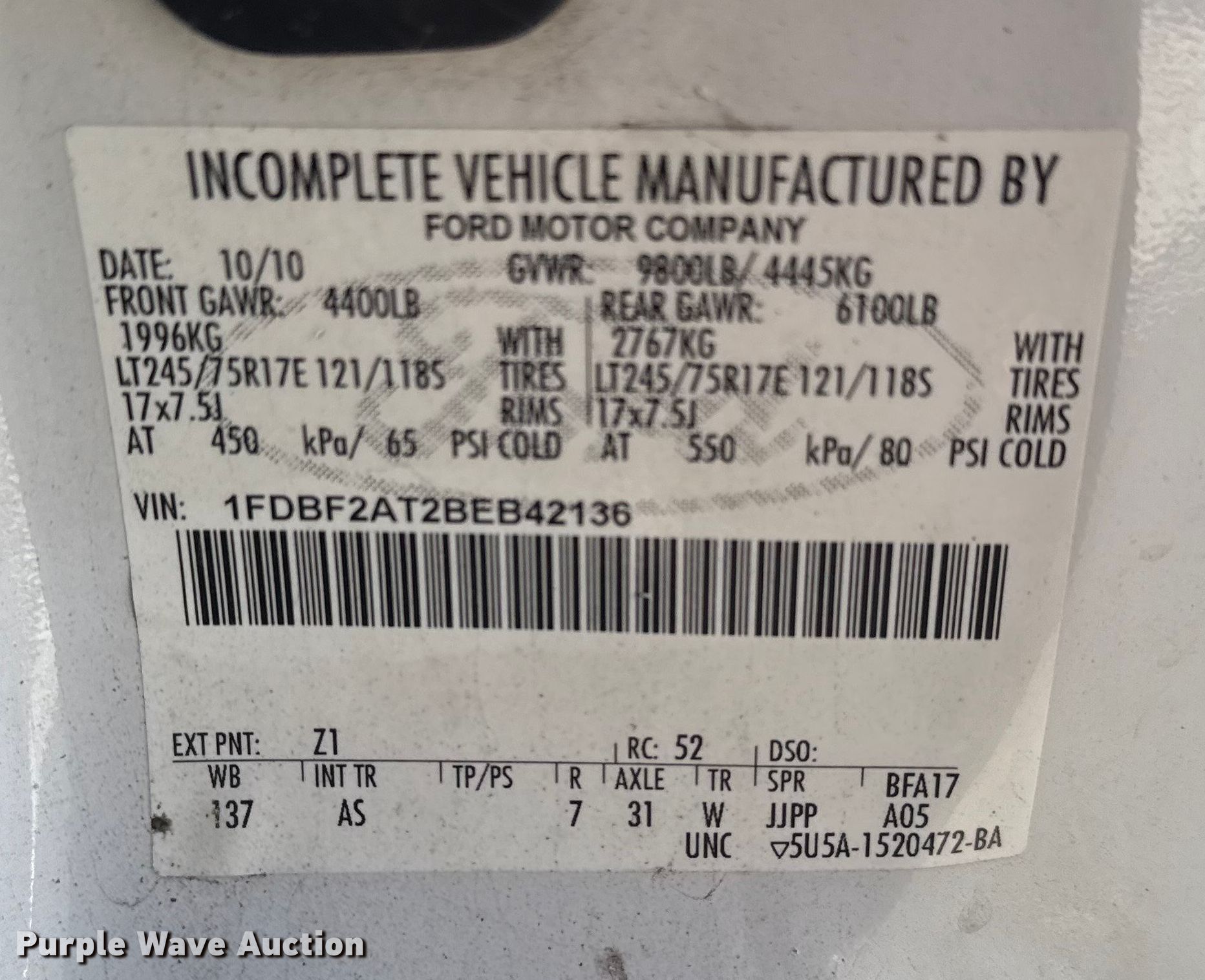 - VIN: 1FDBF2AT2BEB42136