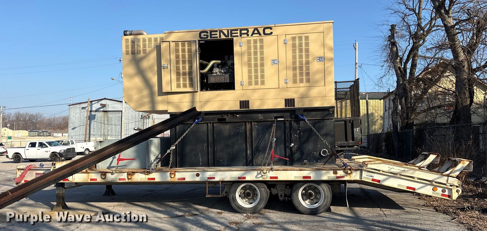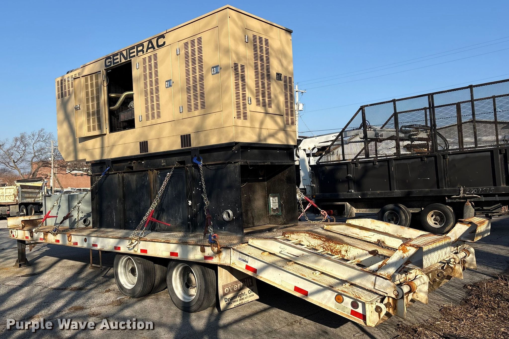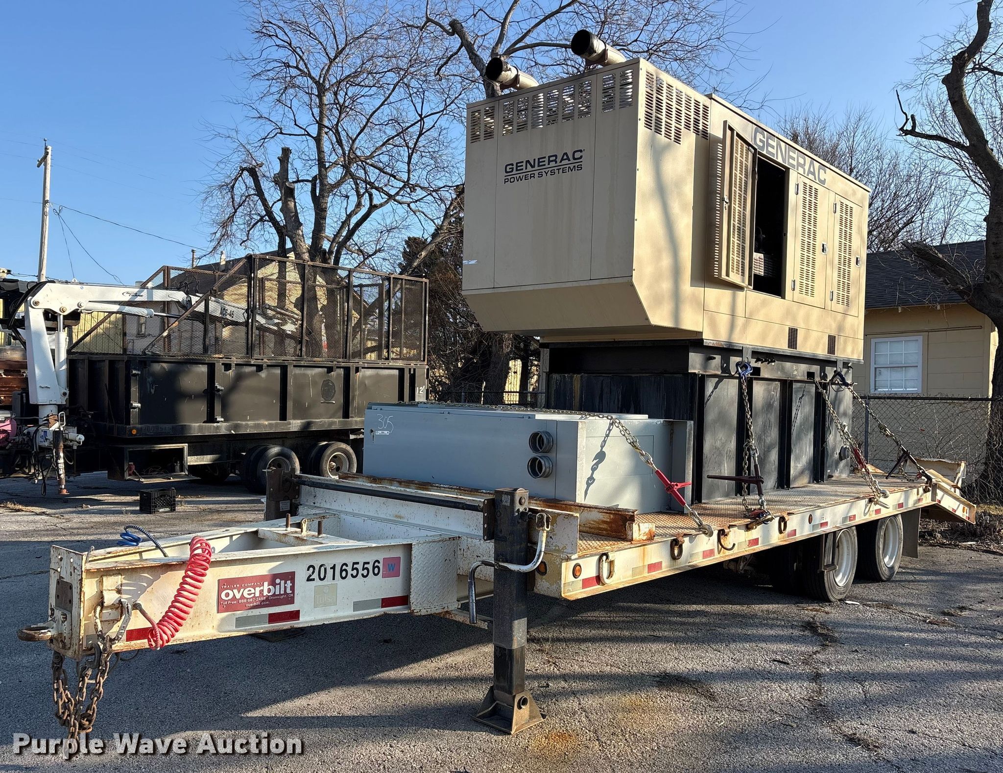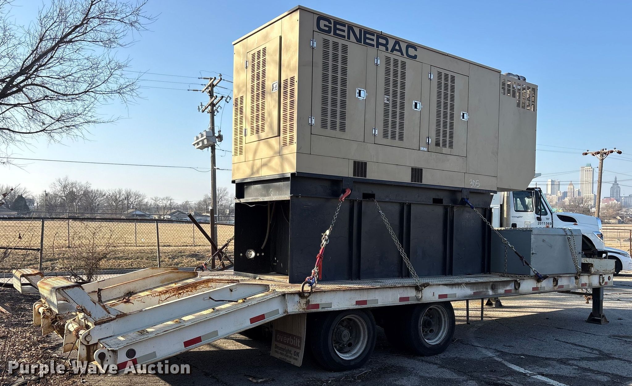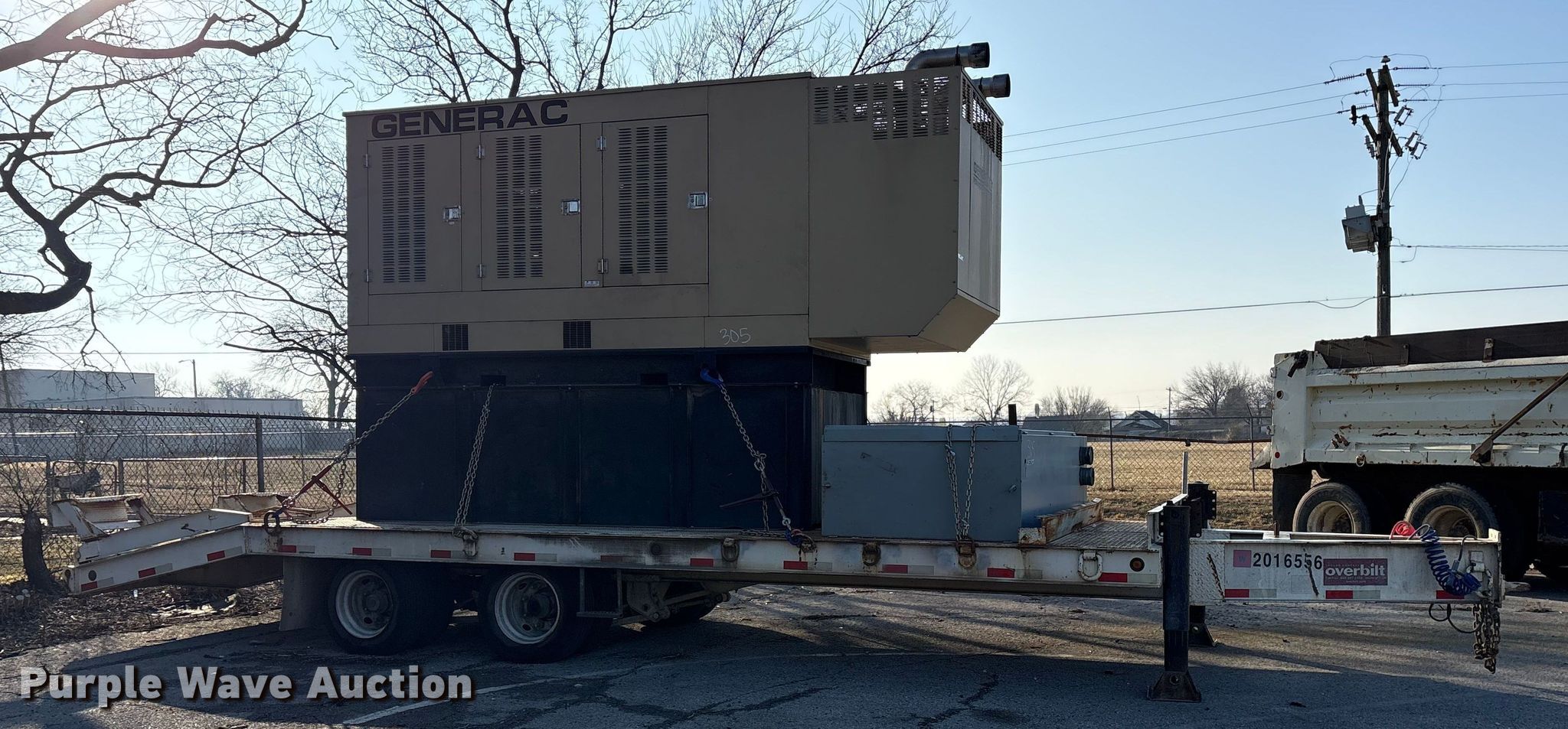 2016 Generac 8200200200 generator. Hours: Unknown, VIN: 1Z9HC3228GD058731, Serial: 2093499, Unit #: 305. Engine Mitsubishi, Cylinders: 8, Fuel type: Diesel. Features Generator Generac 8200200200, kVA: 438, kW: 350, Phase: Three, Electric start, Fuel tank, Skid mounted. Trailer 2016 Overbilt, 32' L x 102" W, Hitch: Pintle, Landing gear: Double, Suspension: Spring, Brakes: Air, Axles: Tandem, Tire size: 215/75R17.5, GVWR: 40,000 lbs. Notes Tie down chains will be removed prior to auction date, Dead battery, Unknown operating condition. Oklahoma title. Seller is a government entity who will be assigning and distributing the title. Please contact the seller for distribution questions. Title distribution may be delayed up to 30 days from verification of funds. City of Tulsa. 108 N Trenton Ave. Tulsa, OK 74120