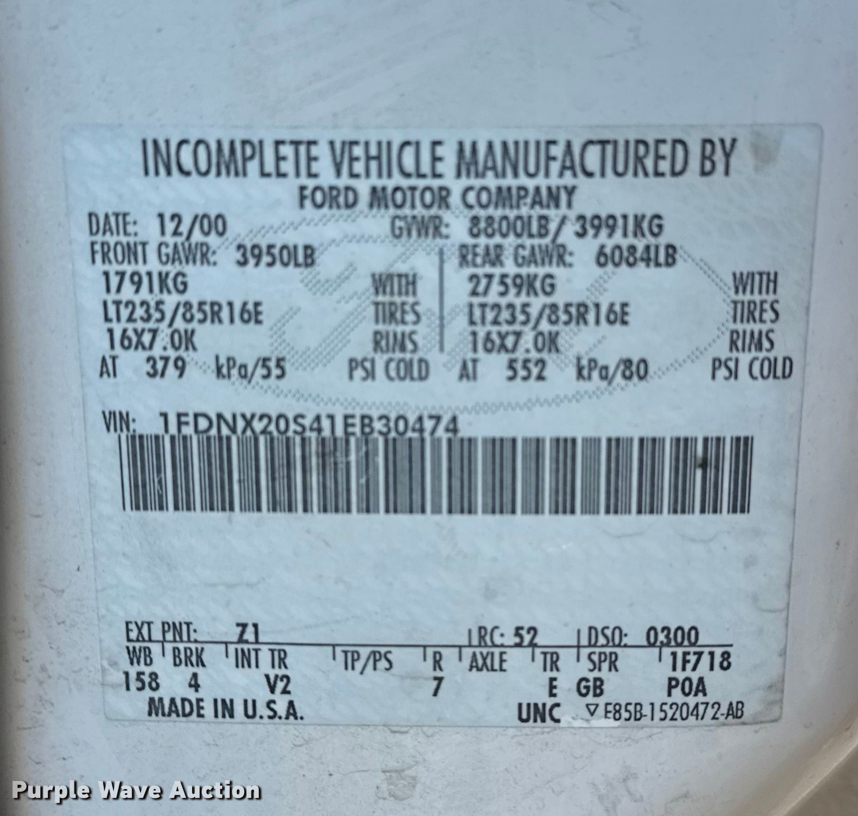 Purple Wave is selling a used 3/4 or 1 Ton Pickup or Van in Oklahoma. This item is a 2001 Ford F250 Super Duty Ext. Cab utility bed pickup truck with the following: Miles: 122,016 on odometer, VIN: 1FDNX20S41EB30474, Unit #: 531