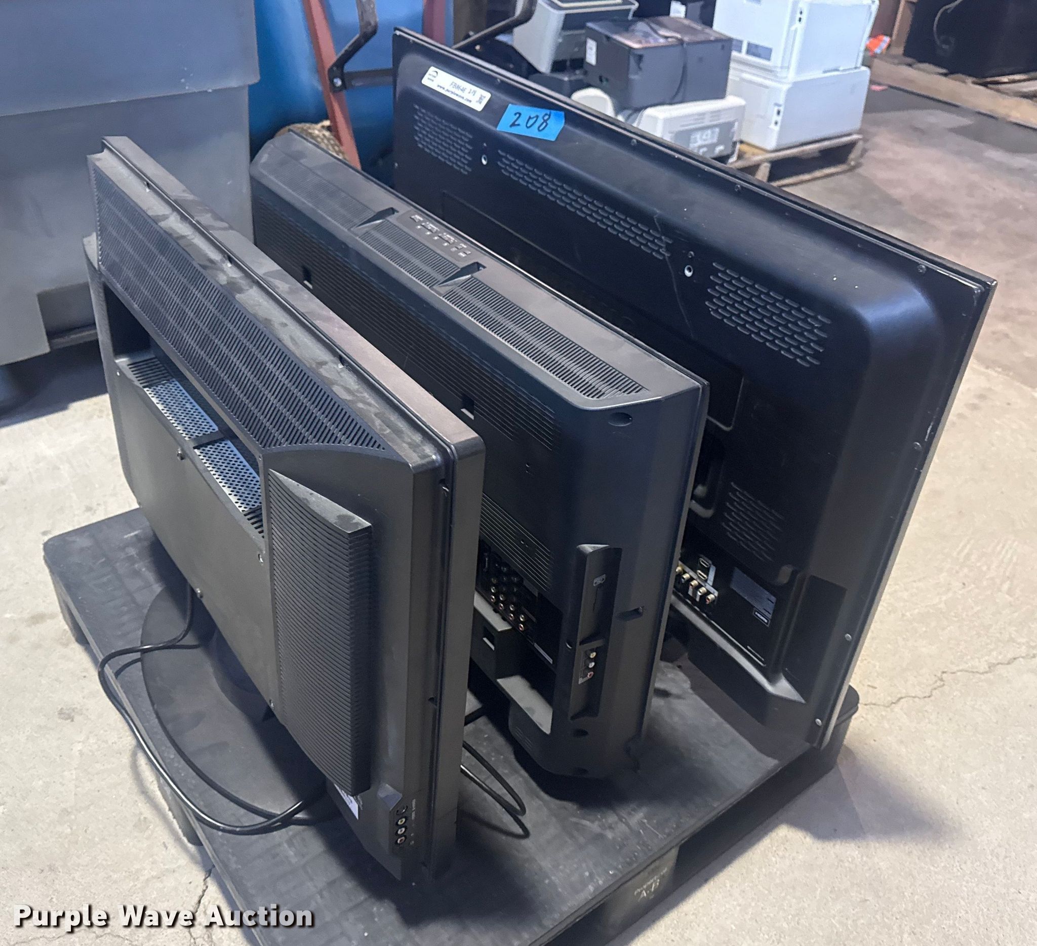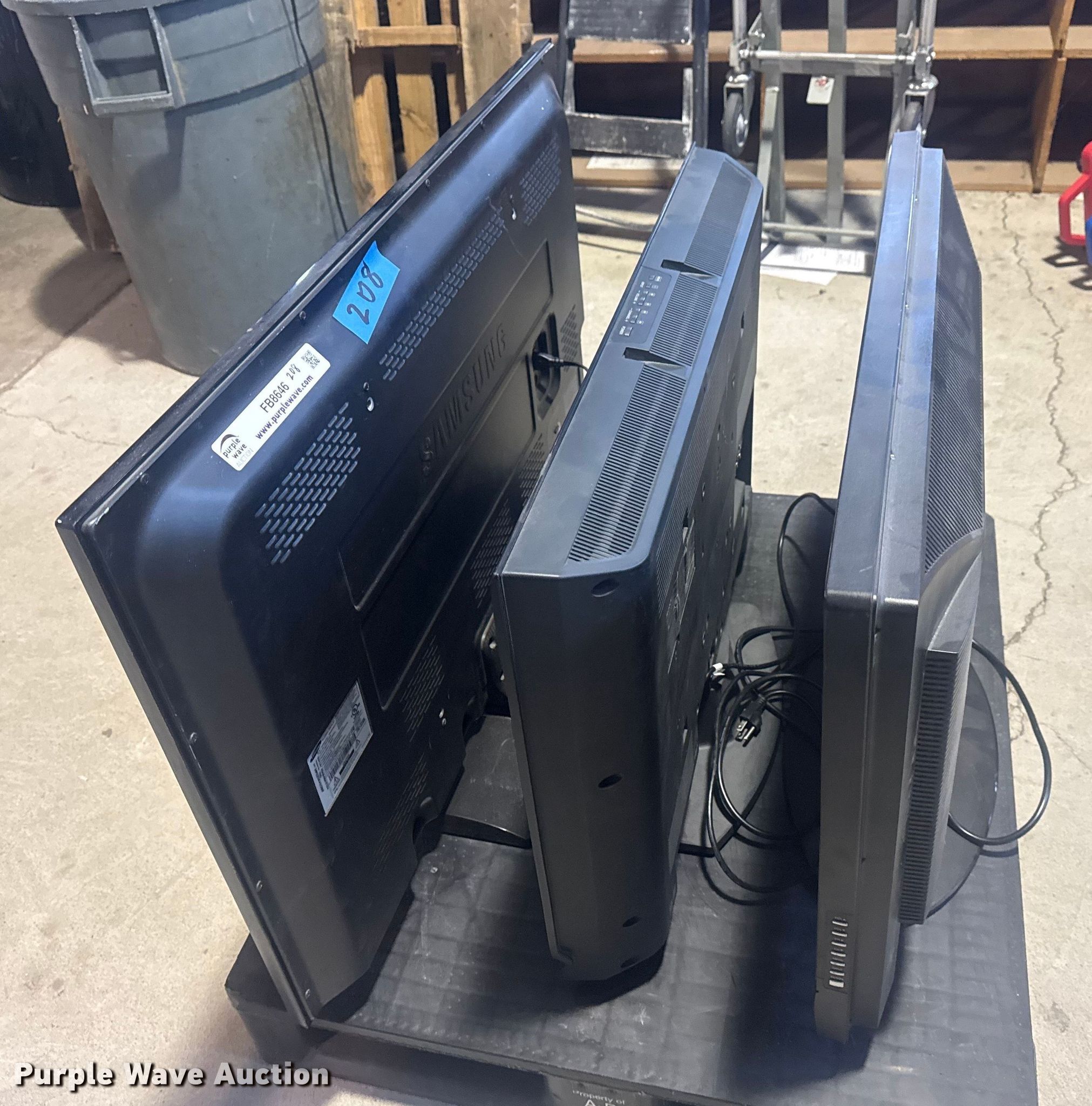 Purple Wave is selling a used Electronics in Oklahoma. This item is a (3) TV's with the following: Models, DYNEX DX-LCD32, SONY KDL-32L4000, SAMSUNG PN43E450A1F, Unit #: 208