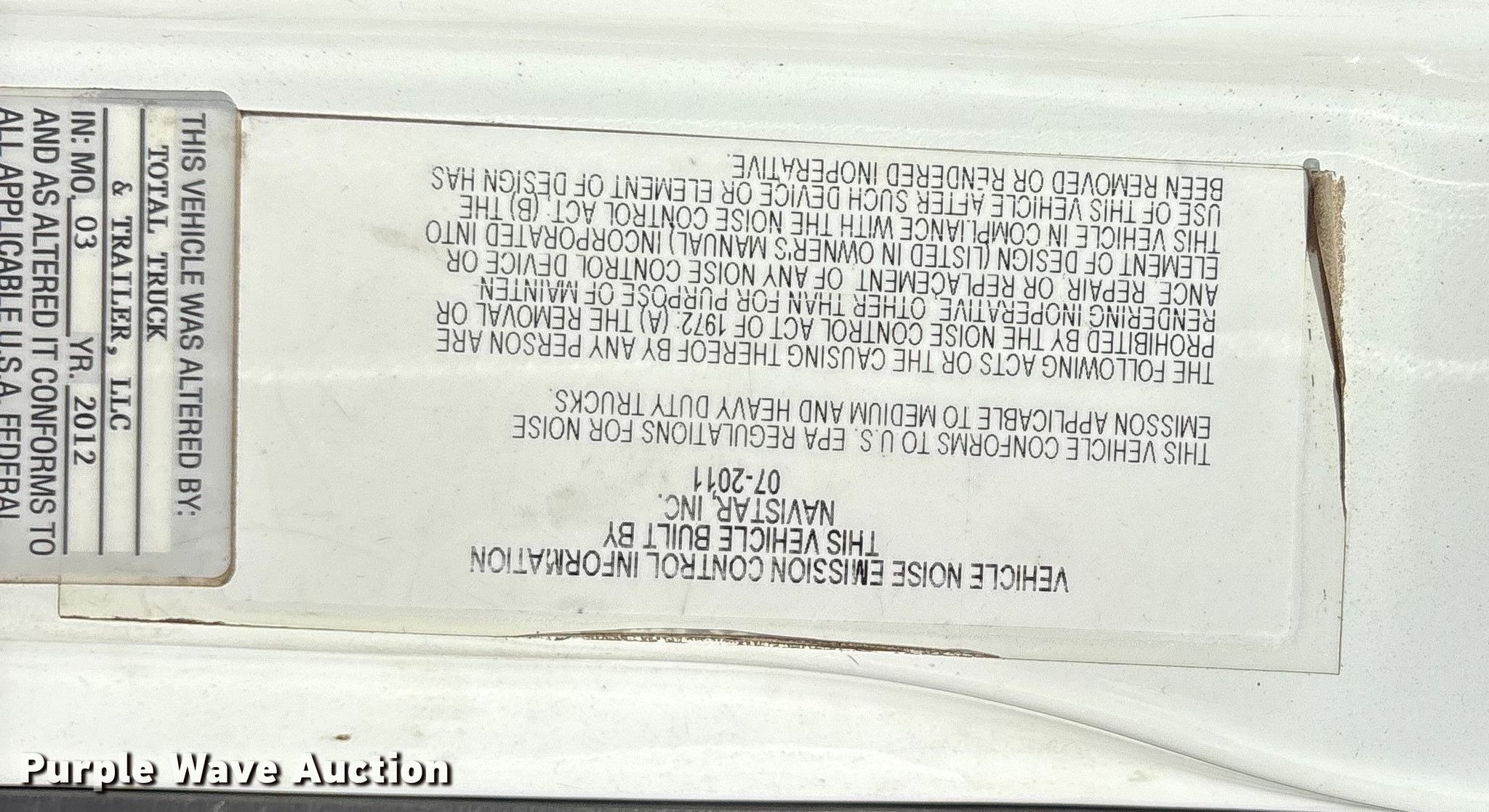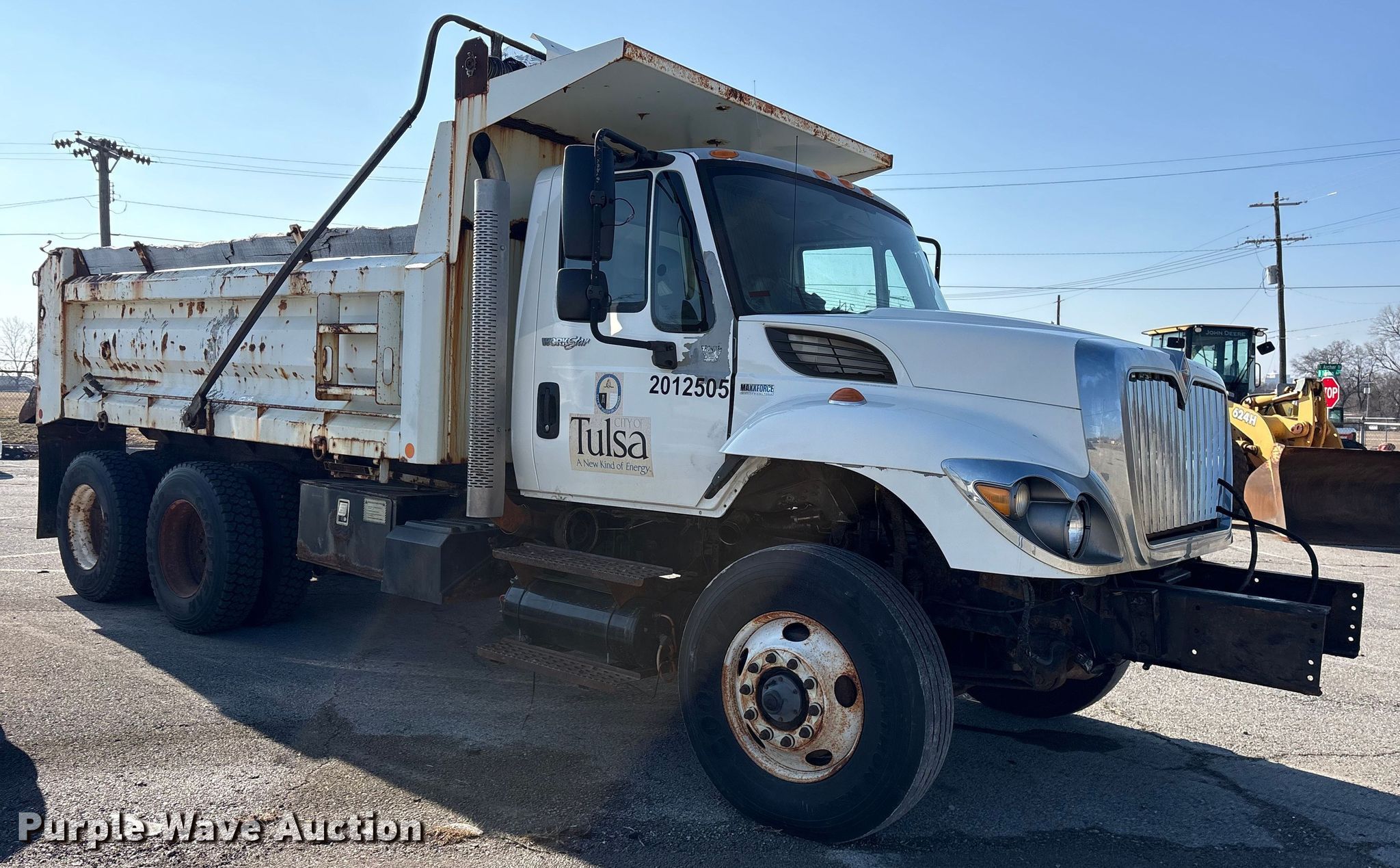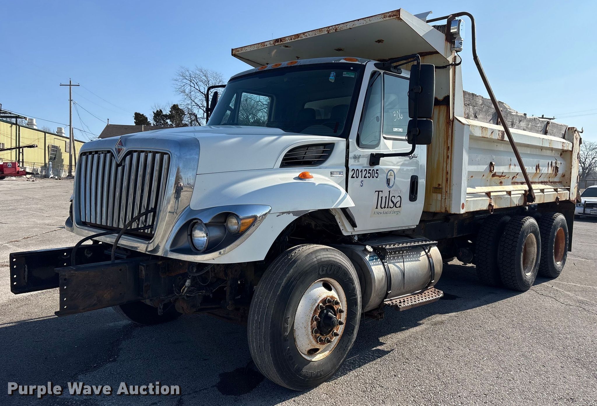 2012 International SF625 dump truck. Miles: Unknown, VIN: 1HTWGAAR2CJ636963, Unit #: 306. Engine International Maxxforce DT DT466, Displacement: 7.64L, Cylinders: 6, Fuel type: Diesel. Transmission Automated manual. Chassis Axles: Tandem, Differential lock: Full, Suspension: Spring, Brakes: Air, PTO, GVWR: 53,220 lbs FAWR: 13,220 lbs, IAWR: 20,000 lbs, RAWR: 20,000 lbs. Interior AC, Heat, Heated mirrors, Cruise control. Features Bed Dump bed, Length: 15', Width: 8', Side height: 38", Side board height: 8", Bed type: Steel, Barrel, Roll tarp. Tires Size: 11R22.5. Notes Non-operational AC, Dead battery, Parts missing, Unit must be towed or hauled , End gate missing, Non-operational unit. Oklahoma title. Mileage has not been verified. Exempt will be written in the odometer disclosure on the title. Seller is a government entity who will be assigning and distributing the title. Please contact the seller for distribution questions. Title distribution may be delayed up to 30 days from verification of funds. City of Tulsa. 108 N Trenton Ave. Tulsa, OK 74120