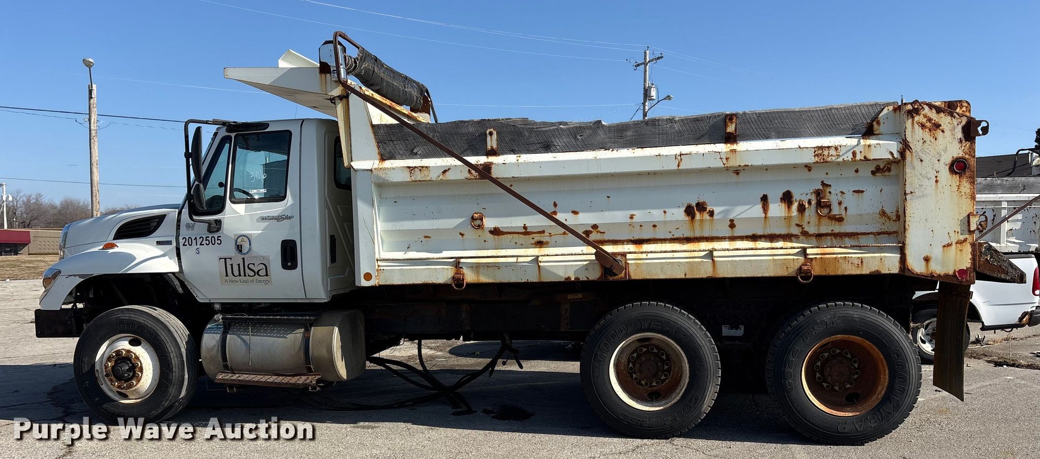 Purple Wave is selling a used Construction Dump Truck in Oklahoma. This item is a 2012 International SF625 dump truck with the following: Miles: Unknown, VIN: 1HTWGAAR2CJ636963, Unit #: 306