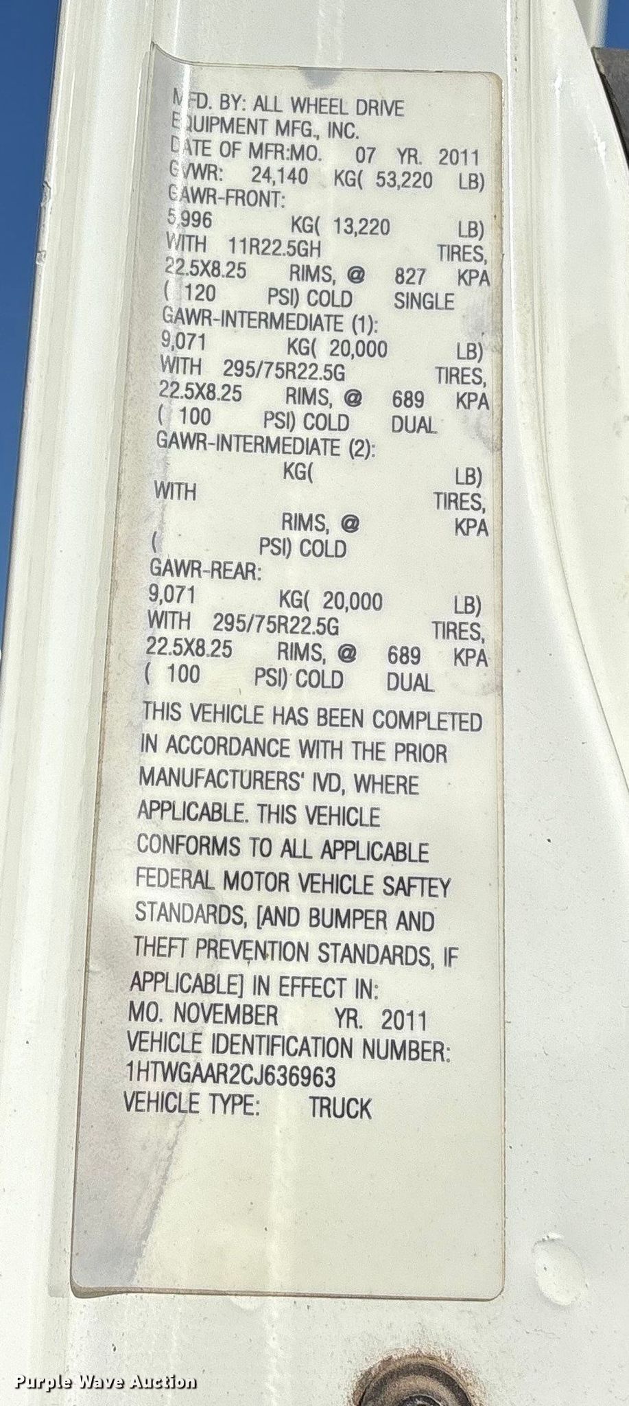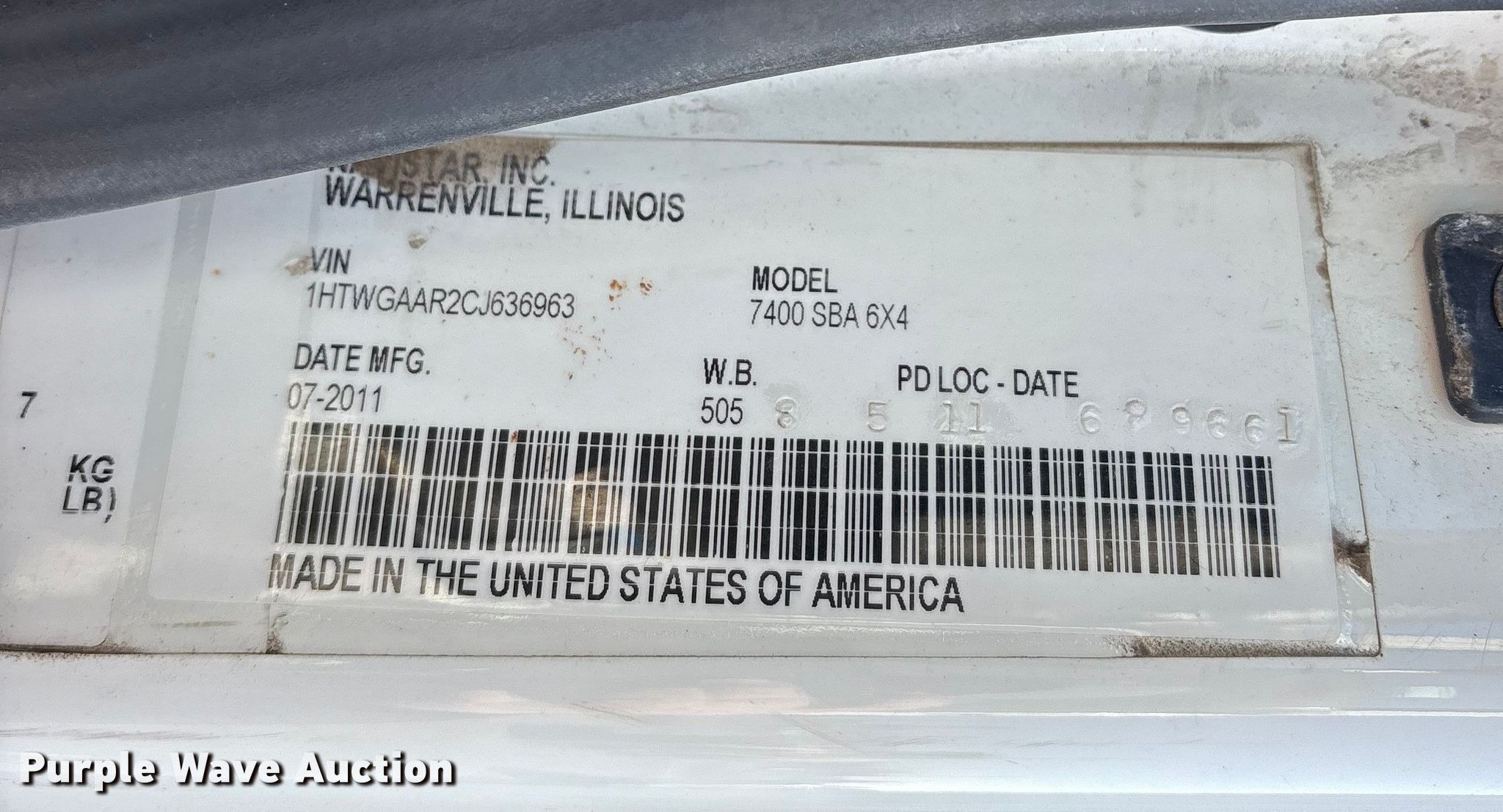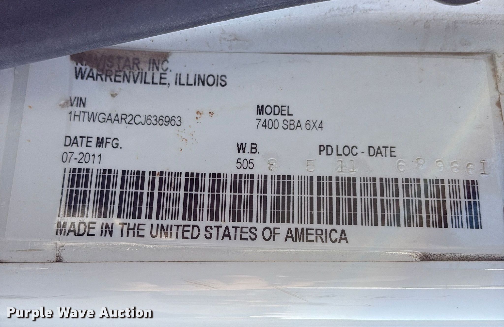 - VIN: 1HTWGAAR2CJ636963