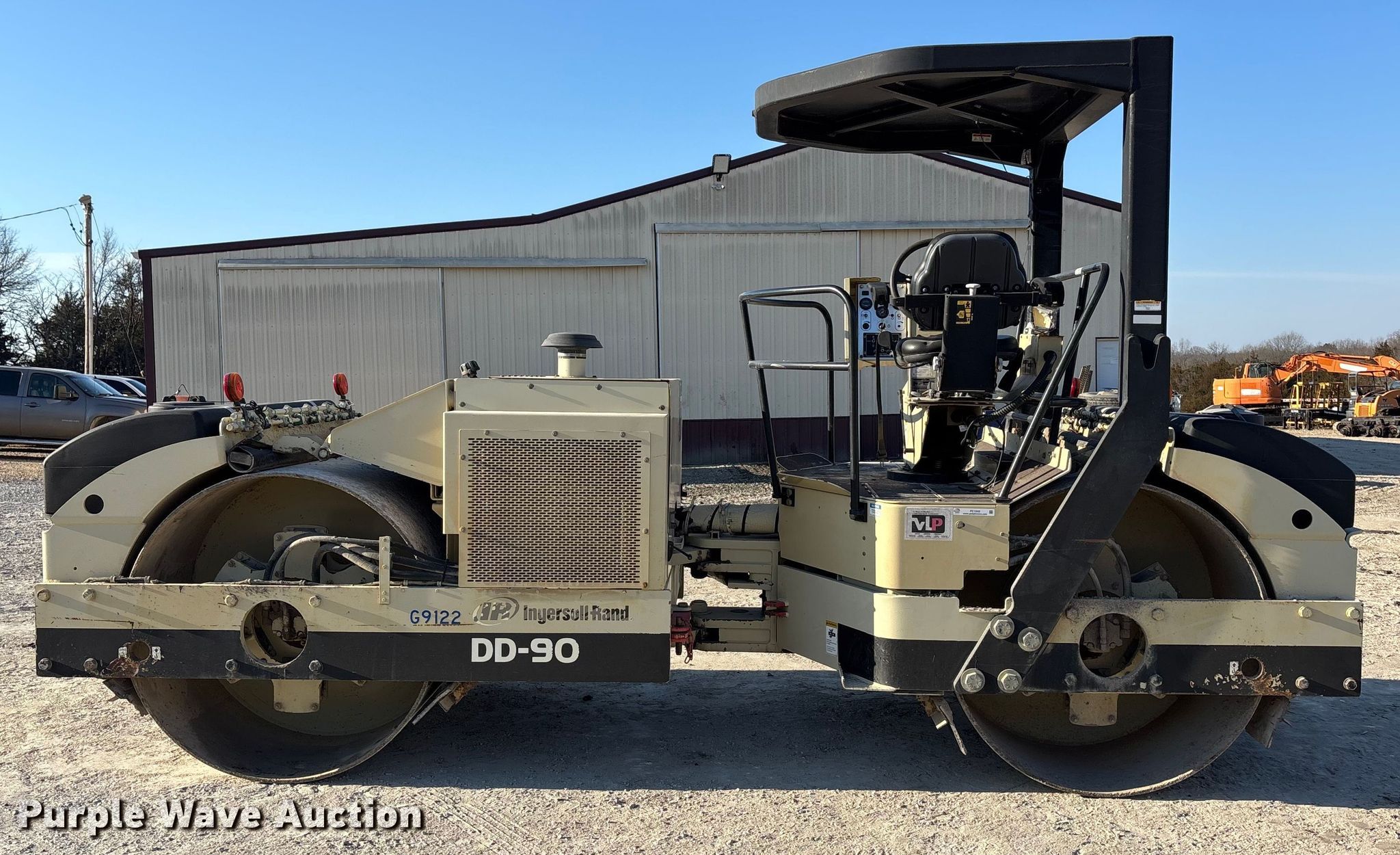 Purple Wave is selling a used Double Drum Roller Compactor in Missouri. This item is a Ingersoll Rand DD-90 double drum vibratory roller with the following: Hours: 2,371 on meter, Serial: 181984
