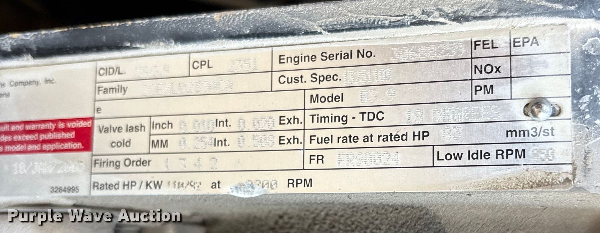 - Displacement: 3.9L