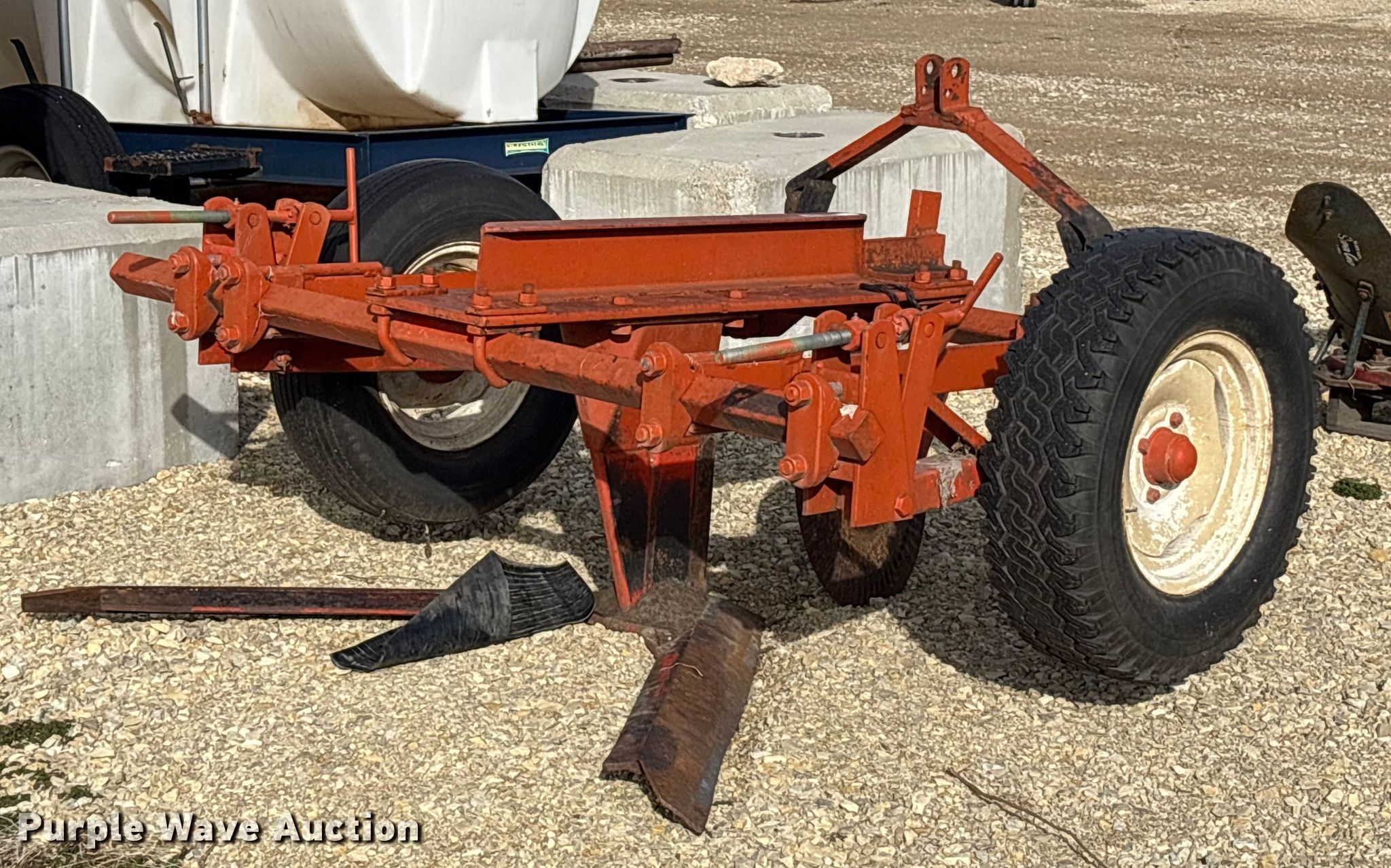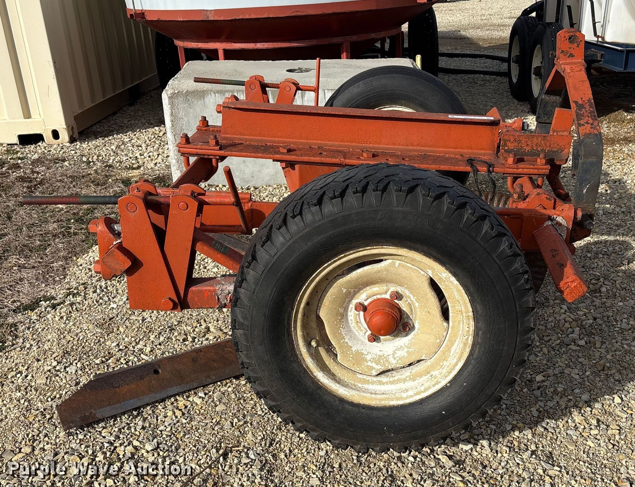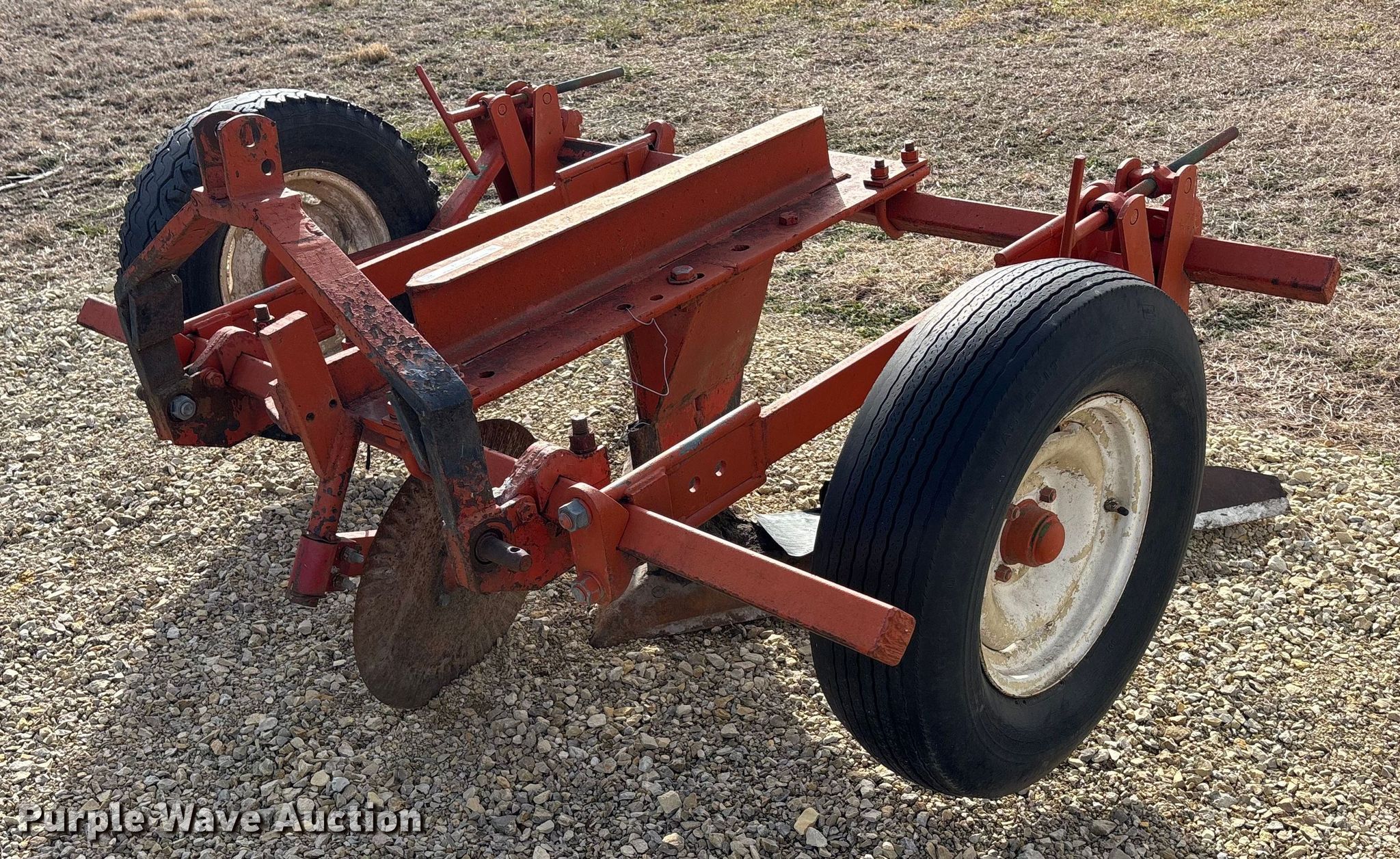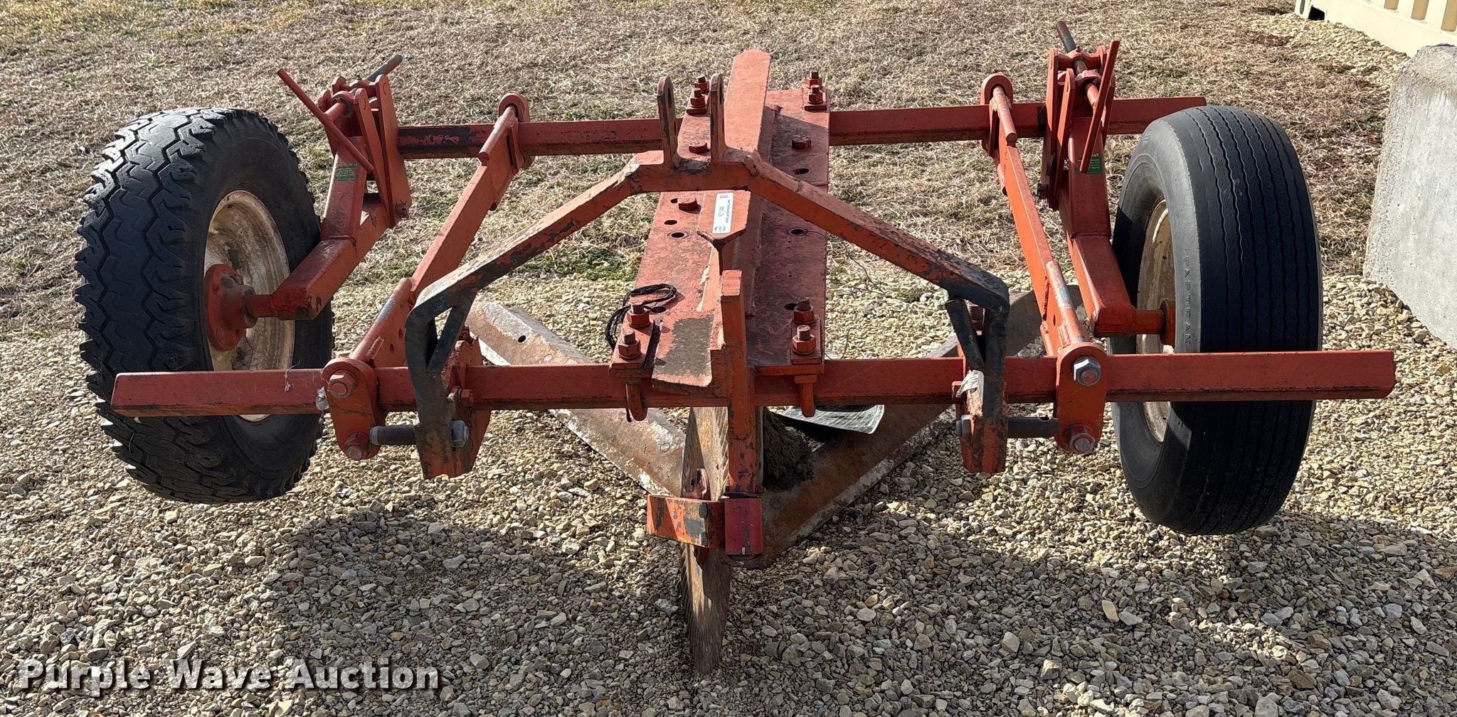 Sweep plow. Overall width: 78". Features Sweep width: 64", Blade diameter Front: 20", Operation Leveler: Manual, Attachments Hitch: Three point. Tires Tire size: 7.8-15. Notes Tires damaged, need replaced. Kansas State University Agronomy Farm. Manhattan, KS 66502