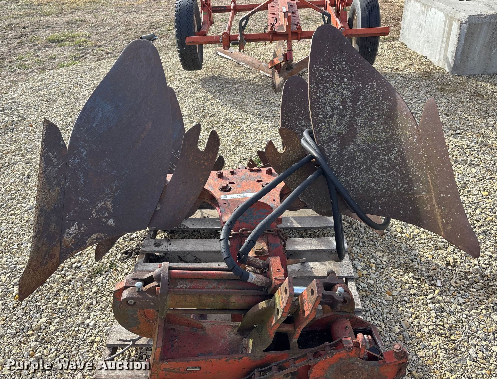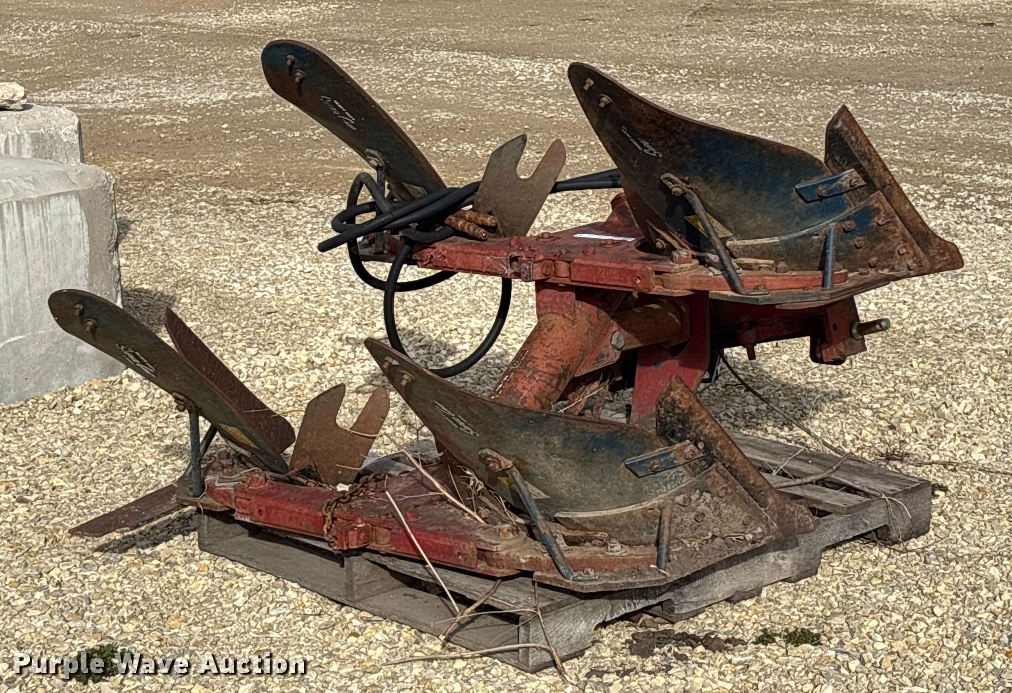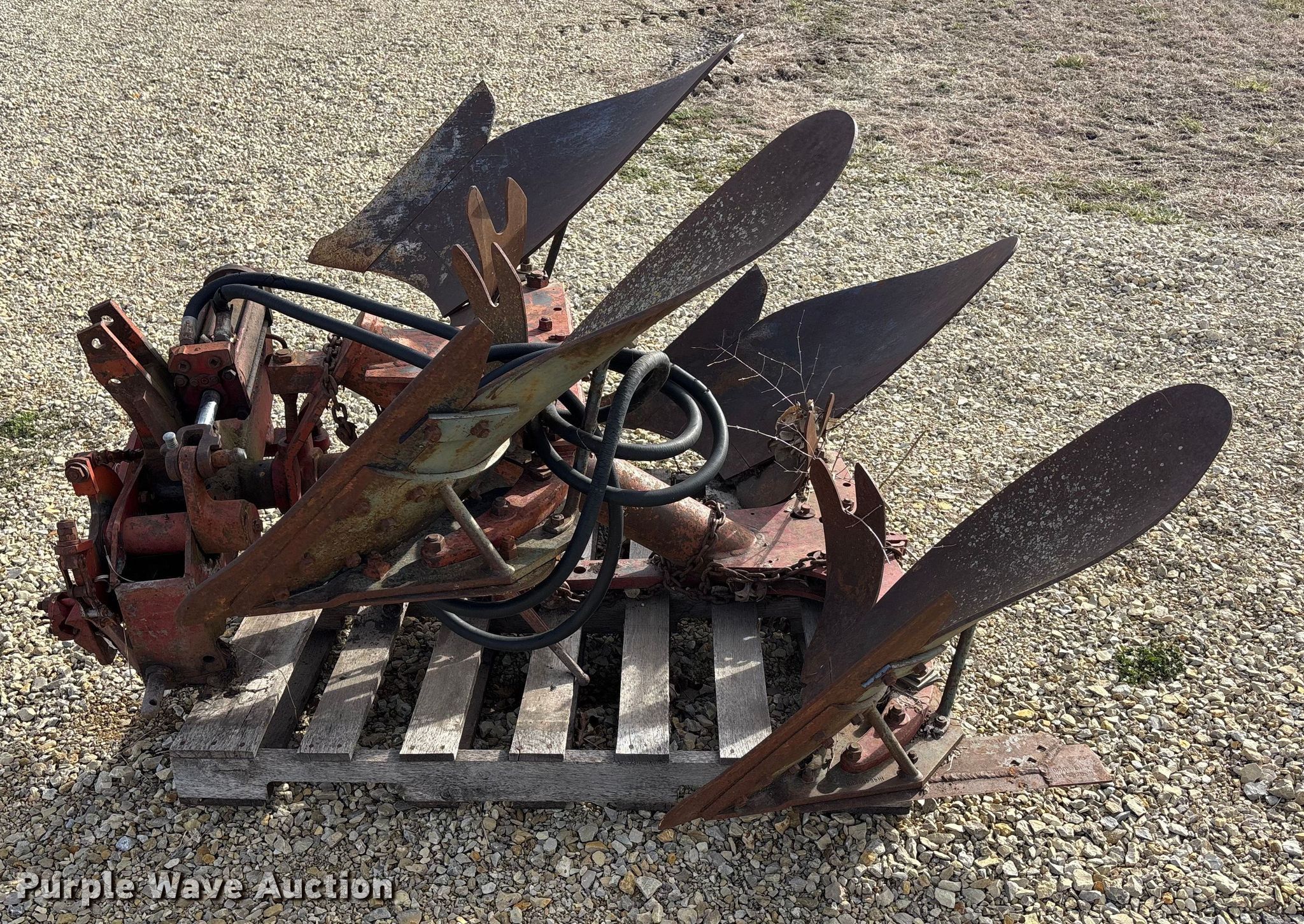 Two bottom plow. Overall width: 56". Features Hitch: Three point. Notes Hydraulic hoses damaged, cracked. Kansas State University Agronomy Farm. Manhattan, KS 66502