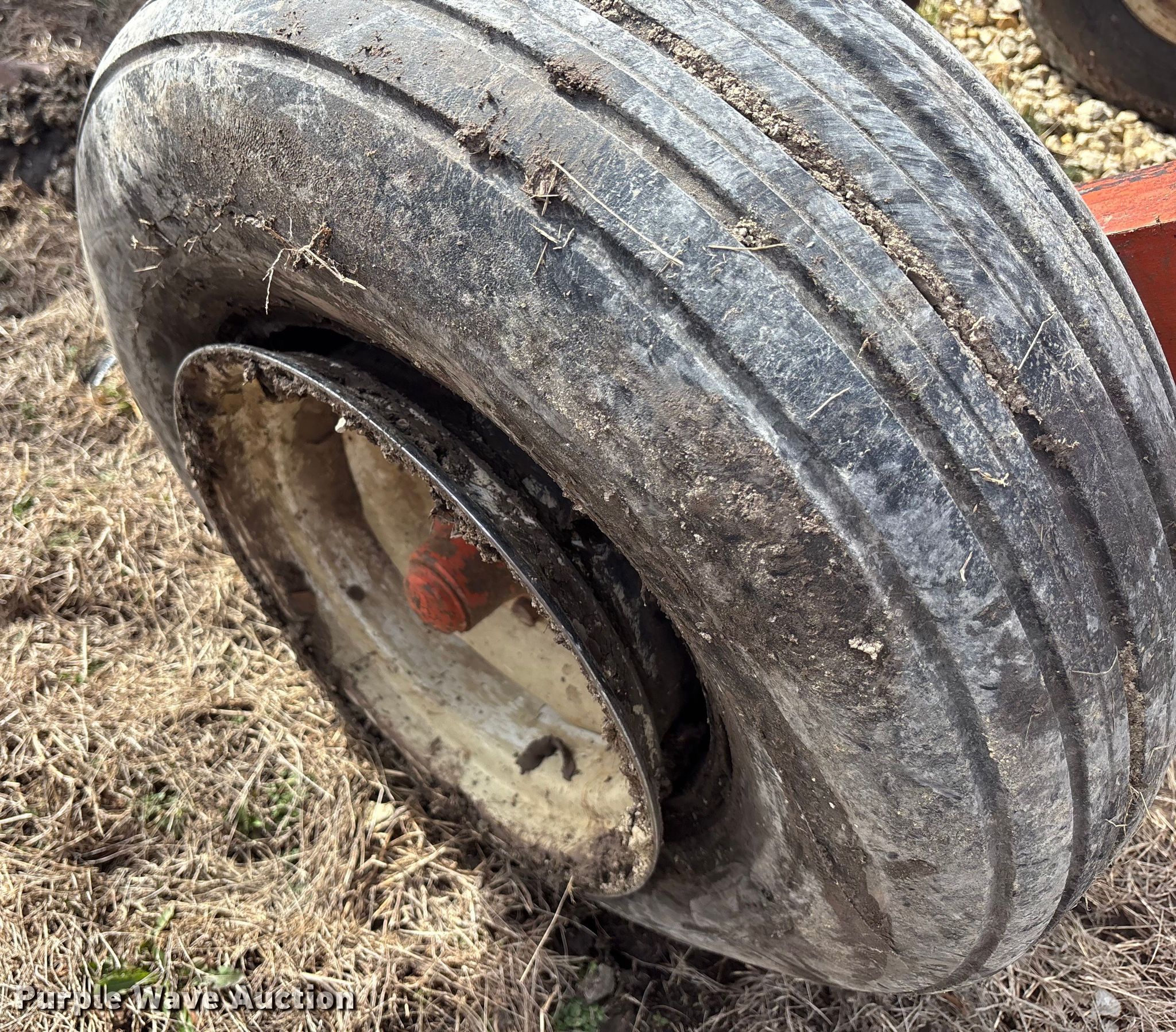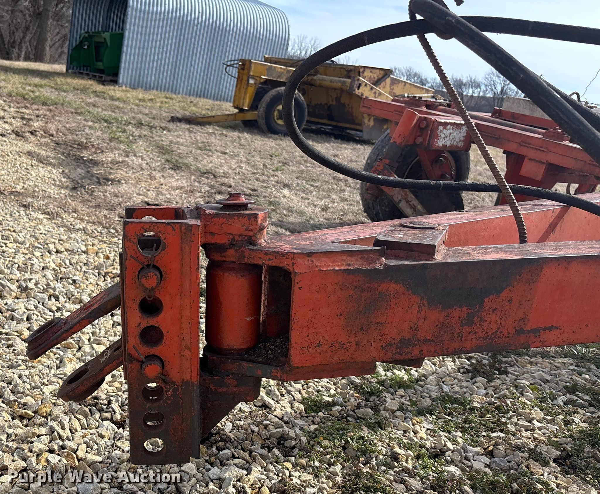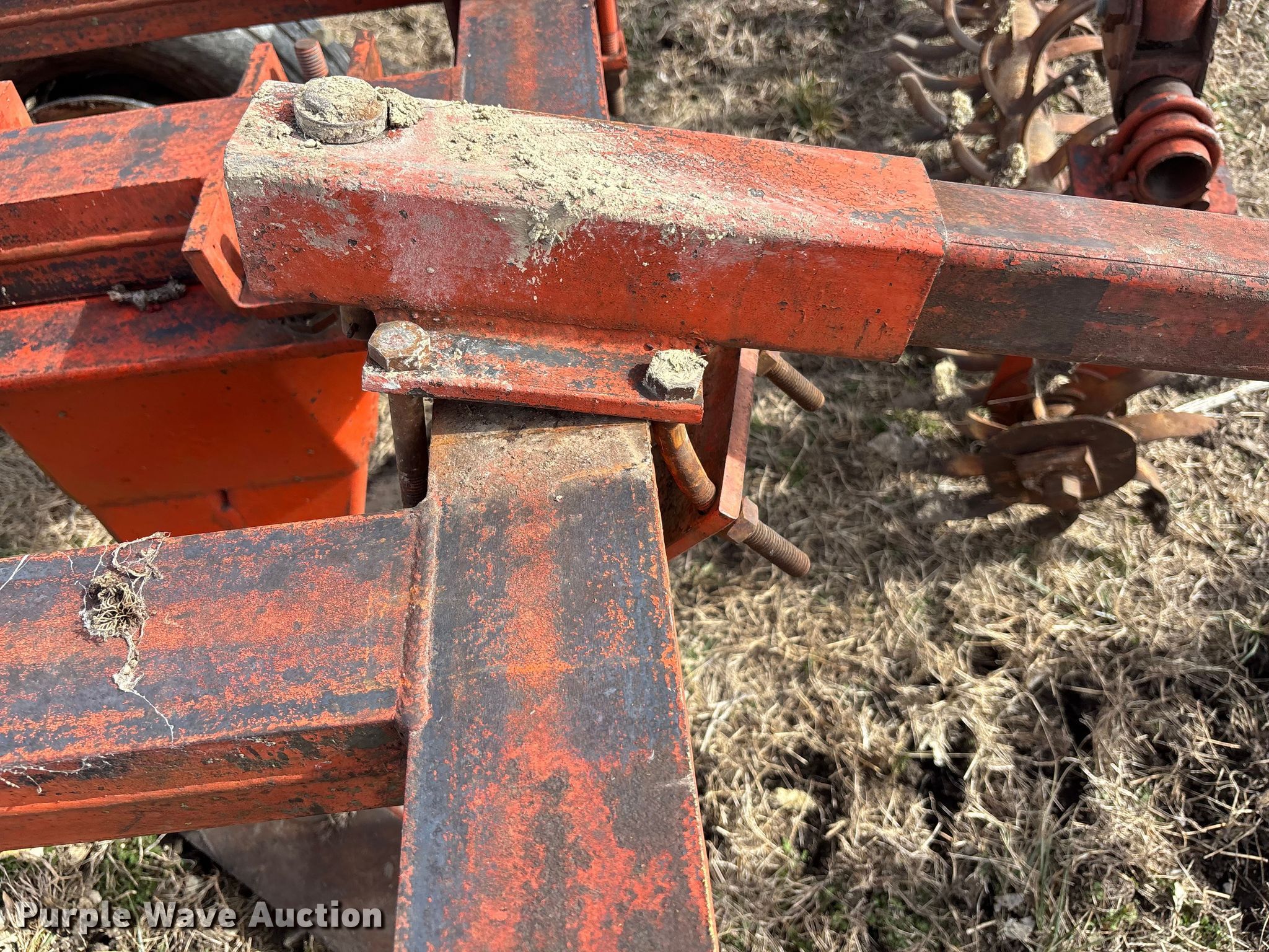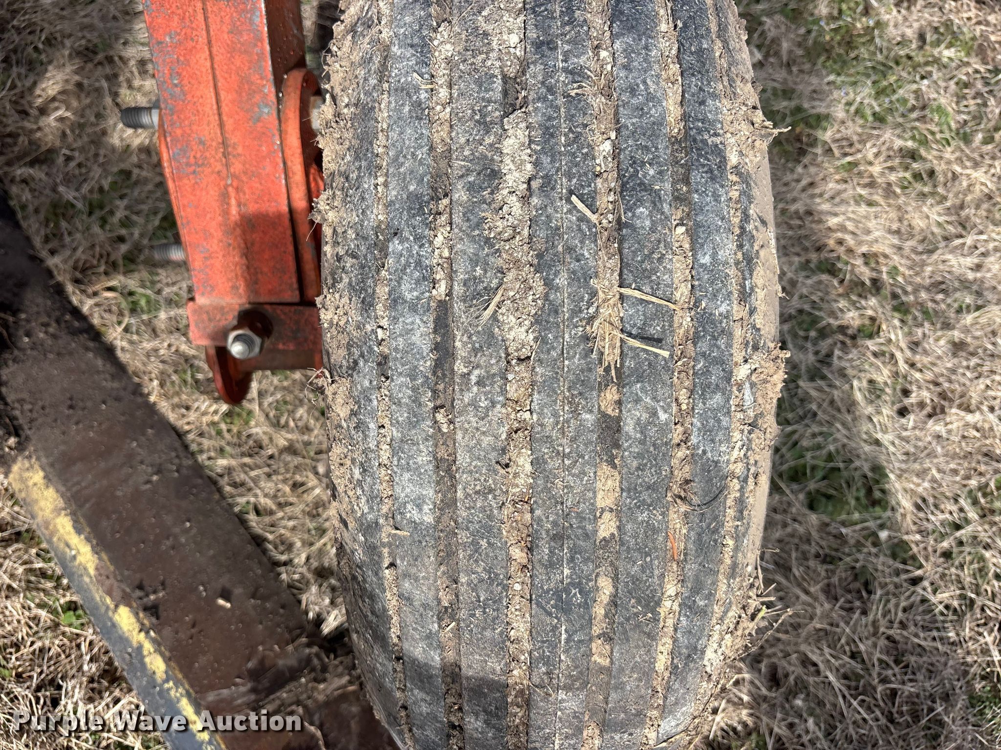 Sweep plow. Overall width: 16', Serial: 6708. Features Shanks: 3, Sweep width: 14', Blade diameter Front: 18", Operation Hydraulic lift, Manual folding, Attachments Rolling pickers/ treader. Tires Tire size: 8.5-14. Notes Tire flat, off bead, Roller picker not secured, Hydraulic hoses damaged, cracked, Unknown operating condition. Kansas State University Agronomy Farm. Manhattan, KS 66502