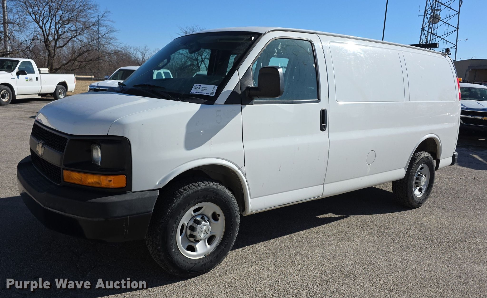2016 Chevrolet Express G2500 van. Miles: 116,809 on odometer, VIN: 1GCWGAFGXG1327591, Unit #: 589. Engine Displacement: 6.0L, Cylinders: 8, Fuel type: Gas. Transmission Automatic. Interior AC, Heat, Power windows, Power locks, Cruise control. Tires Size: 245/75R16. Kansas title. Title distribution may be delayed up to 14 days from verification of funds. Kansas City Board of Public Utilities. Kansas City, KS 66102