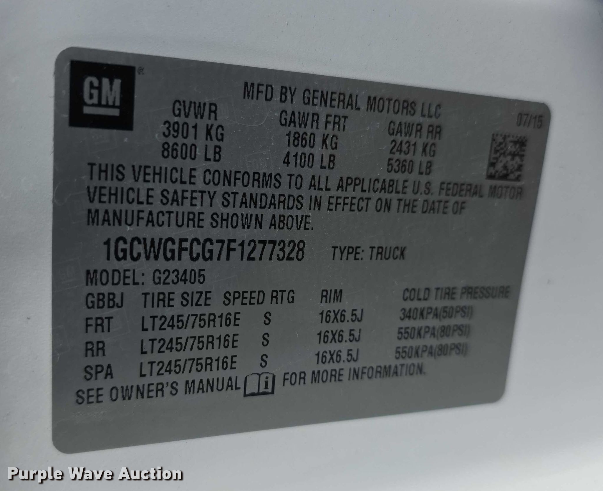 - VIN: 1GCWGFCG7F1277328