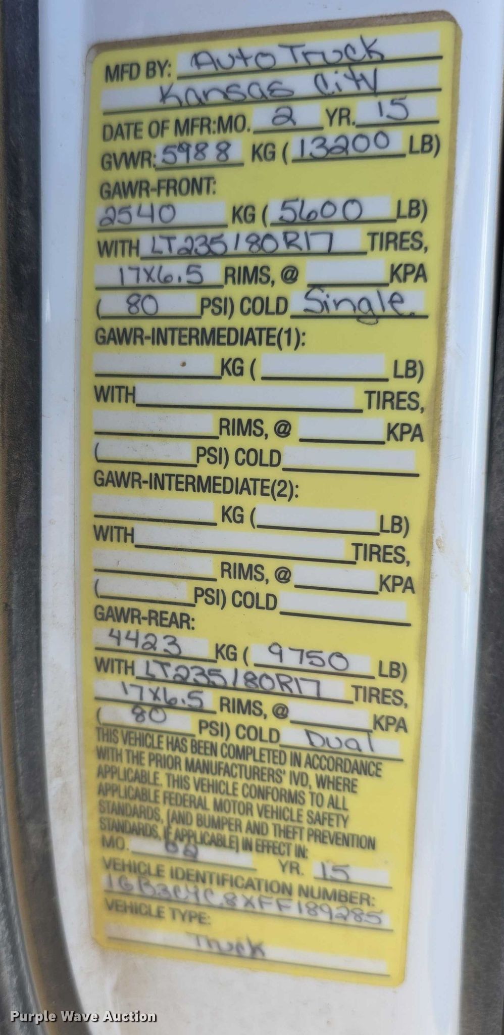 2015 Chevrolet Silverado 3500HD utility bed pickup truck. Miles: 166,599 on odometer, VIN: 1GB3CYC8XFF189285, Unit #: 547. Engine Displacement: 6.6L, Cylinders: 8, Fuel type: Diesel. Transmission Automatic. Interior AC, Heat, Power locks, Cruise control. Features Bed Utility bed, Dakota 132SB, Serial: DB20287, Length: 11', Width: 8', Height: 44". Tires Size: 235/80R17. Kansas title. Title distribution may be delayed up to 14 days from verification of funds. Kansas City Board of Public Utilities. Kansas City, KS 66102