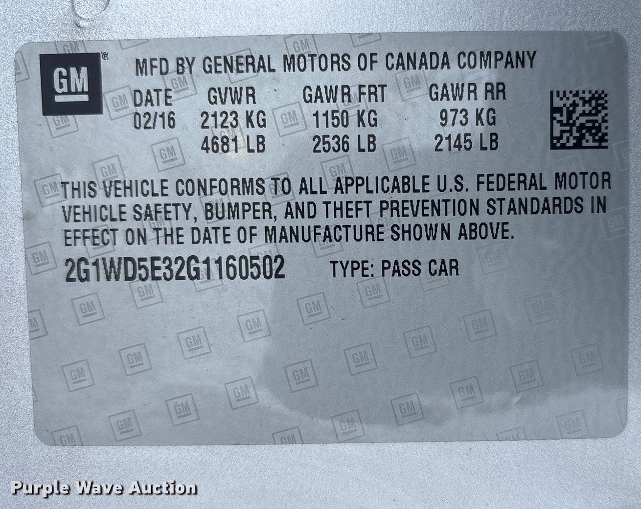 Purple Wave is selling a used Passenger Vehicle in Indiana. This item is a 2016 Chevrolet Impala Limited Police Cruiser with the following: Miles: 70,383 on odometer, VIN: 2G1WD5E32G1160502