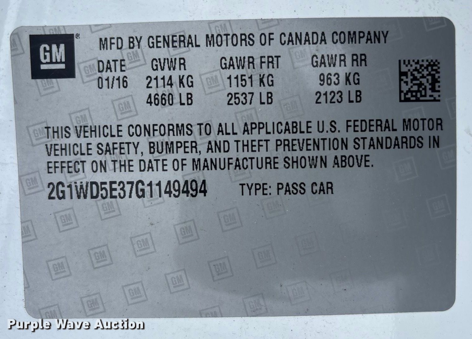 Purple Wave is selling a used Passenger Vehicle in Indiana. This item is a 2016 Chevrolet Impala Limited Police Cruiser with the following: Miles: 90,501 on odometer, VIN: 2G1WD5E37G1149494