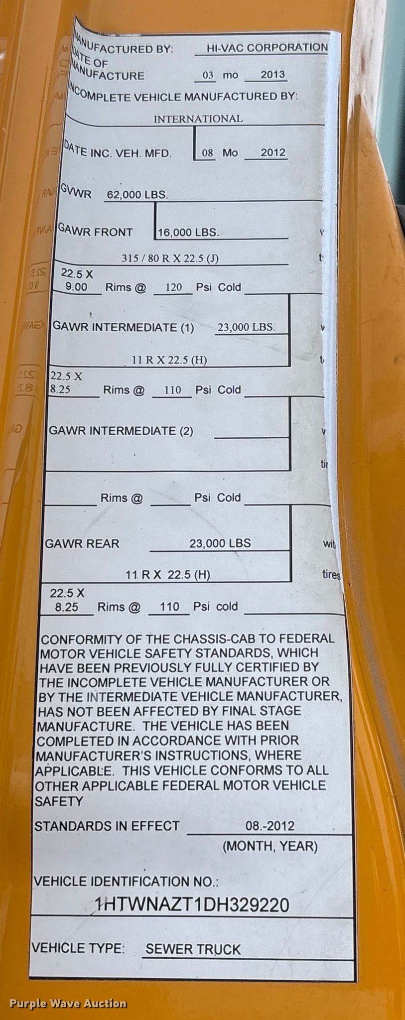 • VIN: 1HTWNAZT1DH329220