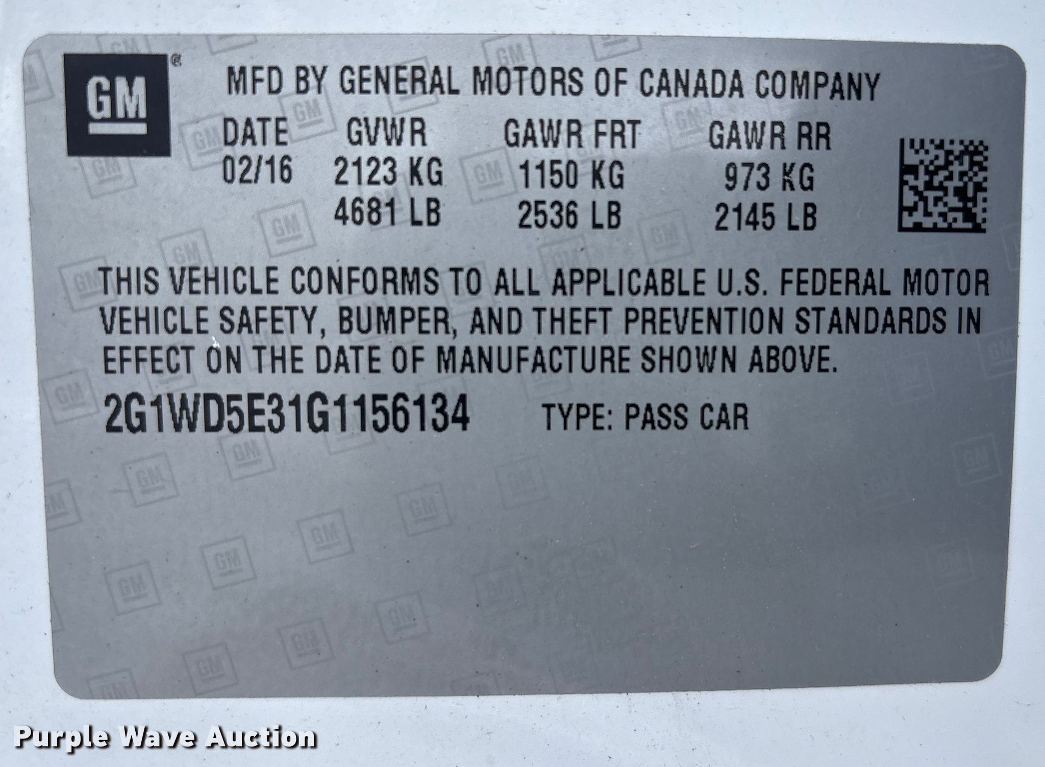 - VIN: 2G1WD5E31G1156134