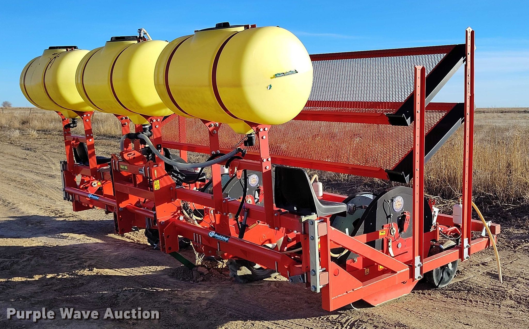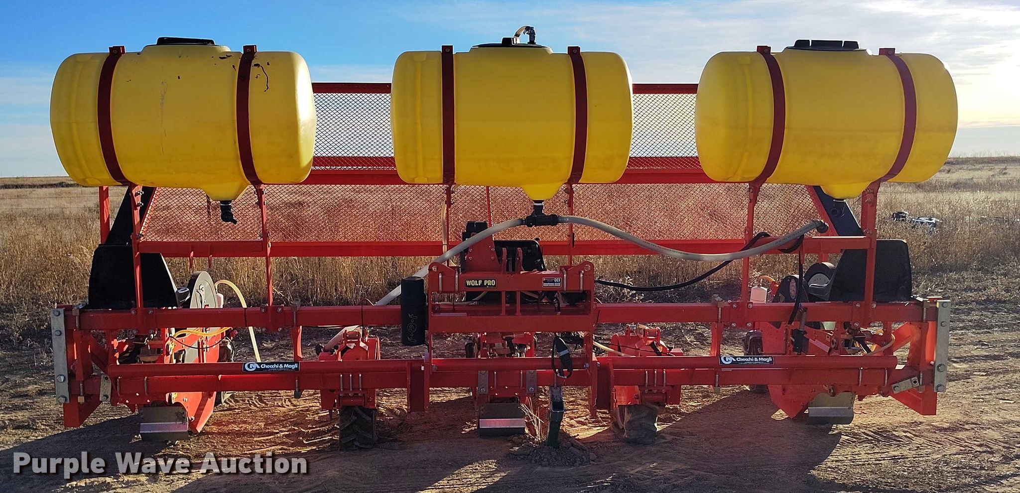 Purple Wave is selling a used Planter in Colorado. This item is a 2019 Checchi & Magli Wolf Pro 3 transplanter with the following: Width: 14', Row units: 3, Row spacing: 72", Serial: 22822