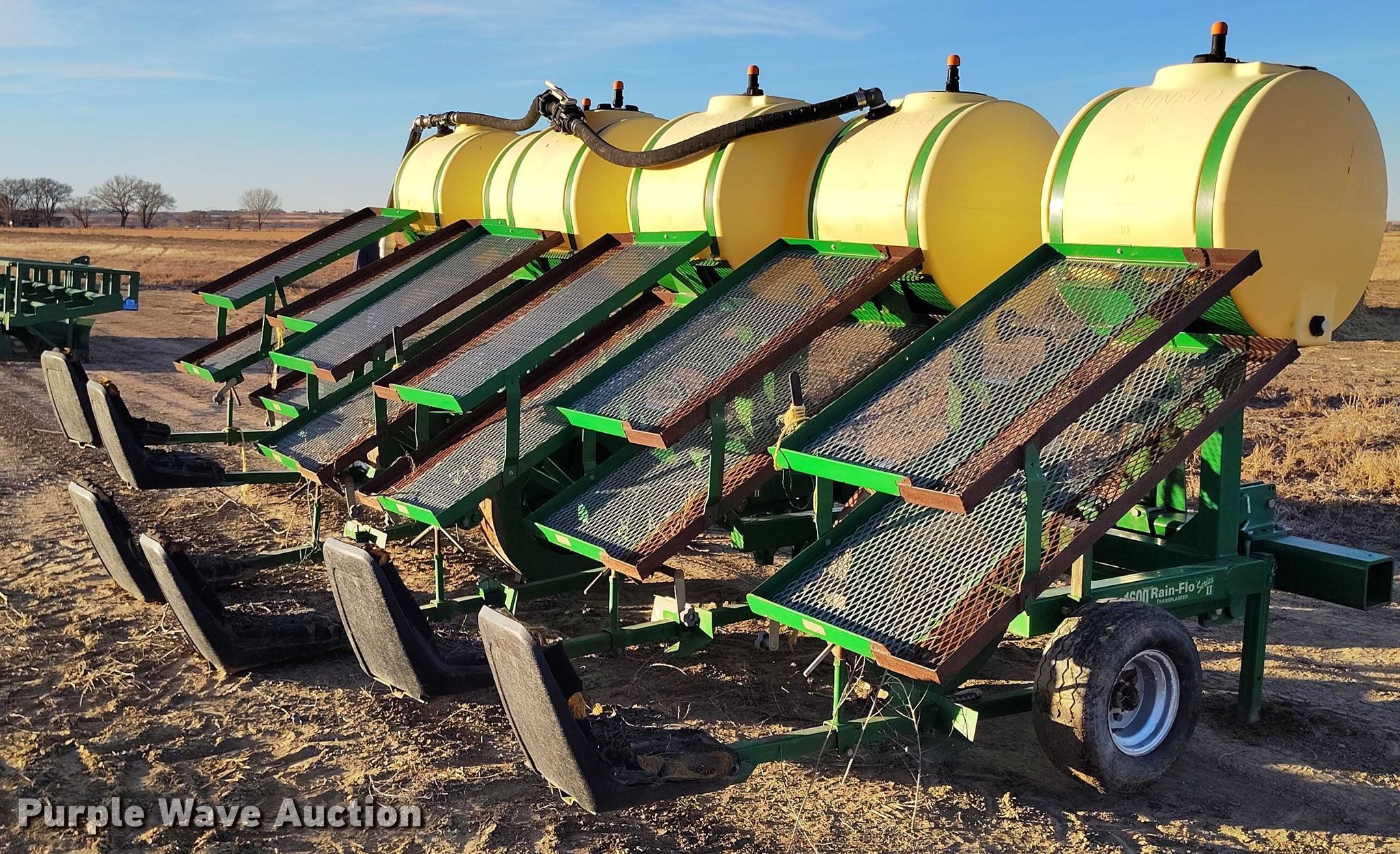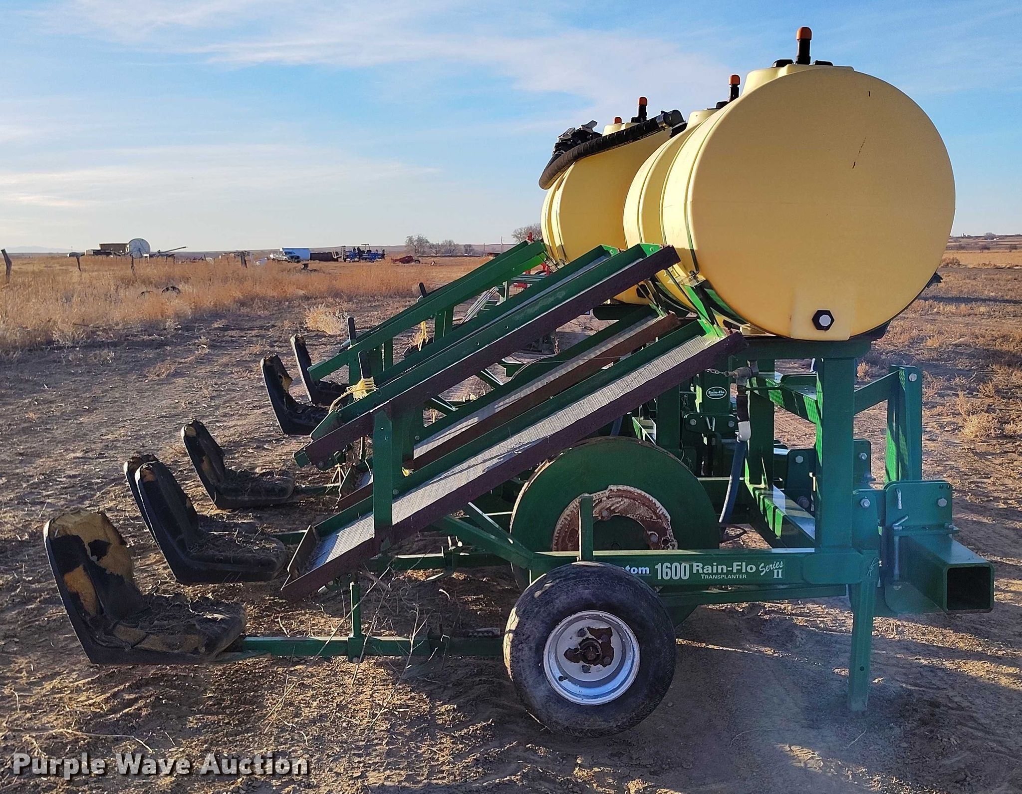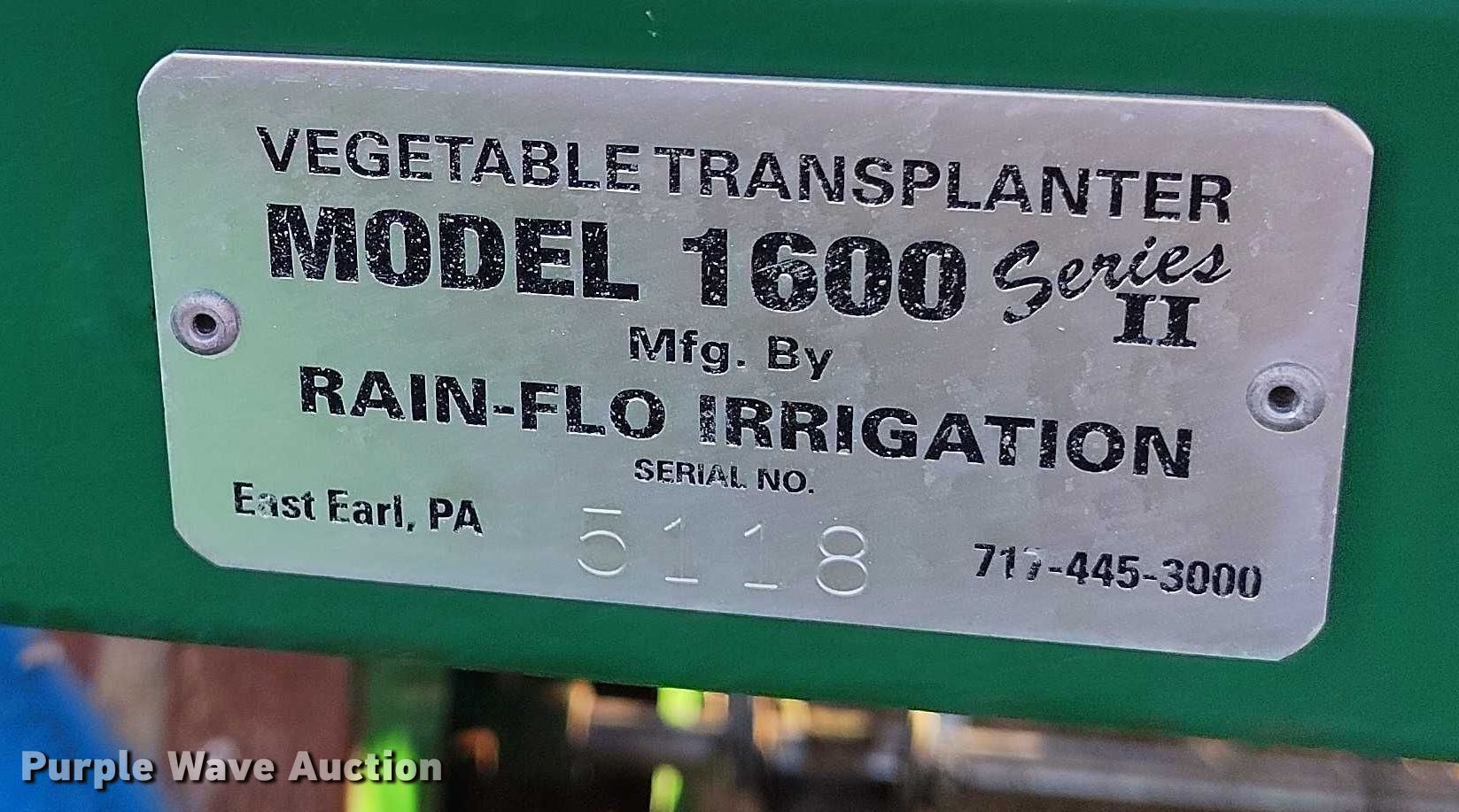 Purple Wave is selling a used Planter in Colorado. This item is a Rain-Flo Irrigation 1600 Serries II transplanter with the following: Width: 17', Row units: 3, Row spacing: 72", Serial: 5118