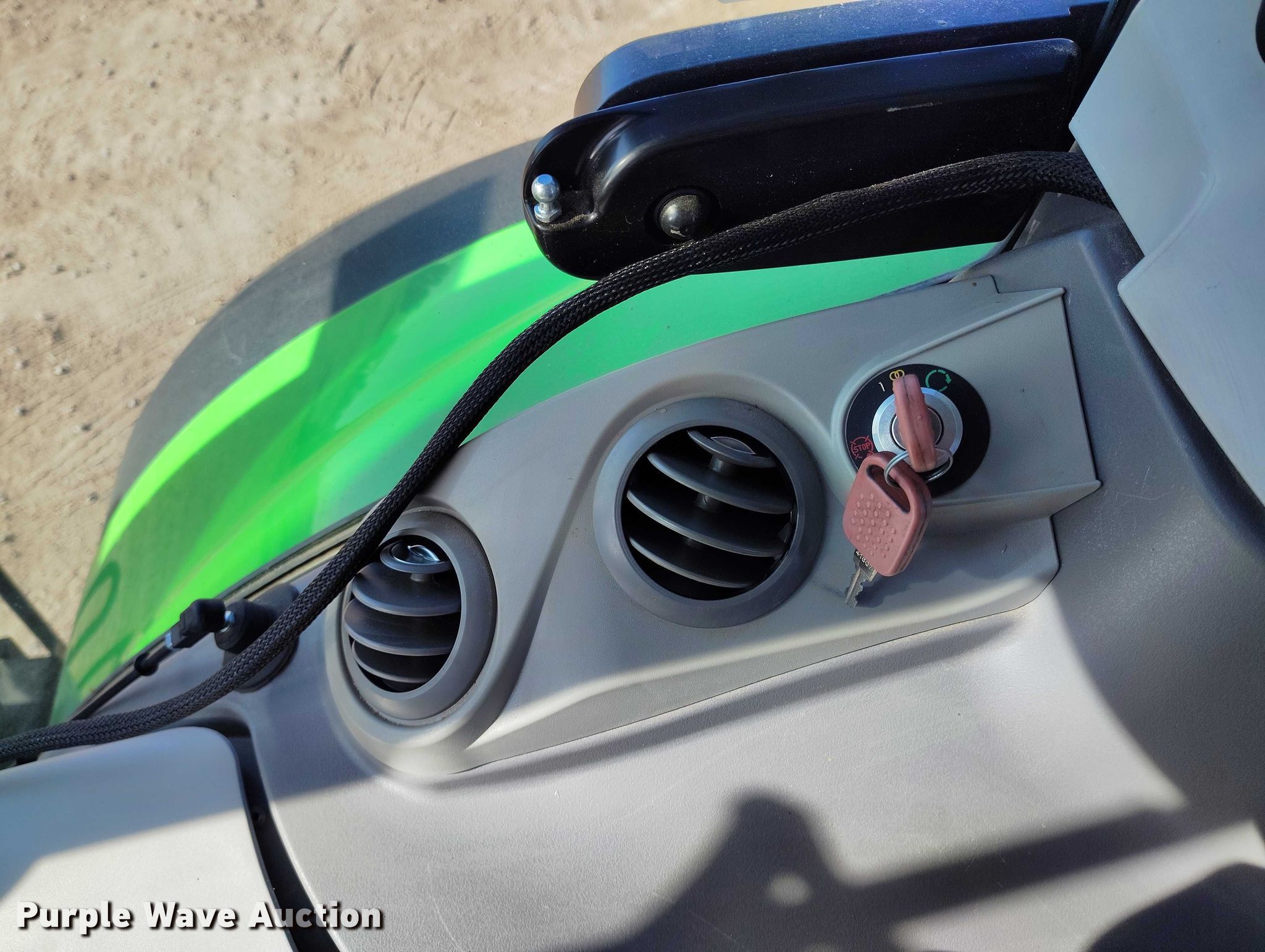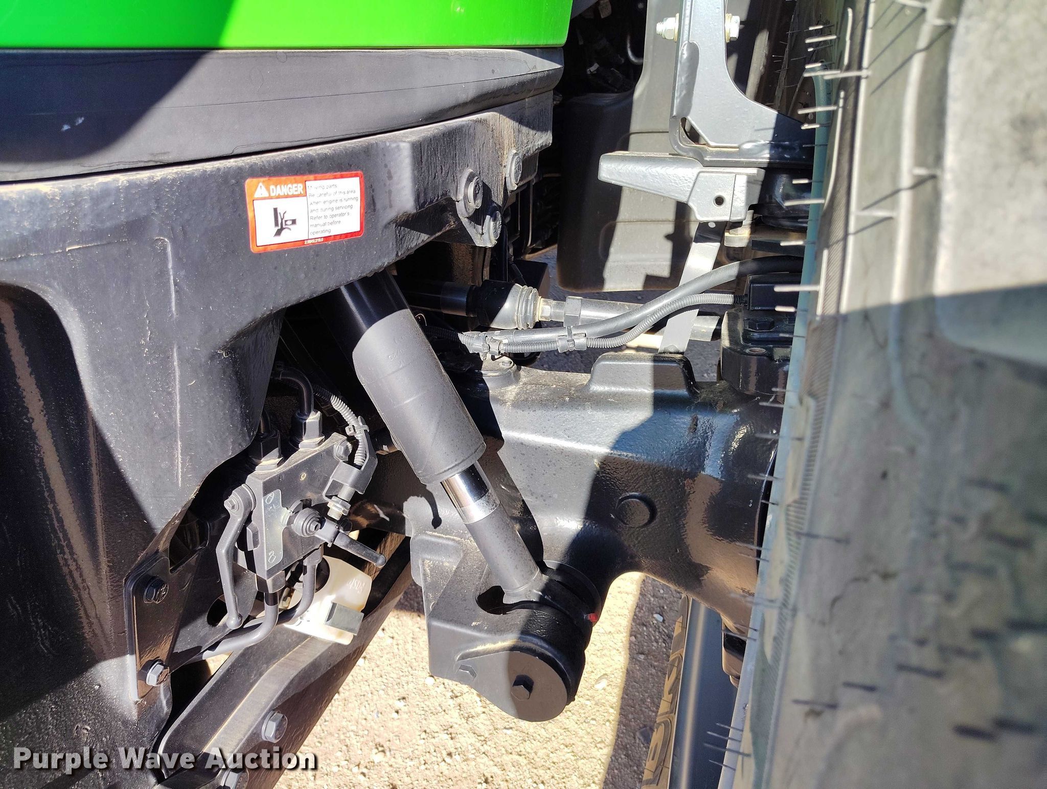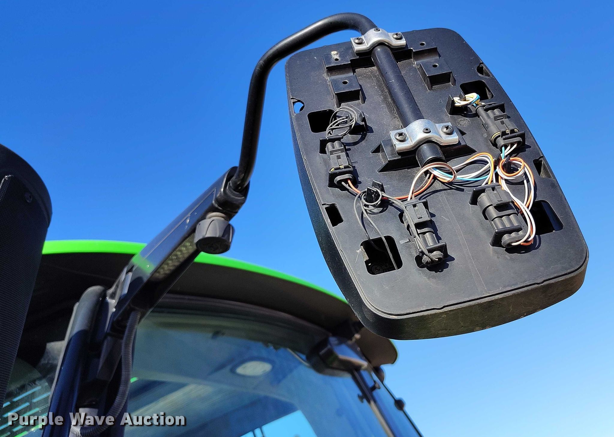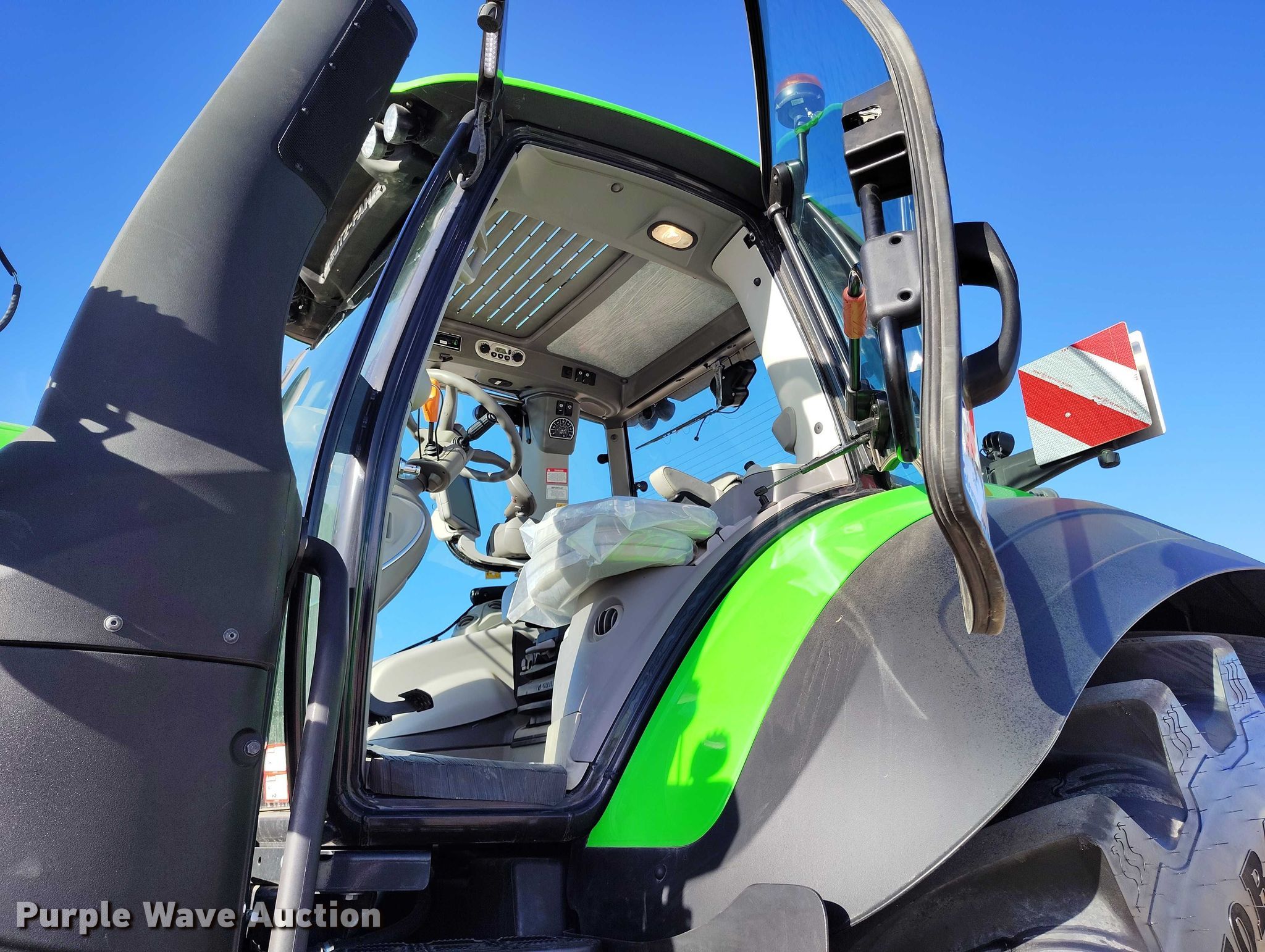 2022 Deutz-Fahr 9340 TTV Agrotron Warrior MFWD tractor. Hours: 127 on meter, Serial: WSXAE50200LD50102. Engine Detuz TCD 7.8 L06, Displacement: 7.8L, Cylinders: 6, Fuel type: Diesel, HP: 336. Transmission CVT, Left-hand reverser, Differential lock. Operators station AC, Heat, Display Detuz-Fahr iMonitor, Auto steer. Features PTO: 540, 1000, Front mount PTO: 540, Three point Top link, Front mount three point, Seven pin outlet, ISOBUS outlet, Hydraulic remote sets Front: 2, Rear: 5, Power beyond (hydraulics), Front mount power beyond (hydraulics). Tires Front: 650/65R34, Rear: 800/70R42, Wheel weights: 6. Notes Hail damage. Armstrong Equipment LLC. Yuma, CO 80759