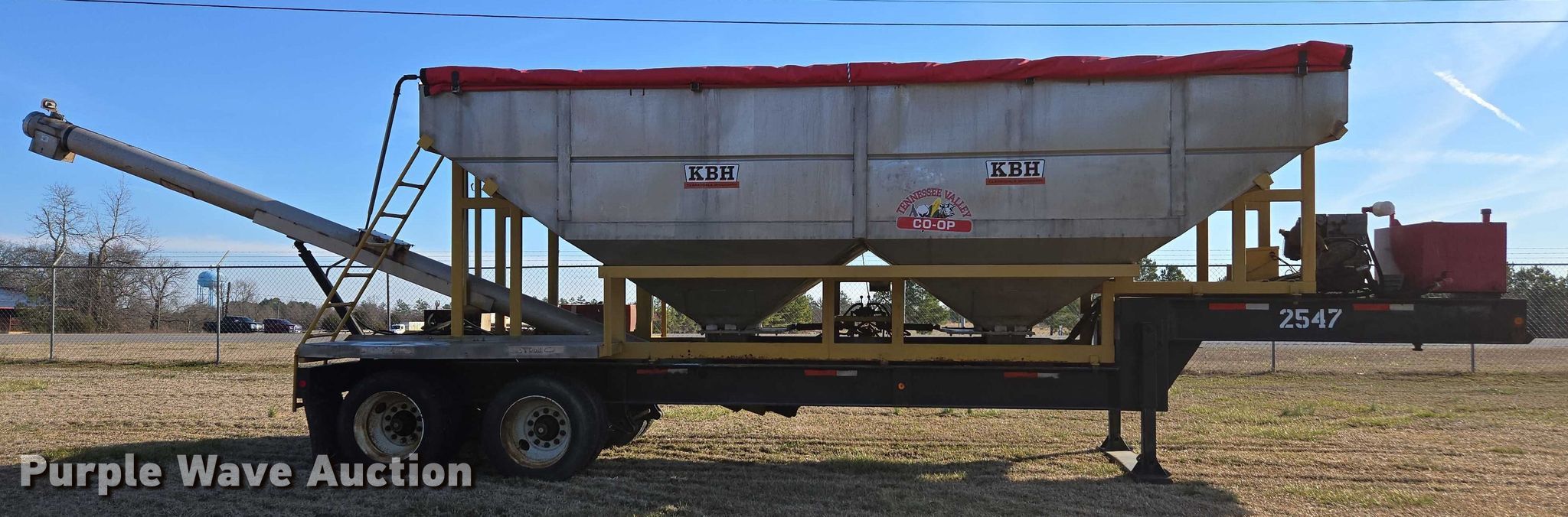2012 KBH fertilizer tender trailer. Hours: 766 on meter, VIN: 1T9FH3224CC621144, Serial: TT02306. Engine Deutz D201, Cylinders: 3, Fuel type: Diesel. Features Auger diameter: 8", Shut-off gate: Hydraulic, Compartments: 2, Roll tarp, Length: 32' 5", Auger length: 11', Width: 102". Tires Size: 255/70R22.5. Alabama title. Title distribution may be delayed up to 14 days from verification of funds. Tennessee Valley Cooperative, Inc.. Moulton, AL 35650