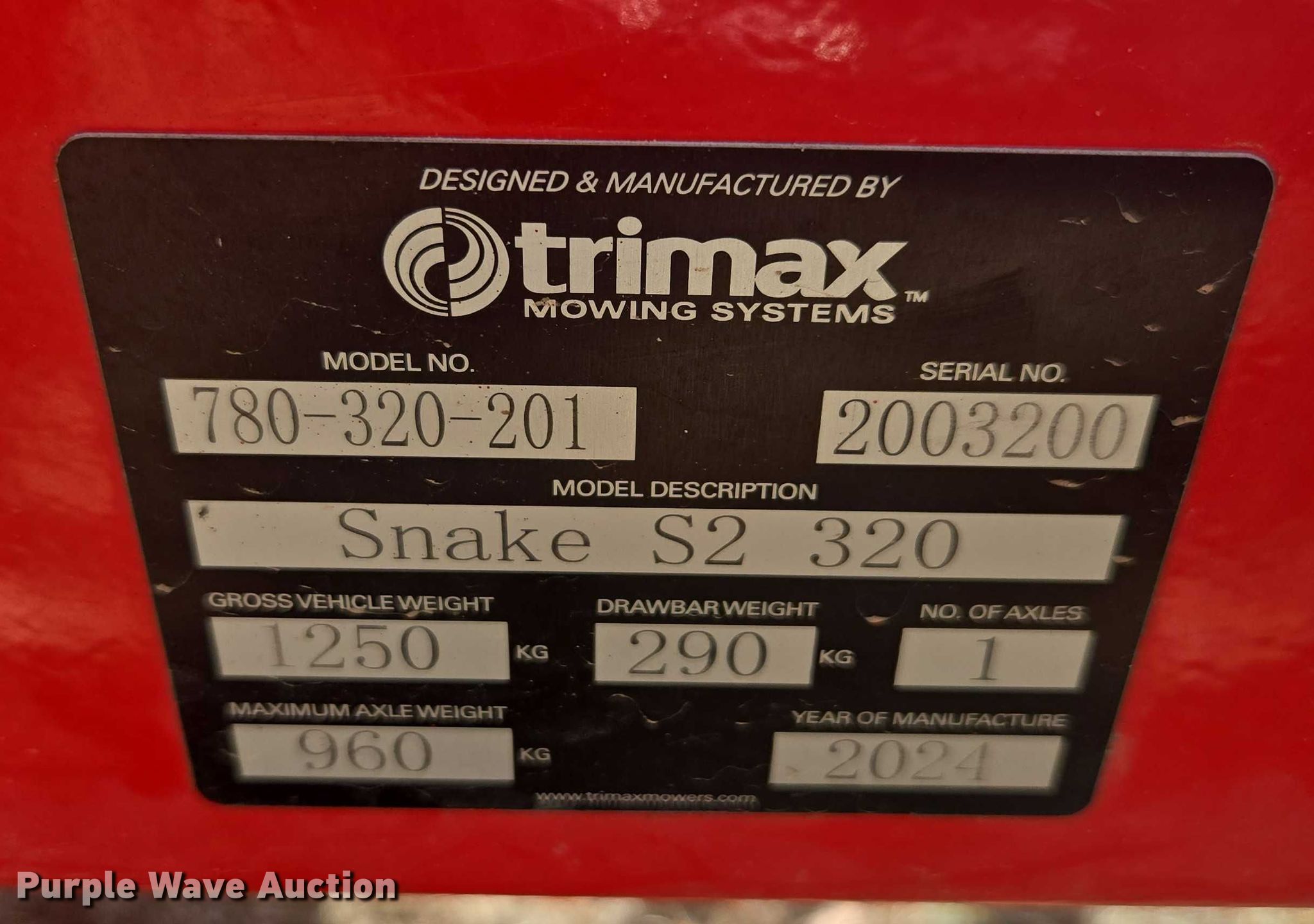 2024 Trimax Snake S2 320 batwing finish mower. Serial: 2003200. Features Width: 127", Hydraulic lift, Hydraulic fold, PTO: 540. Tires Size: 20x10-10. Trimax Mowing Systems. Fayetteville, GA 30214