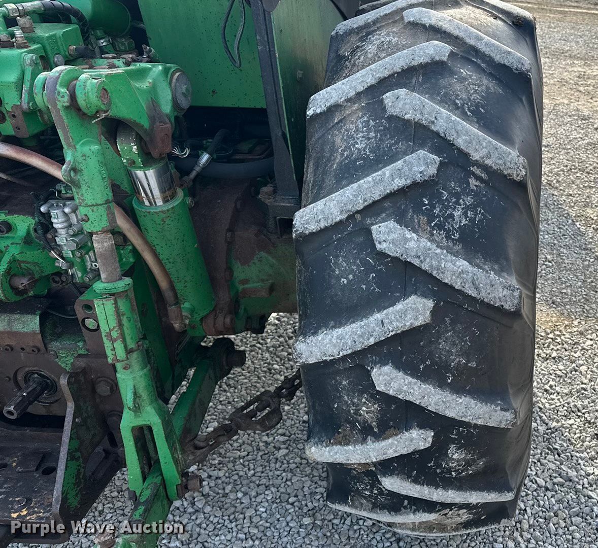 2008 John Deere 6430 MFWD tractor. Hours: 5,228 on meter, Serial: 1L06430D558335. Engine John Deere, Cylinders: 4, Fuel type: Diesel. Transmission Powershift, 16F - 16R, Differential lock. Features PTO: 540, Three point, Seven pin outlet, Hydraulic remote sets Rear: 2. Tires Front: 10.5/80-18, Rear: 16.9-24, Wheel weights: 4. Notes Warning indicator: PTO, Transmission issues, will not shift to park Slips, Possible engine issues, coolant leak , Non-operational PTO. Knob Noster, MO 65336