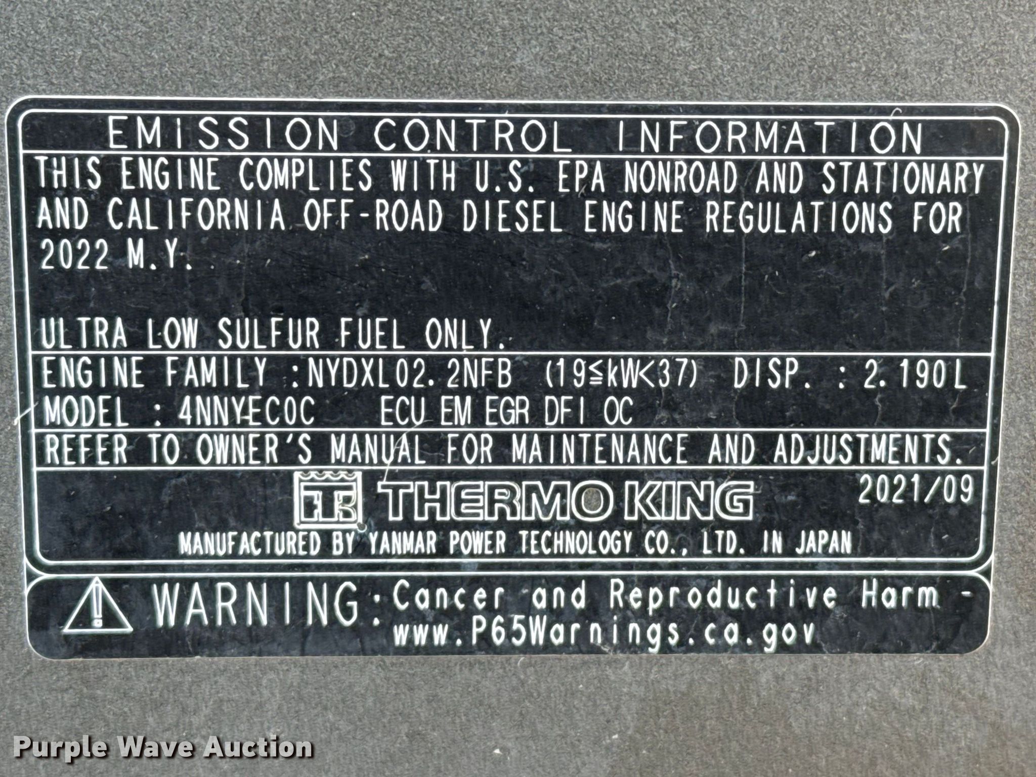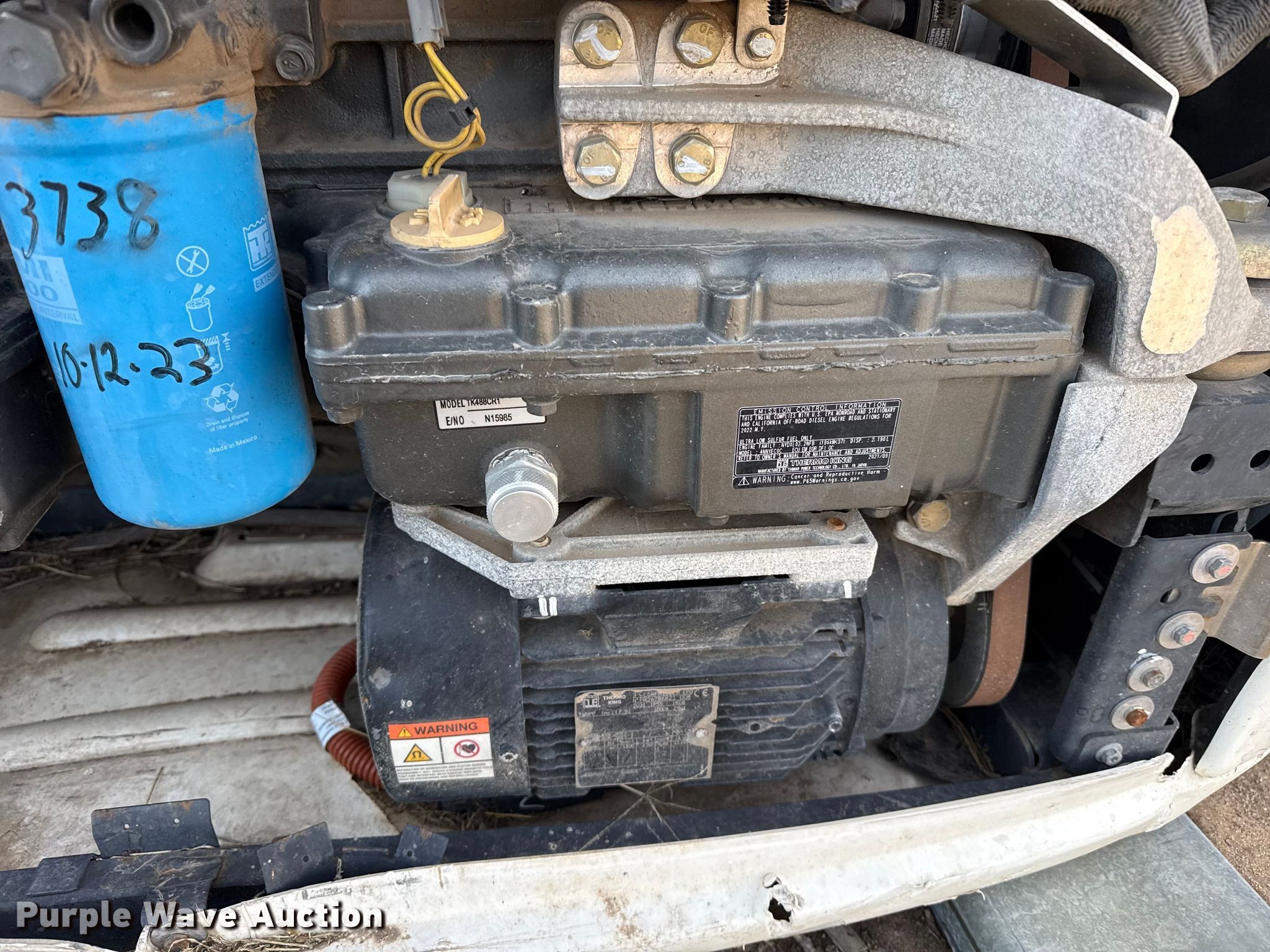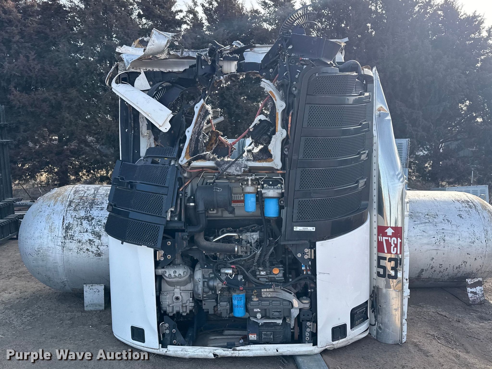 Purple Wave is selling a used Truck Part and Attach. in Kansas. This item is a 2022 ThermoKing refrigerator unit with the following: Diesel engine, Cylinders: 4, Unit damaged, Non-operational unit
