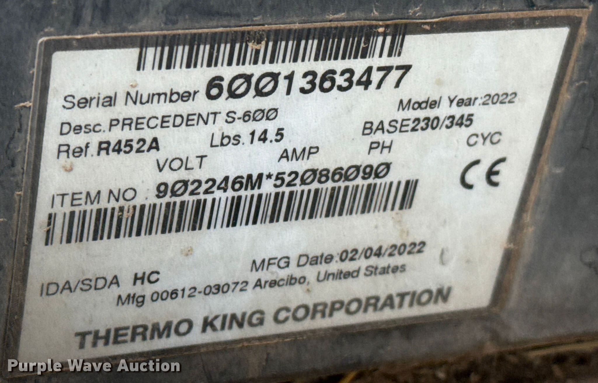 This 2022 ThermoKing refrigerator unit will sell to the highest bidder regardless of price.