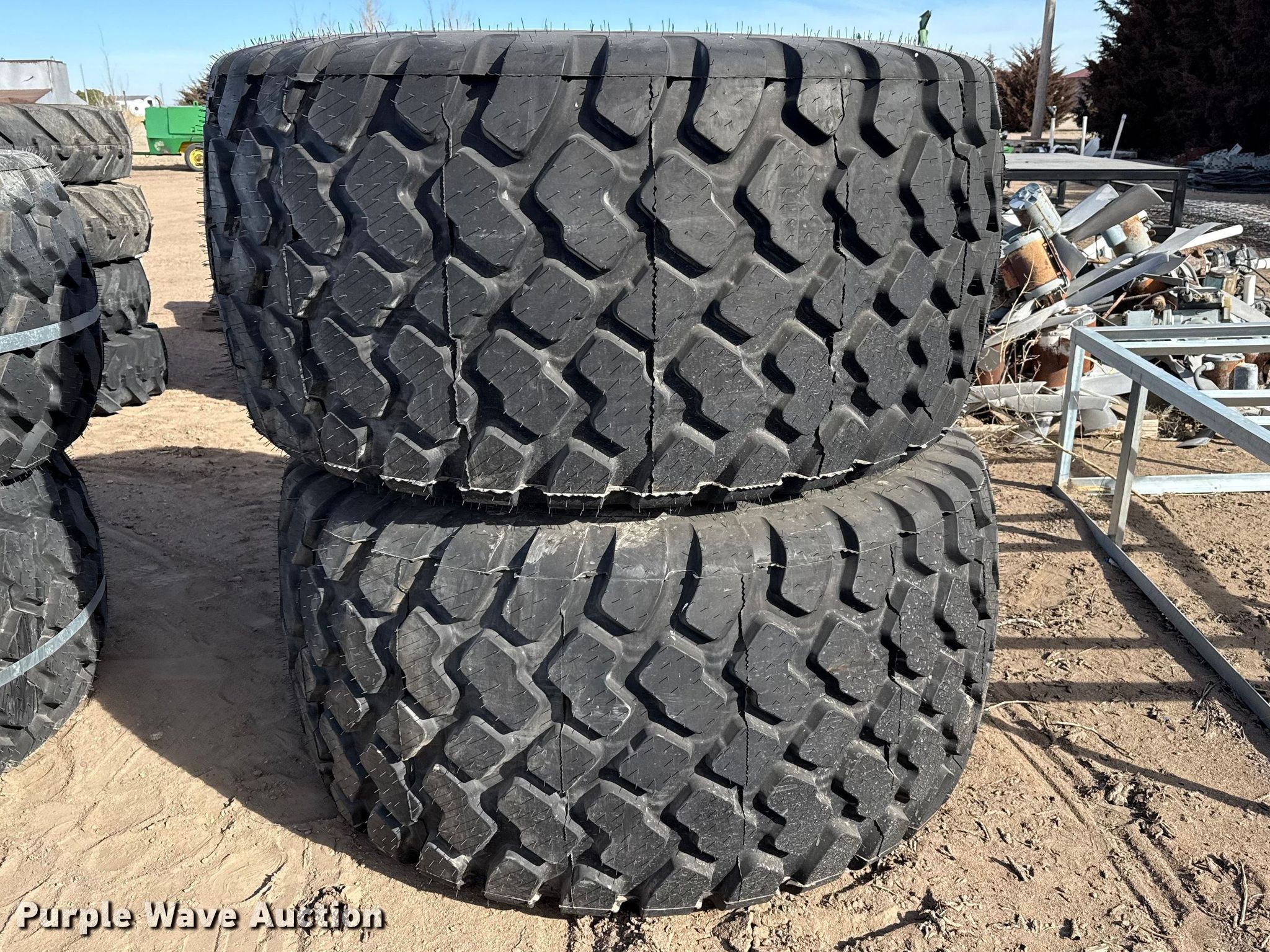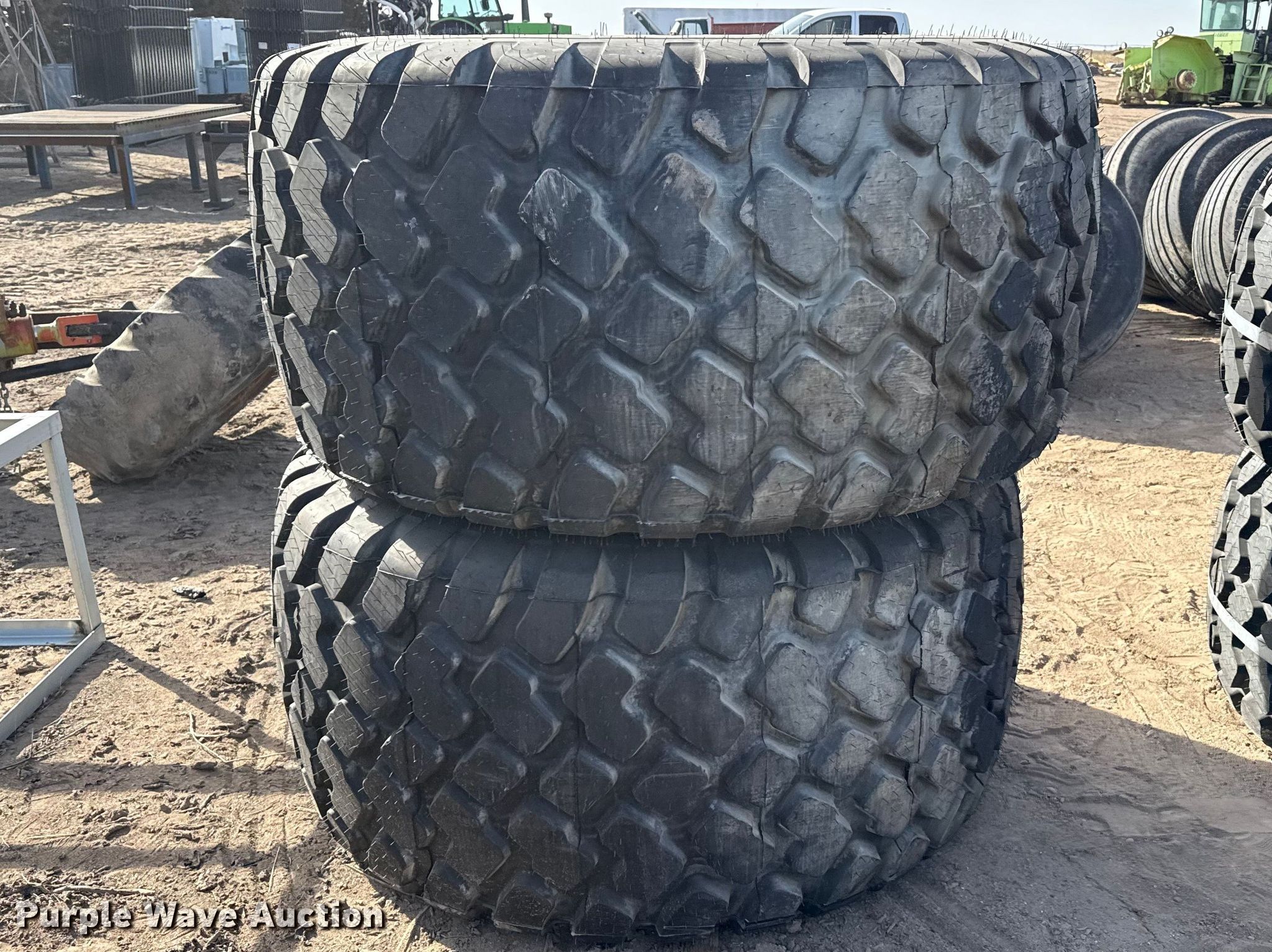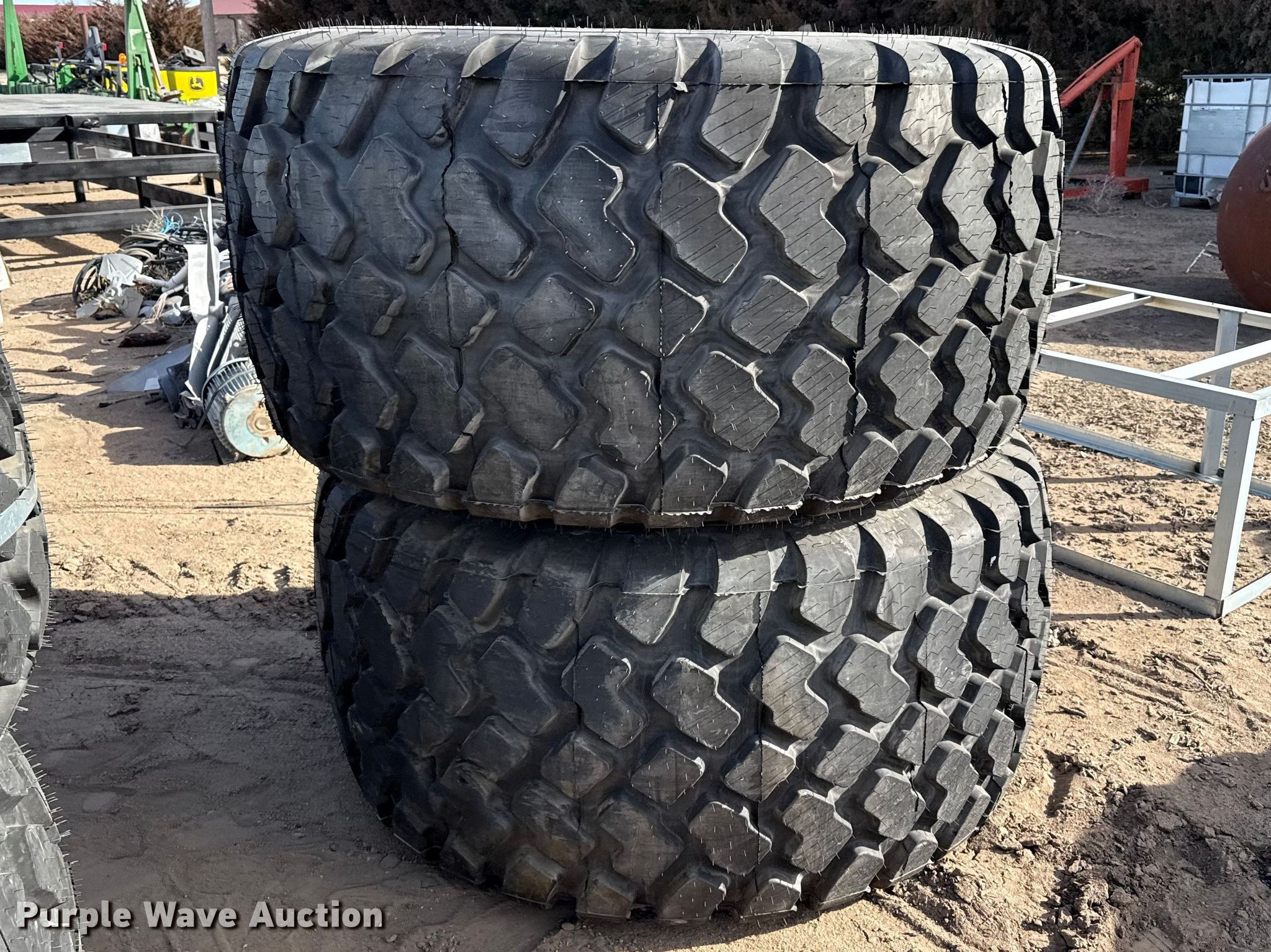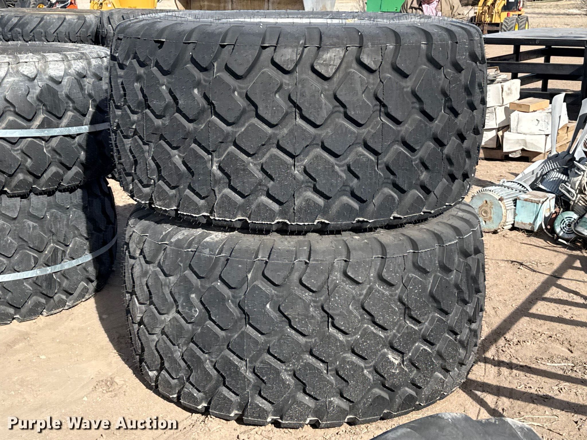 Purple Wave is selling a used Industrial Tires or Tracks in Kansas. This item is a (2) 28LR26 tires and wheels with the following: Unused