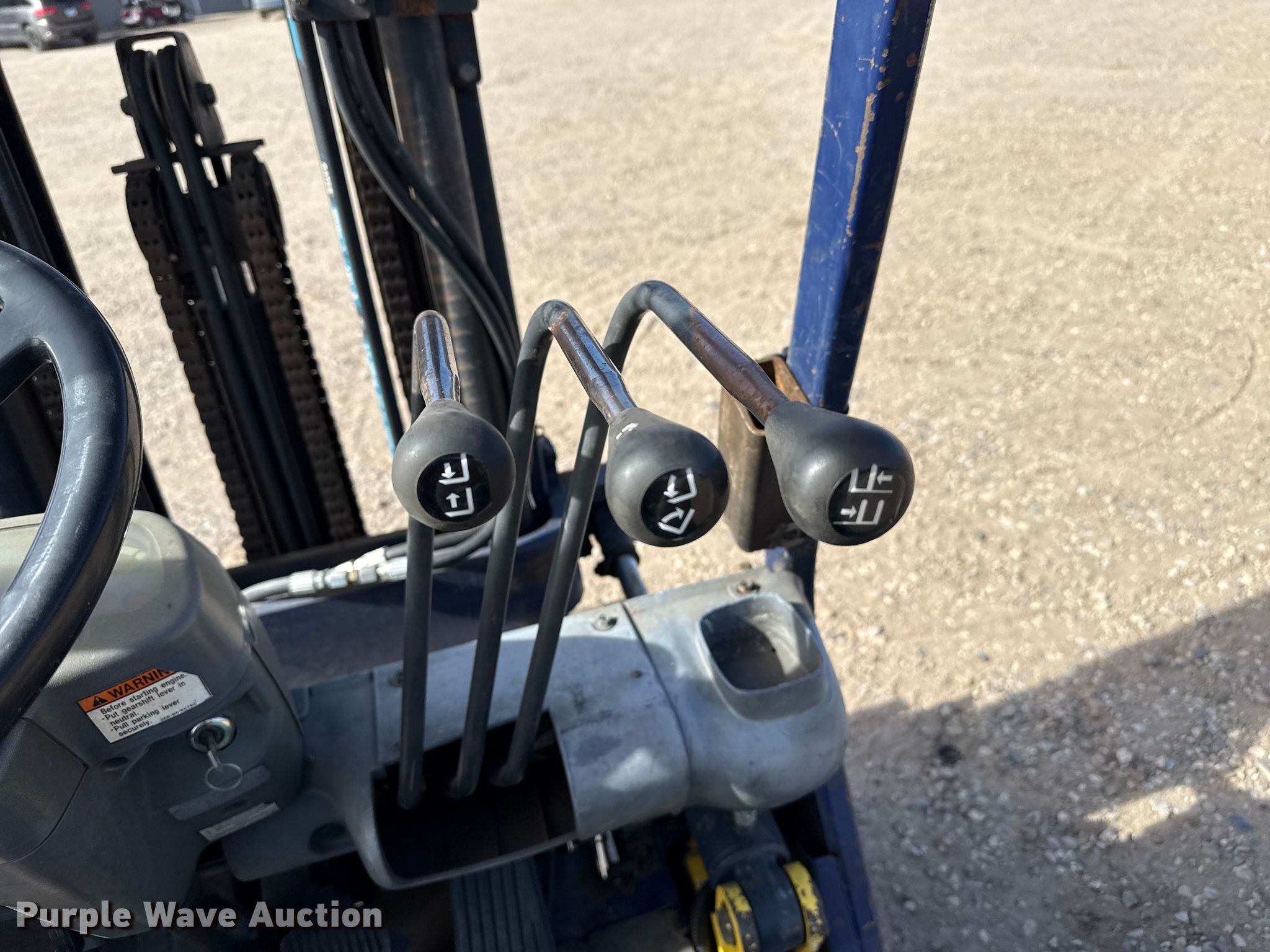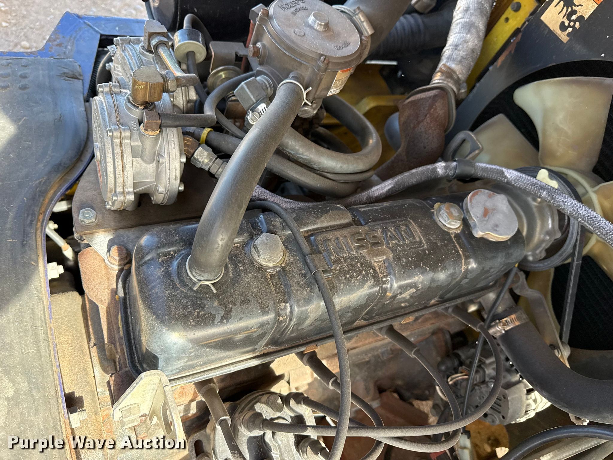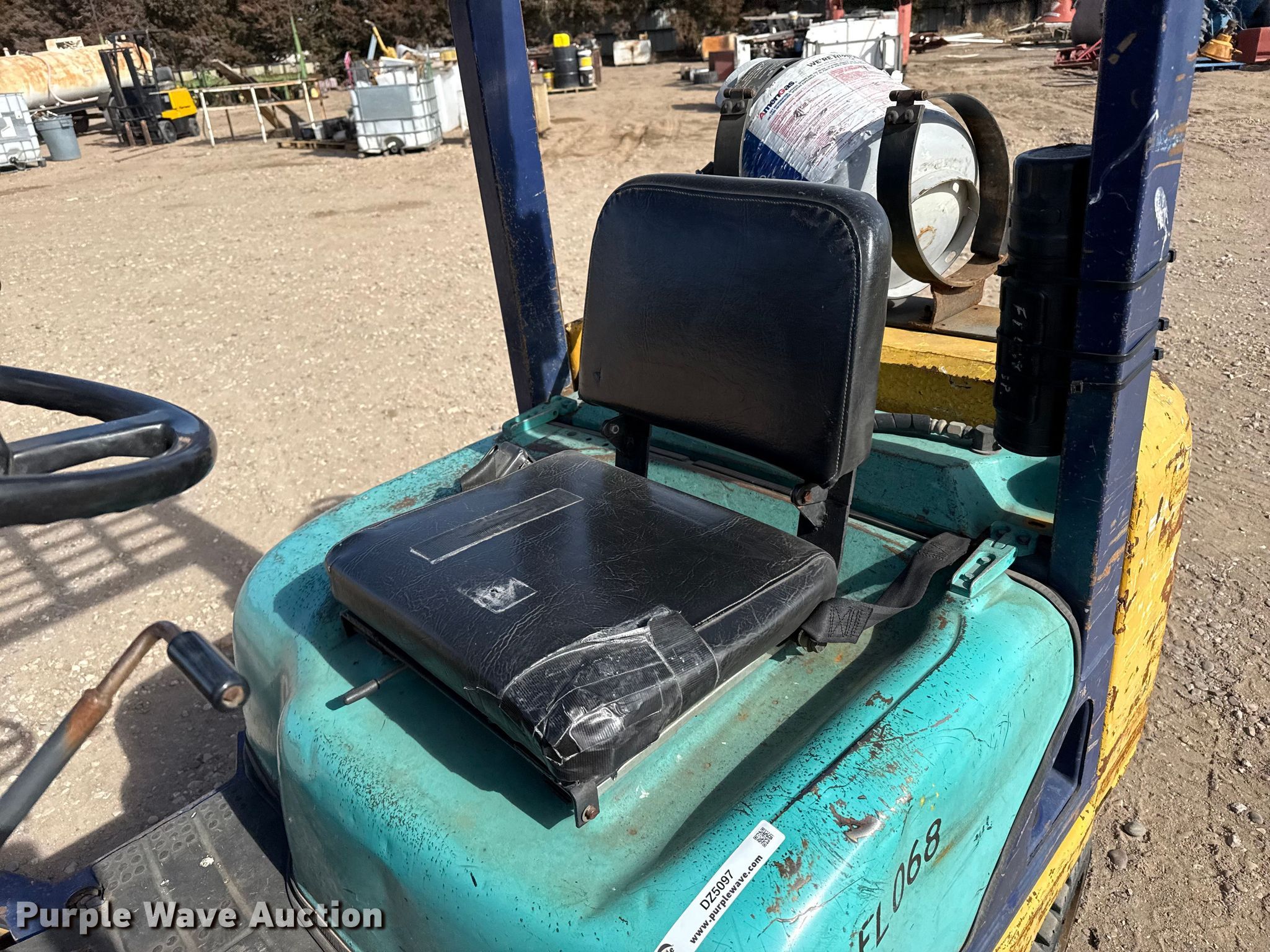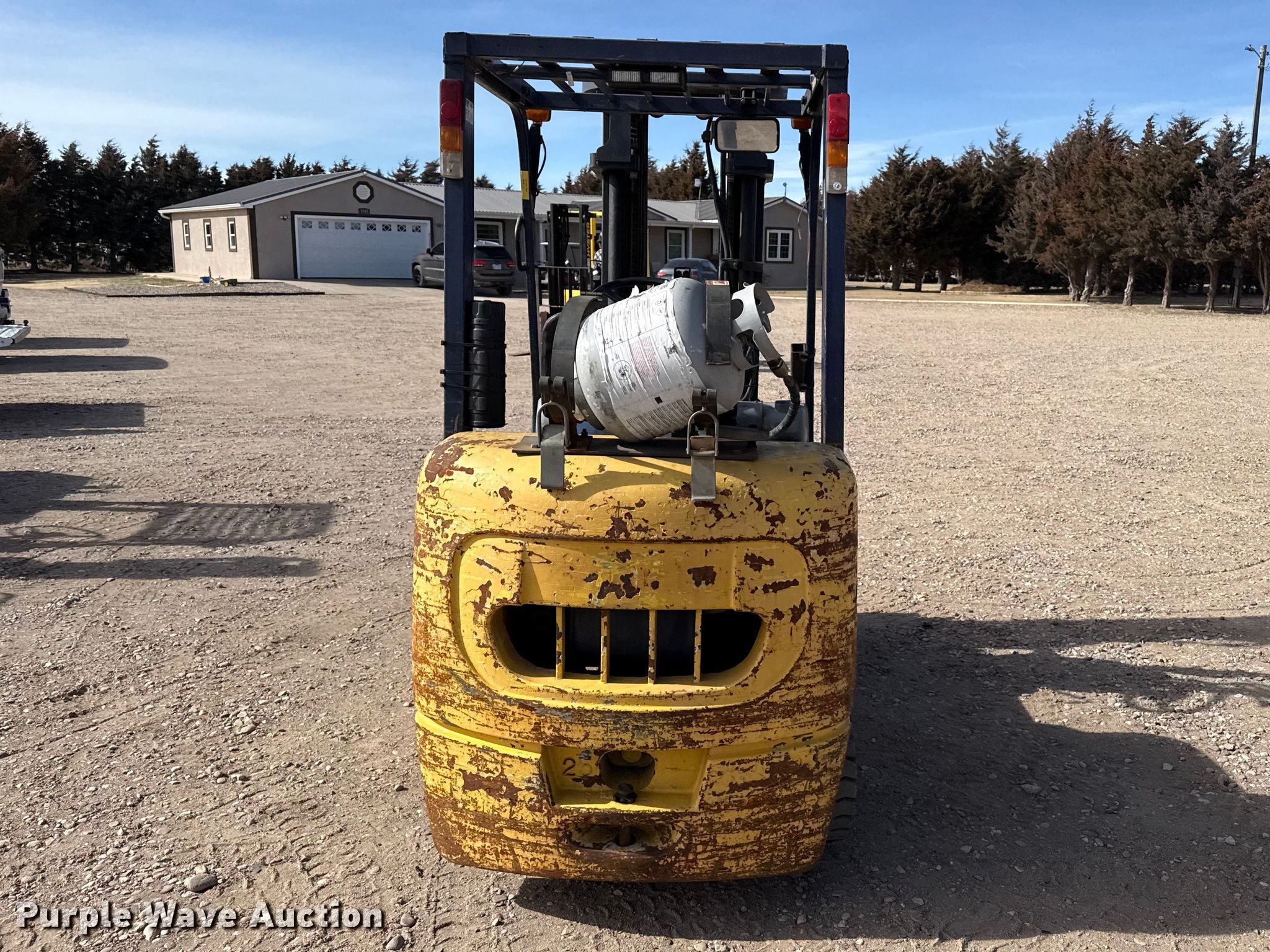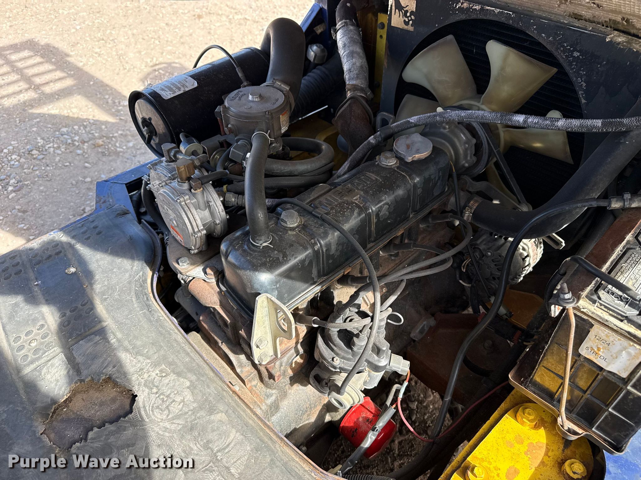 Komatsu forklift. Hours: 9,332 on meter, Serial: D-124074. Engine Cylinders: 4, Fuel type: LPG LP bottle: Not included. Transmission Powershift. Operators station Canopy. Features Collapsed mast height: 84", Mast stages: 3, Side shift, Mast tilt. Tires Front: 21x7x15, Rear: 16x5x1&1/4, Solid. Sublette, KS 67877