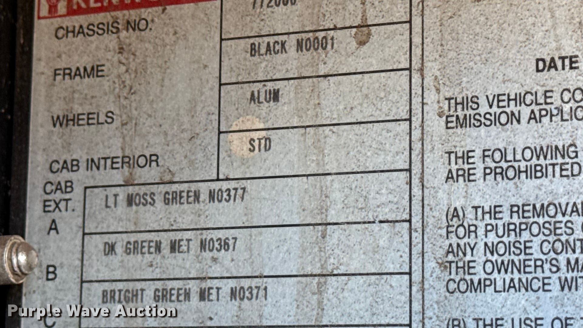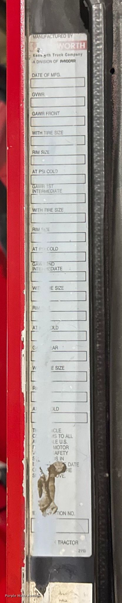 1998 Kenworth T600 semi truck. Miles: 809,445 on odometer, VIN: 1XKADT9X7WR772000. Engine Caterpillar C10, Cylinders: 6, Fuel type: Diesel. Transmission Eaton Fuller, Manual, Speed: 9. Chassis Axles: Tandem, Differential lock: Inter-axle, Suspension: Air Dump valves, Brakes: Air, GVWR: 48,000 lbs. Interior AC, Heat, Heated mirrors, Cruise control. Features Deck plate: Aluminum, Fifth wheel type: Air operated, Sliding, Fuel tank: Single. Tires Size: 11R24.5. Illinois title. Title distribution may be delayed up to 14 days from verification of funds. Payne Sod Farm Equipment - Rotation Sale. Manteno, IL 60950
