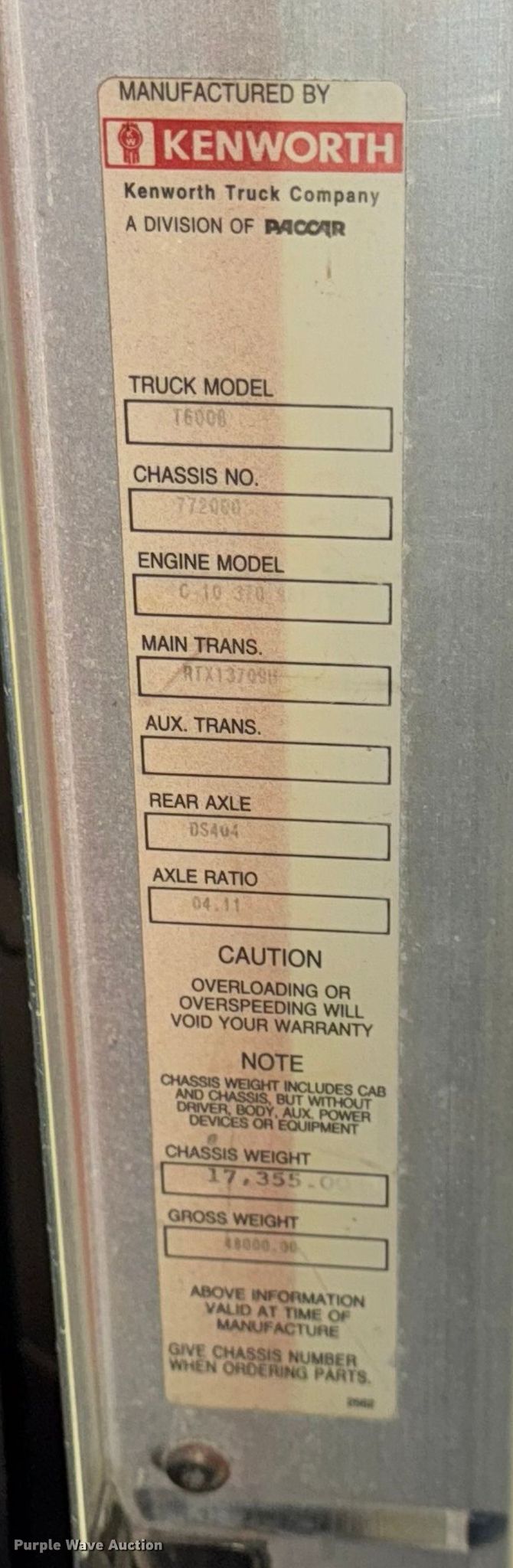 Take a look at this used 1998 Kenworth T600 semi truck being sold on March 18th, 2026 in the Wednesday March 18 Ag Equipment Auction made by Kenworth. Take a look at all of the item information below or take a look at similar auctions for Trucks.
