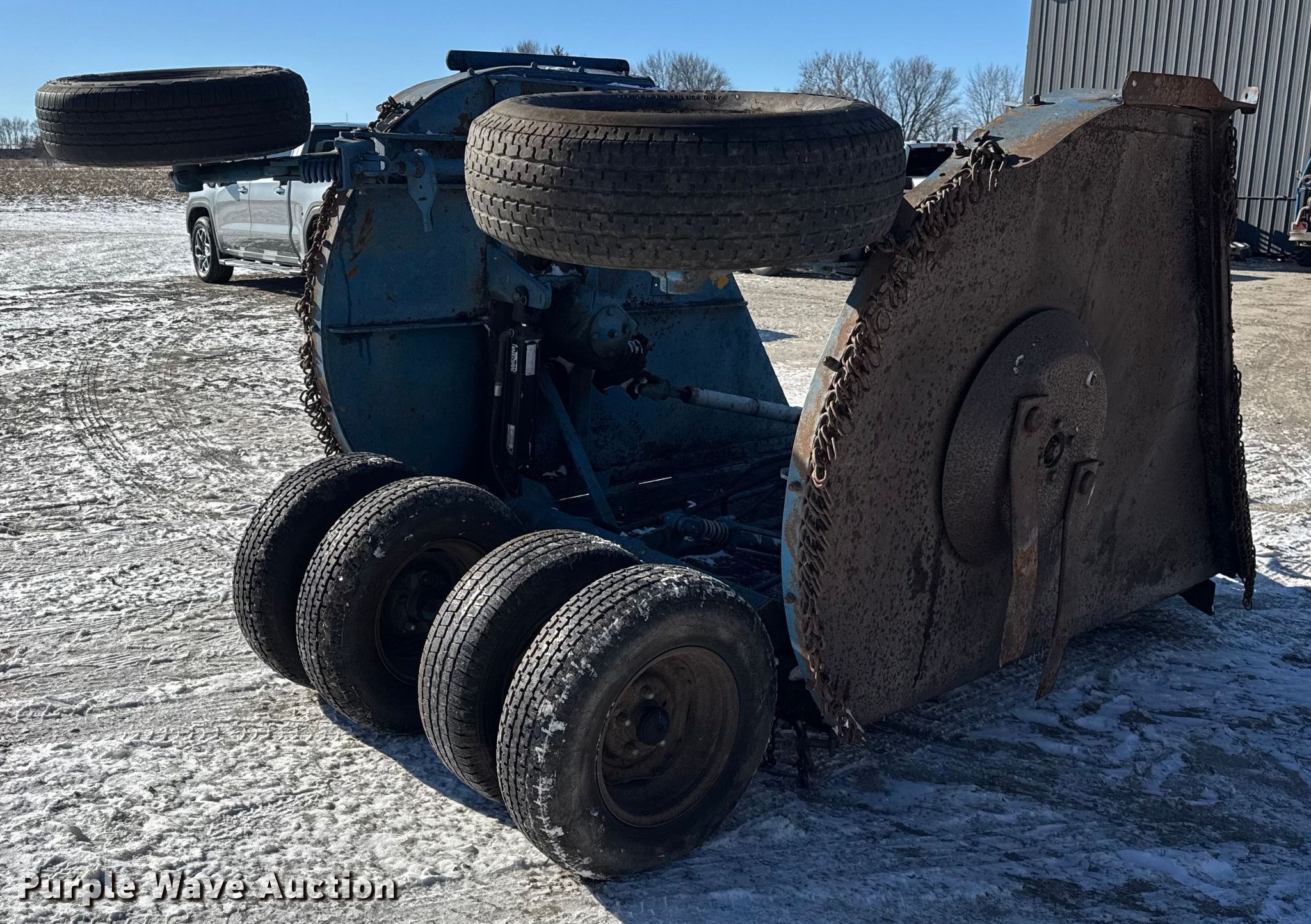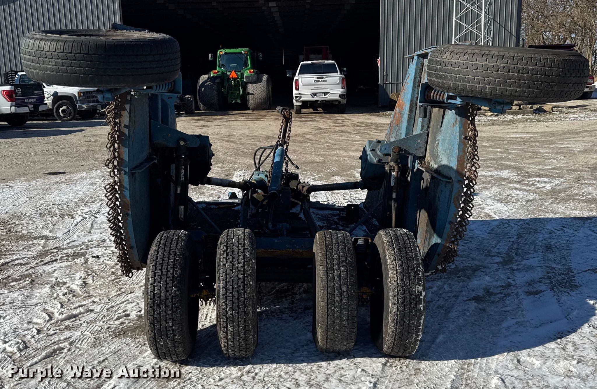Servis batwing rotary mower. Features. Width: 15', Hydraulic lift, Hydraulic fold, PTO: 540. Tires Size: 225/75R15. Payne Sod Farm Equipment - Rotation Sale. Manteno, IL 60950