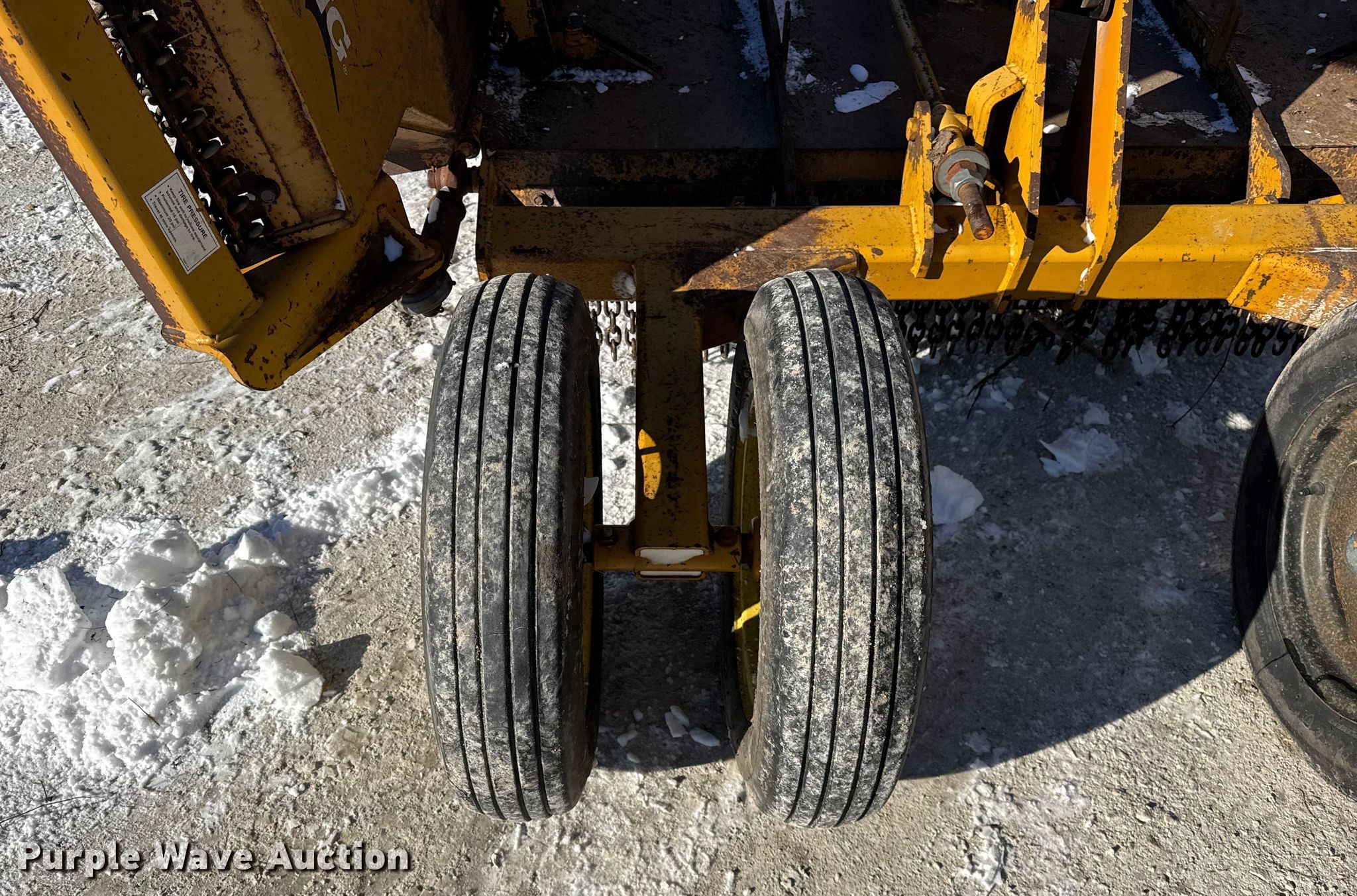 Woods BW1800 batwing rotary mower. Serial: 898611. Features Width: 18', Hydraulic lift, Hydraulic fold, PTO: 1000. Tires Size: 5.90-15. Notes Landing gear not included. Payne Sod Farm Equipment - Rotation Sale. Manteno, IL 60950