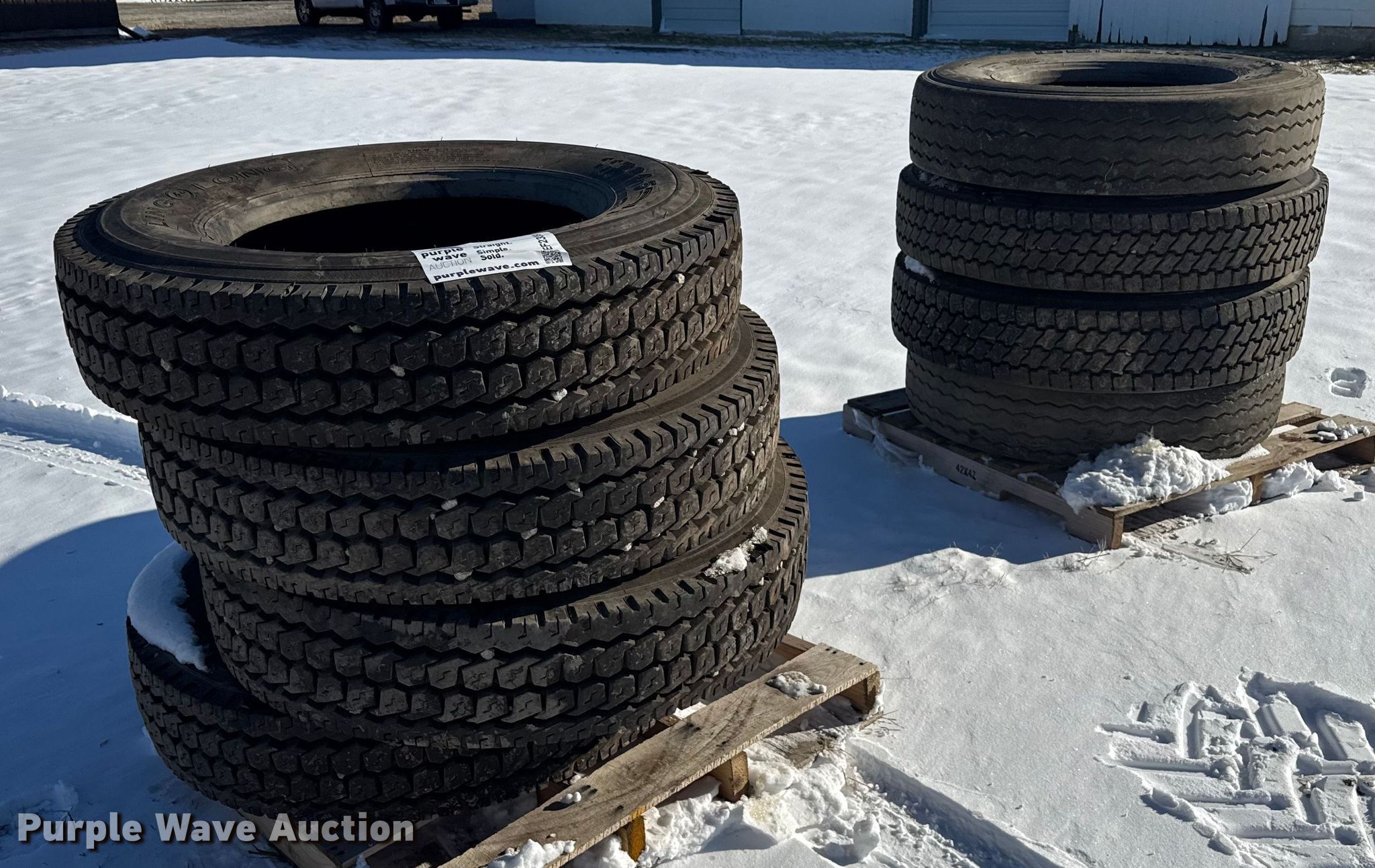 Tires. (2) 11R22.5, (6) 11R24.5. Payne Sod Farm Equipment - Rotation Sale. Manteno, IL 60950