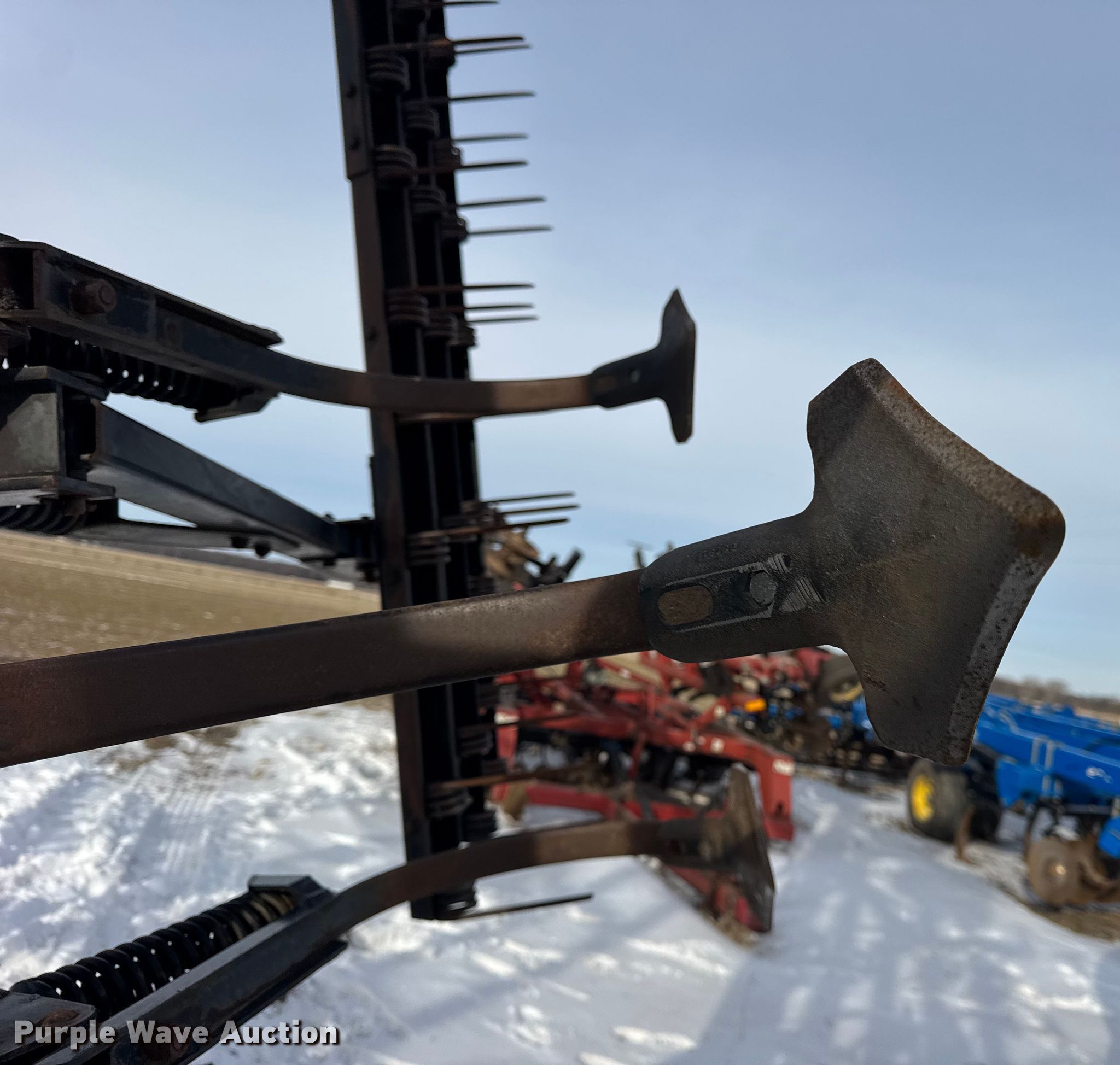 DMI Tiger Mate field cultivator. Overall width: 30'. Features Shanks: 59, Sweep width: 7", Operation Hydraulic lift, Hydraulic fold, Leveler: Manual, Walking tandem axle, Attachments Tine harrow Harrow bars: 3.. Tires Tire size: 9.5-15. H & E Sod Nursery, Inc.. 13246 E 1250 N Rd. Momence, IL 60954