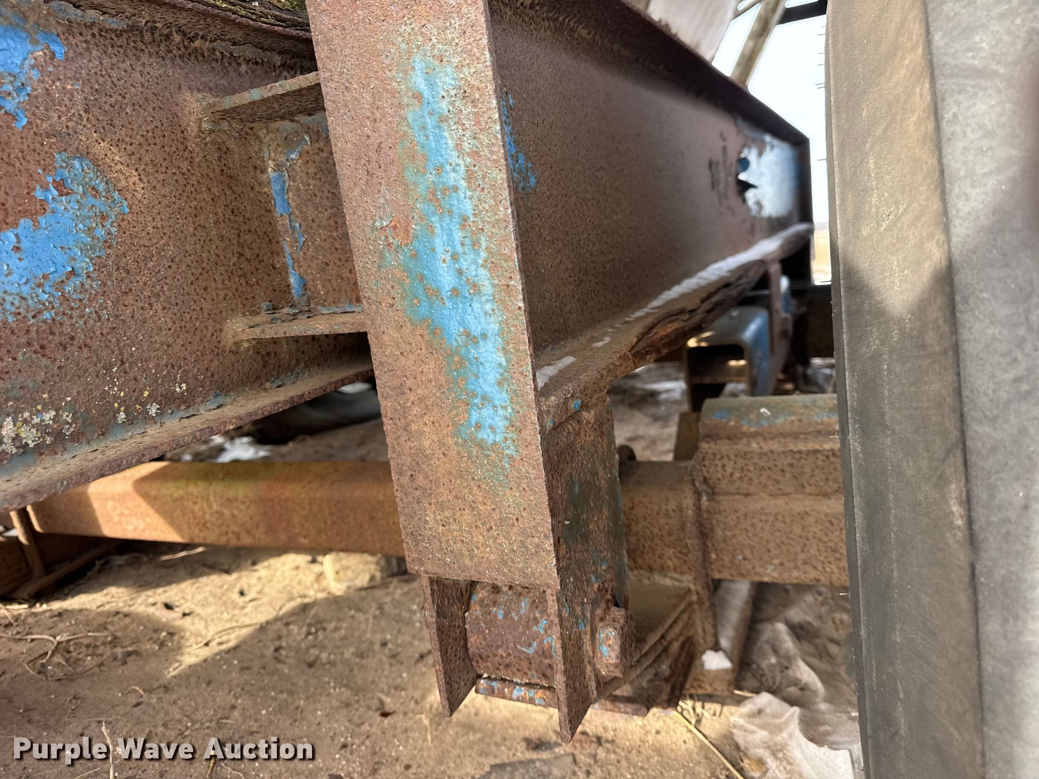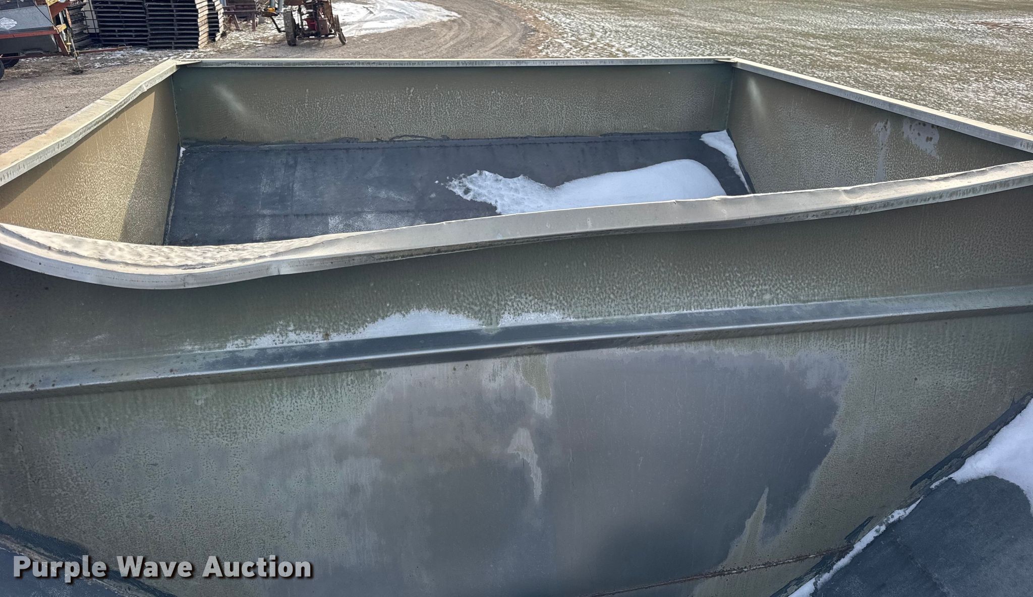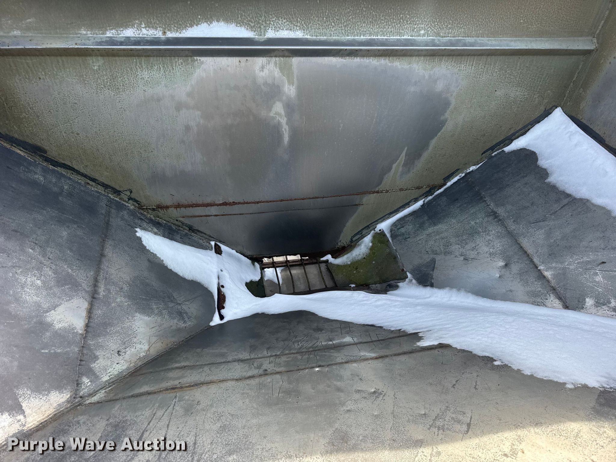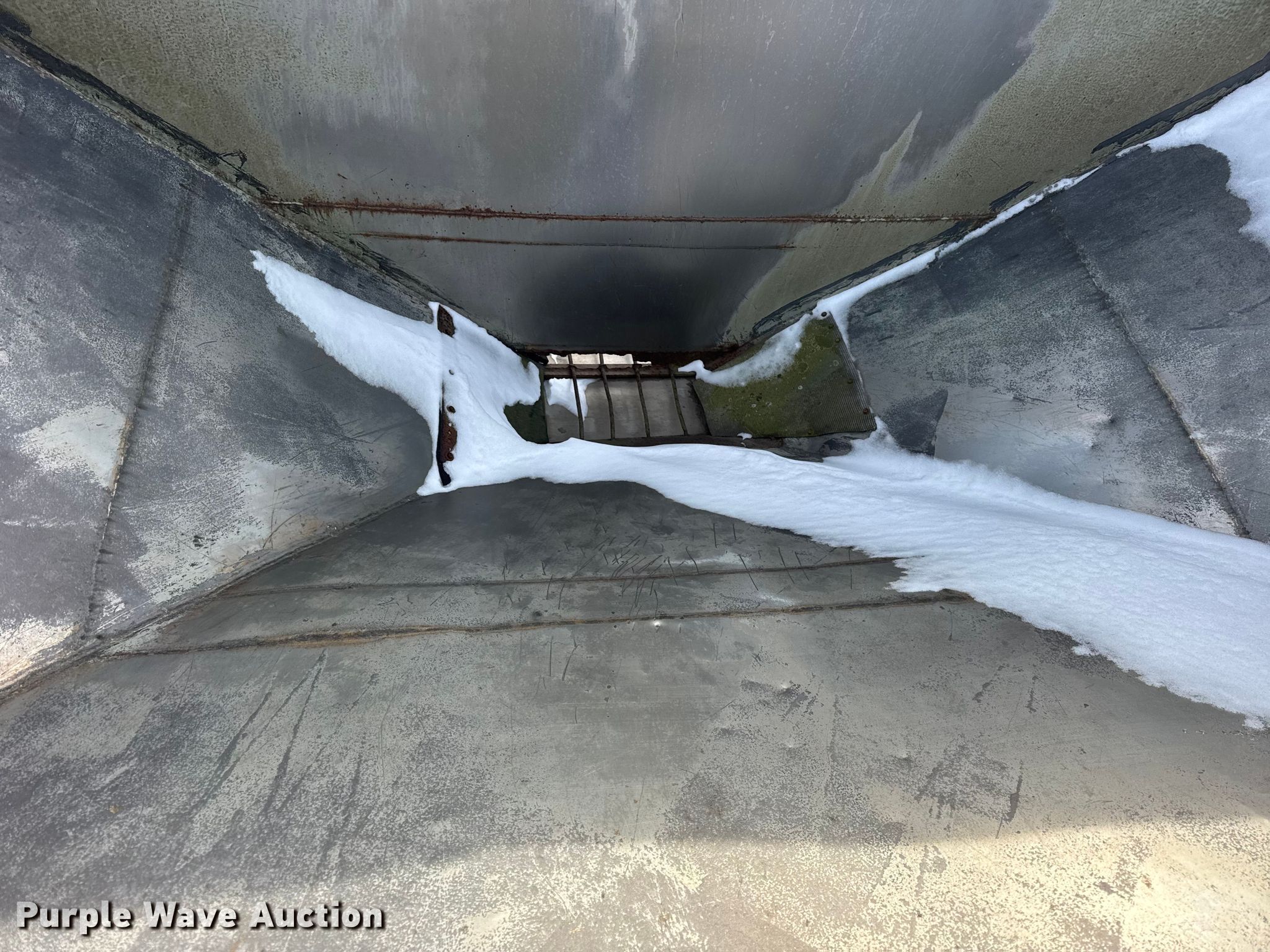 Western SMC3210S SP seed tender. Serial: 5951142. Dimensions Overall Length: 30', Width: 96", Body Length: 11', Width: 96", Side height: 60". Features Body type: Steel, Compartments: 2, Discharge auger Length: 18', Diameter: 8". Chassis Landing gear: Single, Suspension: Spring, Axles: Tandem. Tires Steel wheels, Size: 16.5-16. Notes Tires flat, Hail damage. H & E Sod Nursery, Inc.. 13246 E 1250 N Rd. Momence, IL 60954