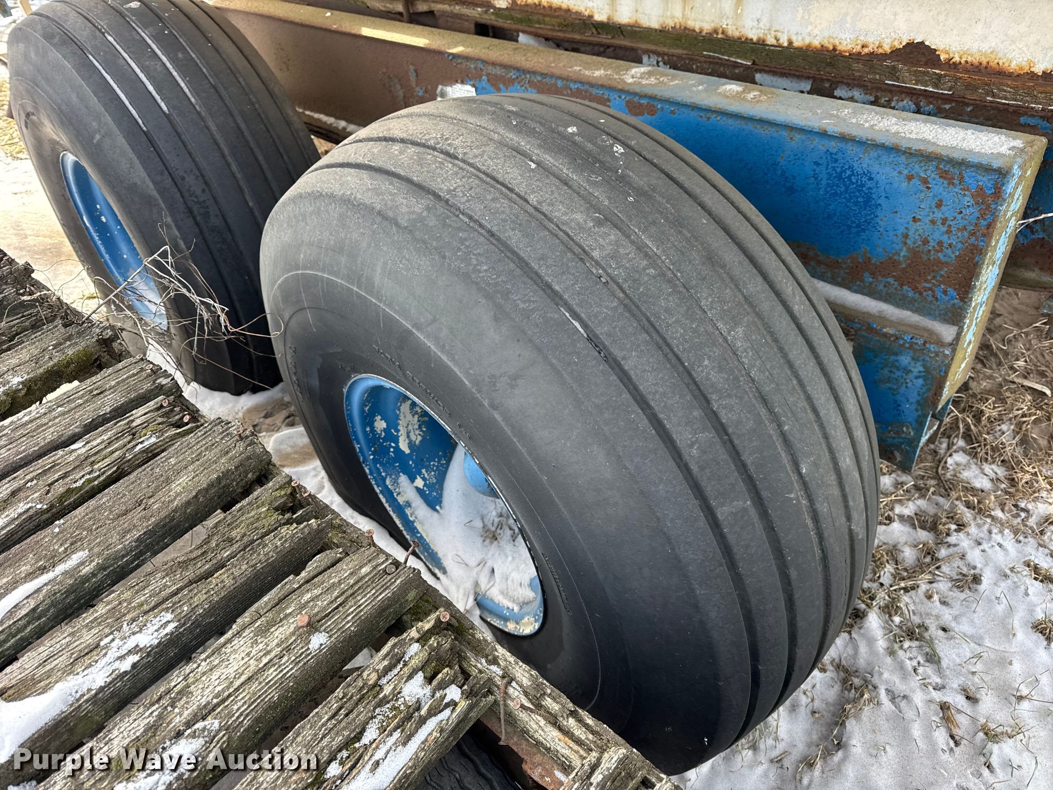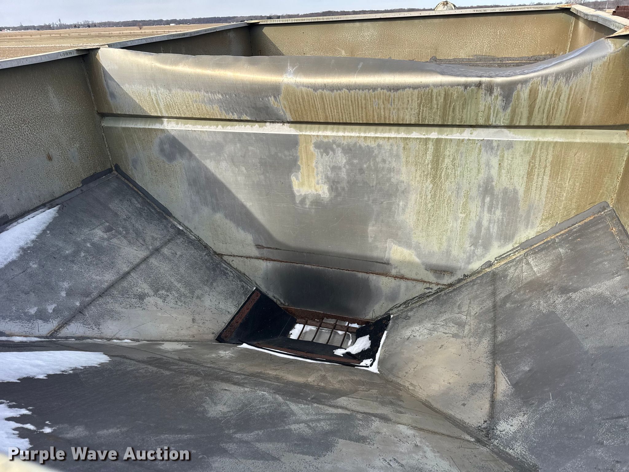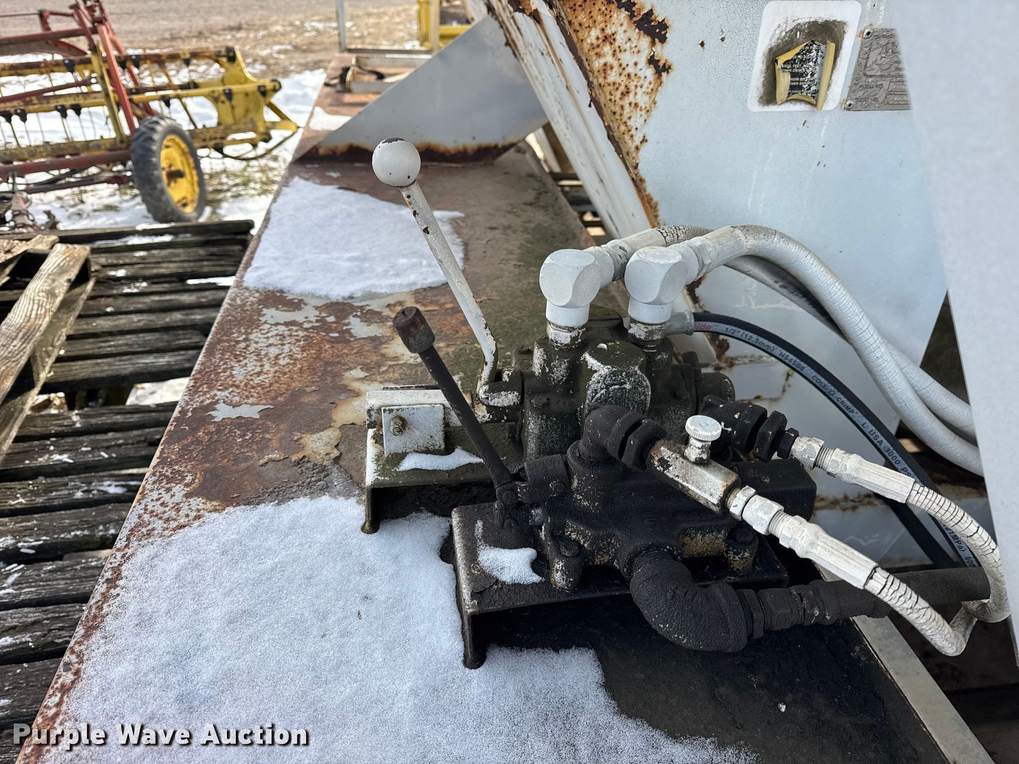 Western SMC3210S SP seed tender. Serial: 5951142. Dimensions Overall Length: 30', Width: 96", Body Length: 11', Width: 96", Side height: 60". Features Body type: Steel, Compartments: 2, Discharge auger Length: 18', Diameter: 8". Chassis Landing gear: Single, Suspension: Spring, Axles: Tandem. Tires Steel wheels, Size: 16.5-16. Notes Tires flat, Hail damage. H & E Sod Nursery, Inc.. 13246 E 1250 N Rd. Momence, IL 60954