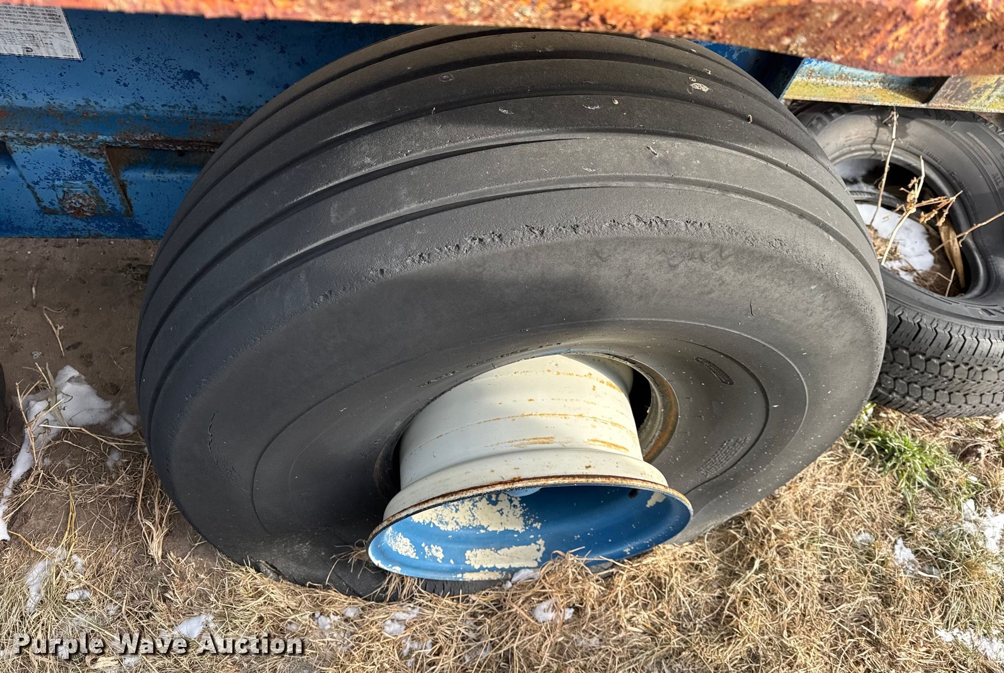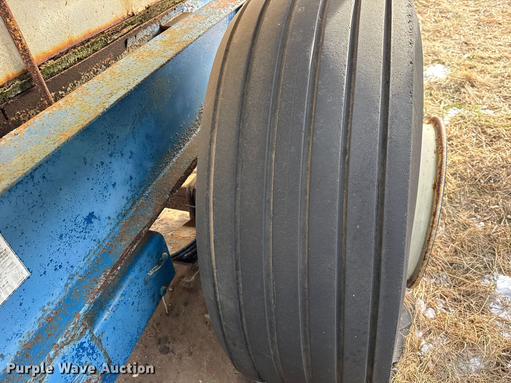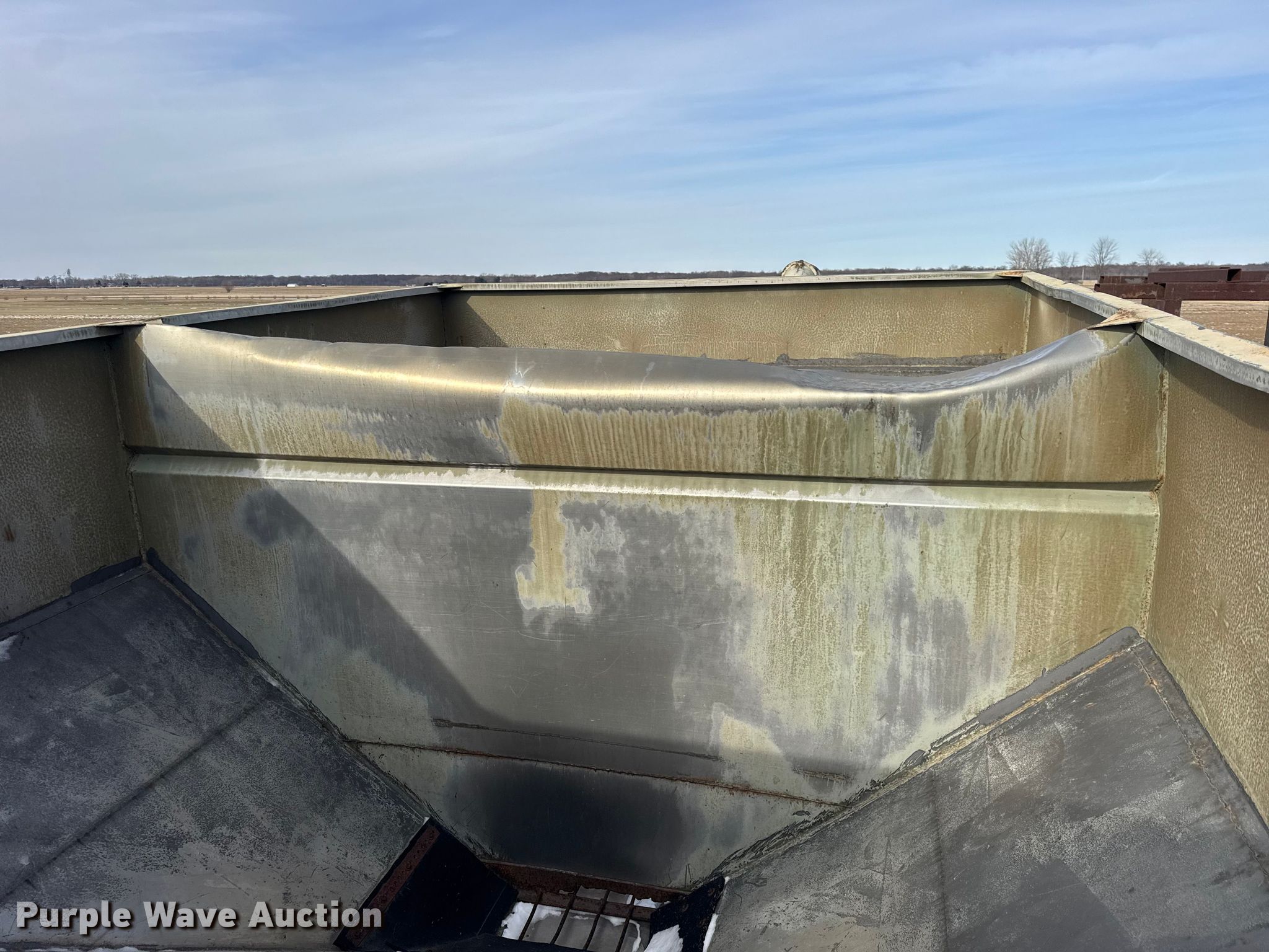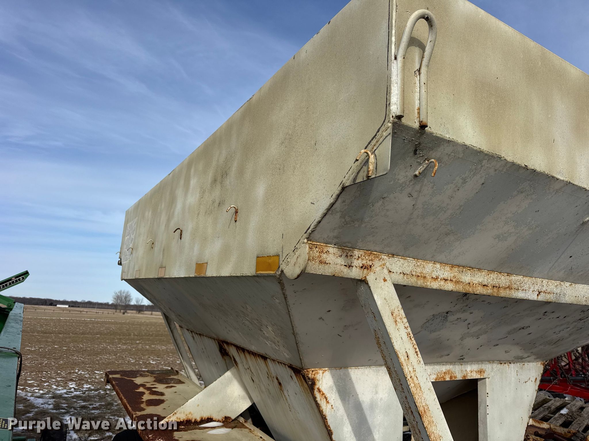 Western SMC3210S SP seed tender. Serial: 5951142. Dimensions Overall Length: 30', Width: 96", Body Length: 11', Width: 96", Side height: 60". Features Body type: Steel, Compartments: 2, Discharge auger Length: 18', Diameter: 8". Chassis Landing gear: Single, Suspension: Spring, Axles: Tandem. Tires Steel wheels, Size: 16.5-16. Notes Tires flat, Hail damage. H & E Sod Nursery, Inc.. 13246 E 1250 N Rd. Momence, IL 60954