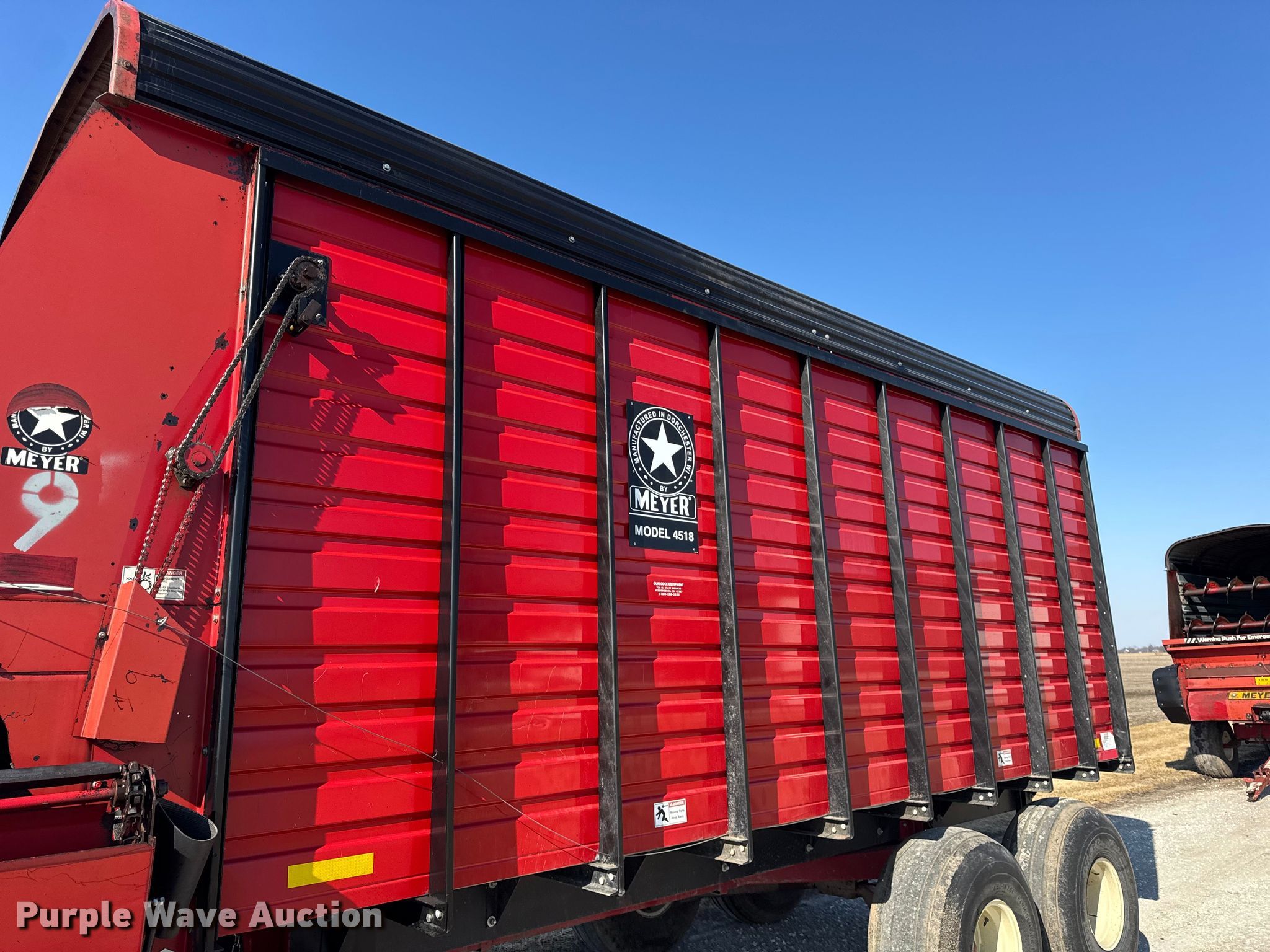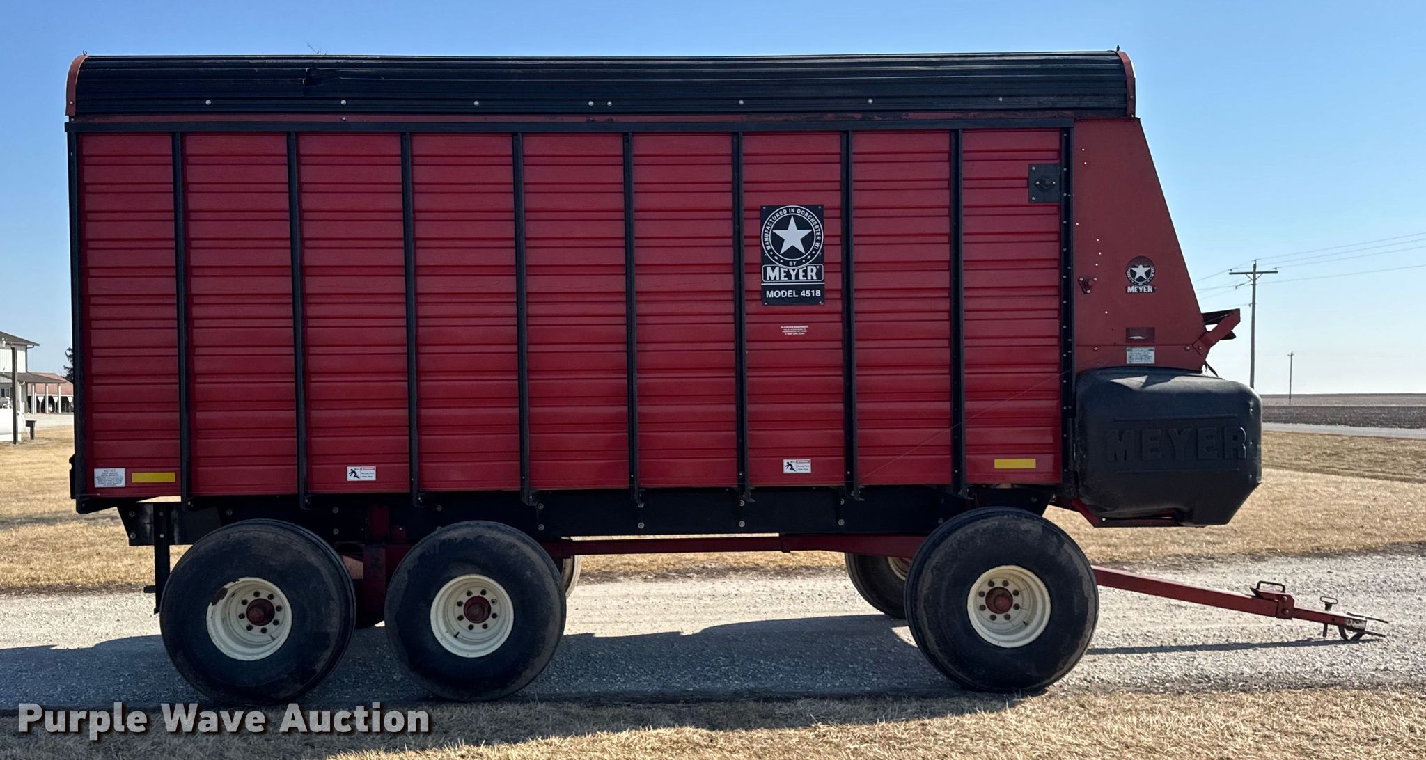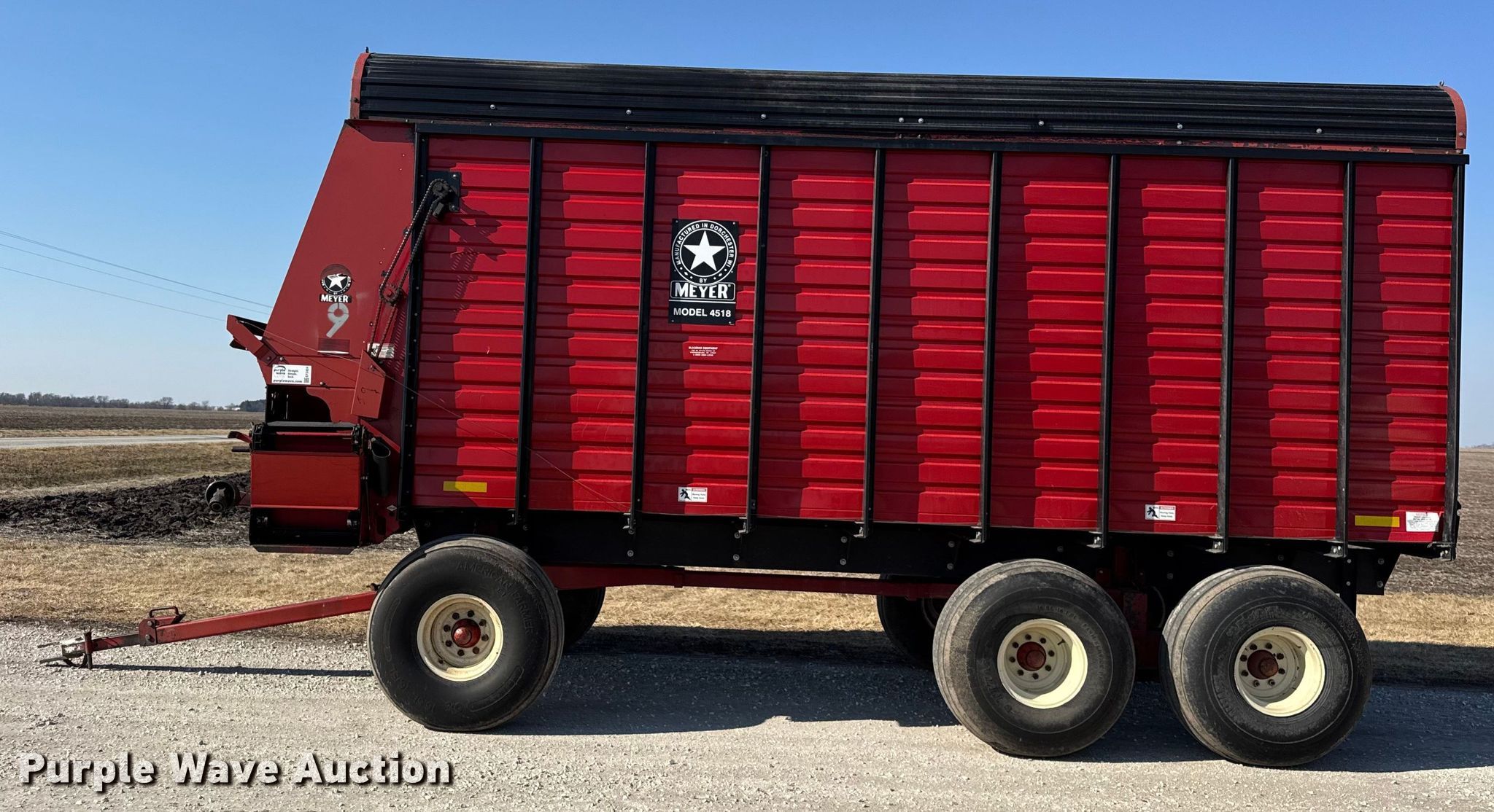 Take a look at this used Meyer 4518 silage wagon being sold on March 18th, 2026 in the Wednesday March 18 Ag Equipment Auction made by Meyer. Take a look at all of the item information below or take a look at similar auctions for Harvesters.